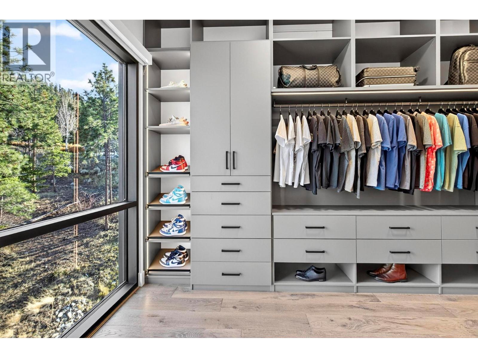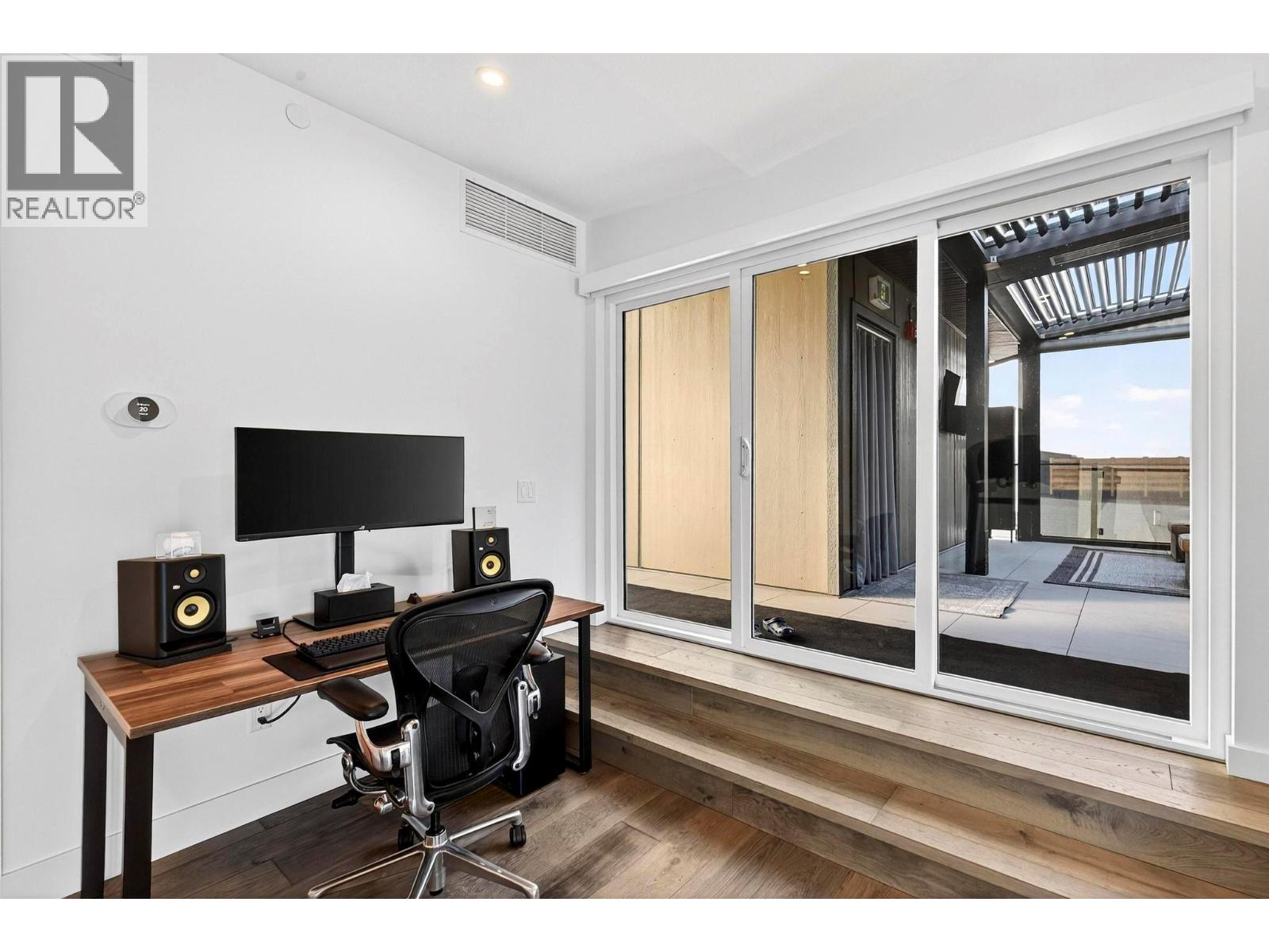 Experience luxury lakeside living in this brand-new modern penthouse in Granite III at McKinley Beach. Panoramic Okanagan Lake views set the tone the moment you walk in, framed by soaring vaulted ceilings and floor-to-ceiling windows that fill the open-concept space with natural light. The gourmet kitchen features an entertainment-sized island with wine fridge, high-gloss cabinetry, and professional-grade appliances. The great room flows onto a spacious lake-view terrace, perfect for outdoor dining, complete with built-in heaters for year-round comfort. This level also includes a generous bedroom with its own ensuite, all with heated tile floors. A dramatic two-storey tiled feature wall borders the floating glass staircase leading to the loft-style upper lounge, ideal as a reading nook, media room, or office. Voice-activated automatic blinds enhance comfort throughout. The primary suite is a private retreat, offering unobstructed lake views, a designer walk-in closet, and a stunning 5-piece marble ensuite with steam shower and heated tiles. The expansive rooftop terrace features an automated louvred roof with built-in fans, grilling area, hot-tub rough-in, and terrace heaters, creating an unmatched outdoor oasis. Steps from the sandy beach, marina, trails, parks, tennis courts, and outdoor gym, Granite residents also enjoy a sauna and outdoor pool. Three parking stalls sit conveniently next to the elevator. This penthouse delivers Okanagan luxury at its finest. (id:2469)
