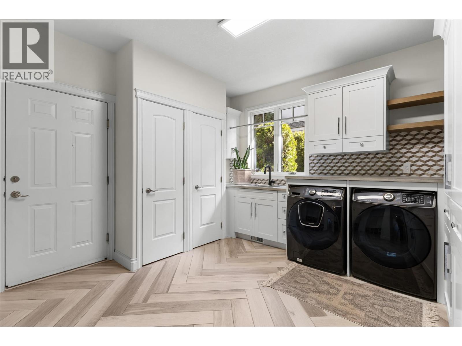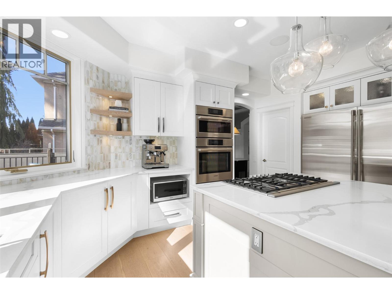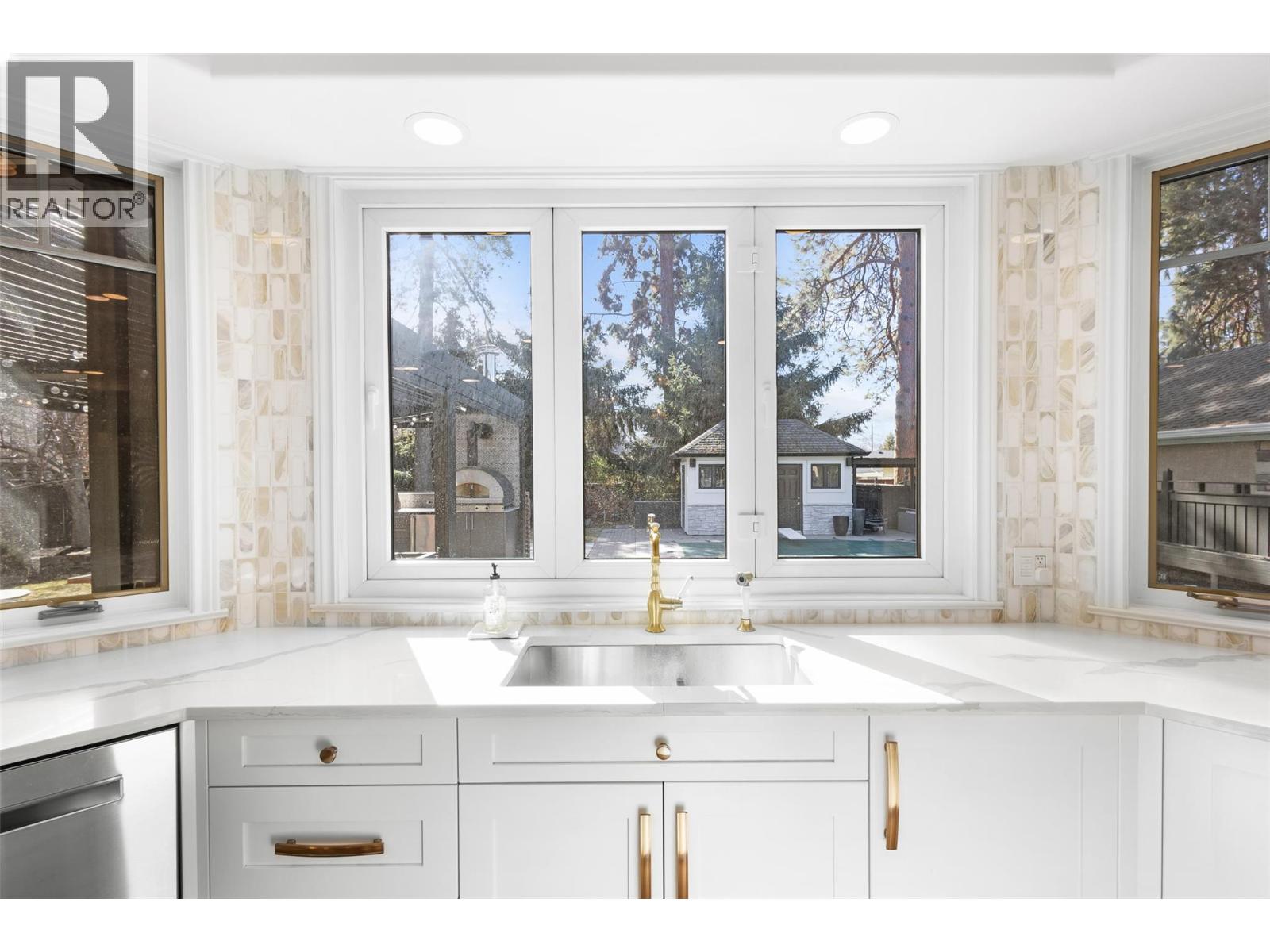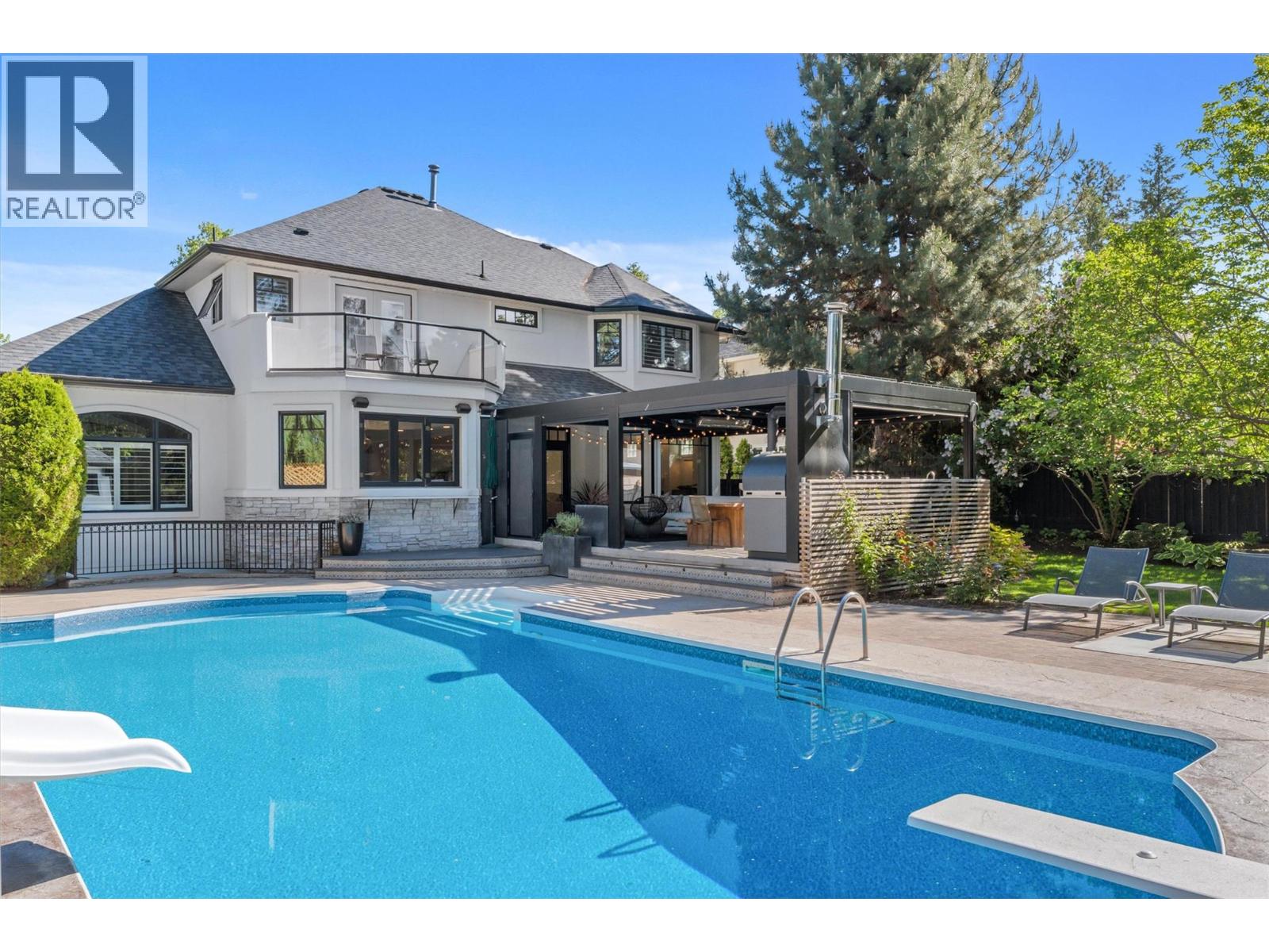 Nestled in the heart of Lower Mission, one of the most sought-after neighborhoods, this exquisite 5-bedroom estate blends timeless luxury with modern sophistication. Just minutes from the shores of Lake Okanagan, this home sits on a large lot surrounded by trees and lush greenery, offering both privacy and convenience. Completely transformed inside and out, this residence spans over 5,500 sq. ft. and showcases luxury finishes throughout. The traditional floor plan has been updated with contemporary touches while preserving its elegant charm. Features include a state-of-the-art media room, steam room, sauna, and a Control4 smart home system.Luxury extends outdoors to a resort-style patio featuring a large swimming pool, smart-controlled sunshades, misting systems, and heaters for year-round comfort. An outdoor kitchen with gas BBQ, authentic pizza oven, sink, and fridge sets the stage for unforgettable gatherings.The home’s exterior features striking copper roof dormers, lush landscaping and additional double-car garage. The first garage equipped with an electric car charger, while the second has been transformed into a high-end home gym including built-in cabinetry,bar fridge,cork flooring and a climate control system.Beyond the property, the Lower Mission lifestyle awaits - Just steps from the beach, trendy coffee shops, and the brand-new DeHart Park, this home offers the ultimate blend of luxury and location. (id:2469)