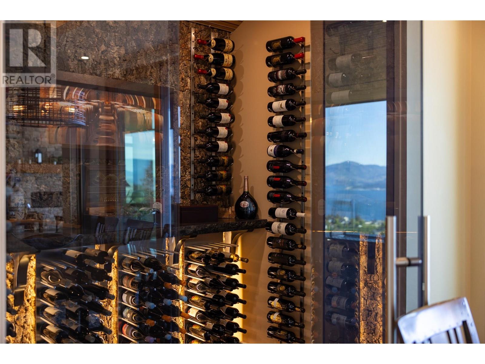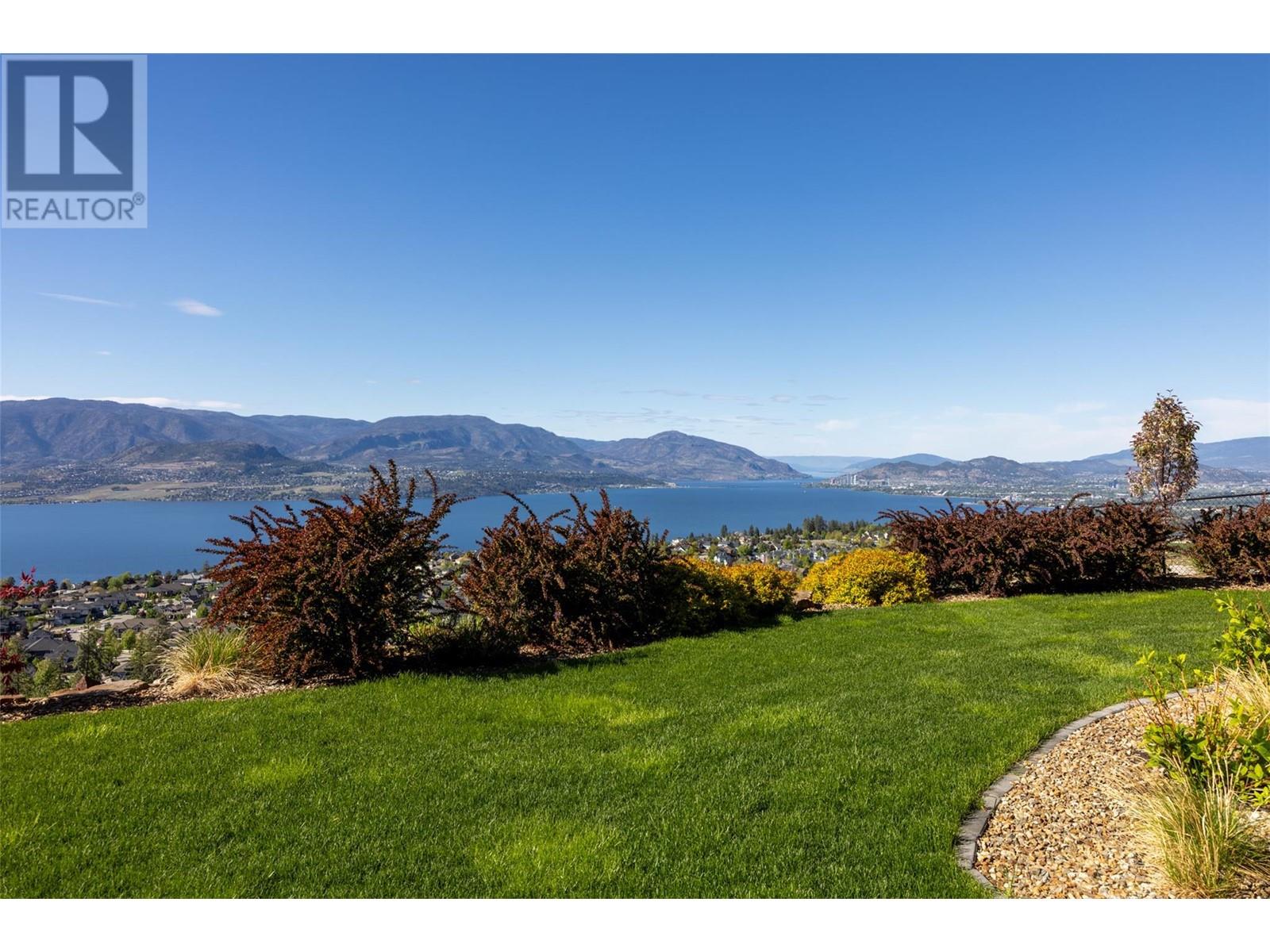 Welcome to the #1 gated community in Upper Mission: The Edge. This custom built West Coast Contemporary home with 2 garages is a car collectors dream and situated in the hills of Kettle Valley with simply incredible lake+valley+city views. Built by the current owners in an exclusive gated community, this home features rich elements of natural wood and stone combined with many smart home modern features. 5000 sq.ft . 4bdrm + 4 bath on a 1/2 acre lot. Open concept main floor with chefs kitchen+ custom wine cellar, hand crafted glass bar countertop, smart Control 4 lighting, blinds, heat and audio/video. Spacious primary bdrm suite and large home office, mudroom and laundry on the main floor. Below is a huge family room, grandkids play room, home theatre plus 3 bdrms and ample storage and best in class mechanical w/radiant heat. Attached garage has room for 3 vehicles plus toys and the detached garage/shop has room for an additional 3 w/lifts added. 220 power. Outside is a gorgeous lakeview deck with fire table and bbq, below is a covered deck w/hot tub and water feature. Protected land in front with no immediate homes/roofs in the view. Room to add a pool. The Edge is the ultimate in upscale living with great neighbors and a well run bare land strata. (id:2469)