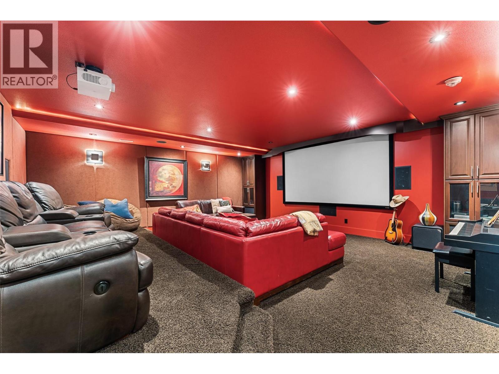 Unrivalled lake views stretch from Bear Creek to Peachland in this breathtaking Upper Mission residence. Showcasing over 5,500 sq. ft. of refined quality construction, this 5-bedroom, 5-bathroom estate is a masterclass in design, comfort, and craftsmanship and boasts lake views from all 3 levels. The main level offers effortless living with a grand great room, a chef-inspired kitchen with Thermador appliances and island seating for six, and a deluxe primary retreat featuring a spa-inspired ensuite with steam shower and private deck access. Automated with Control4 and designed for entertaining, enjoy the panoramic wraparound patio with fireplace above, or head to the lower level where a wet bar, theatre room, and spacious rec area await. Three additional bedrooms, each with ensuite access, open to a covered patio with a putting green, hot tub, tranquil water feature & private backyard. A vaulted loft with private balcony makes the perfect office or artist's escape. Thoughtful touches include a 4-car garage (2 deep), home-wide built-in speakers, and manicured, low-maintenance landscaping. Located only a couple mins from the new Upper Mission Shopping centre. This is lakeview living elevated—privacy, luxury, and lifestyle in perfect harmony. (id:2469)