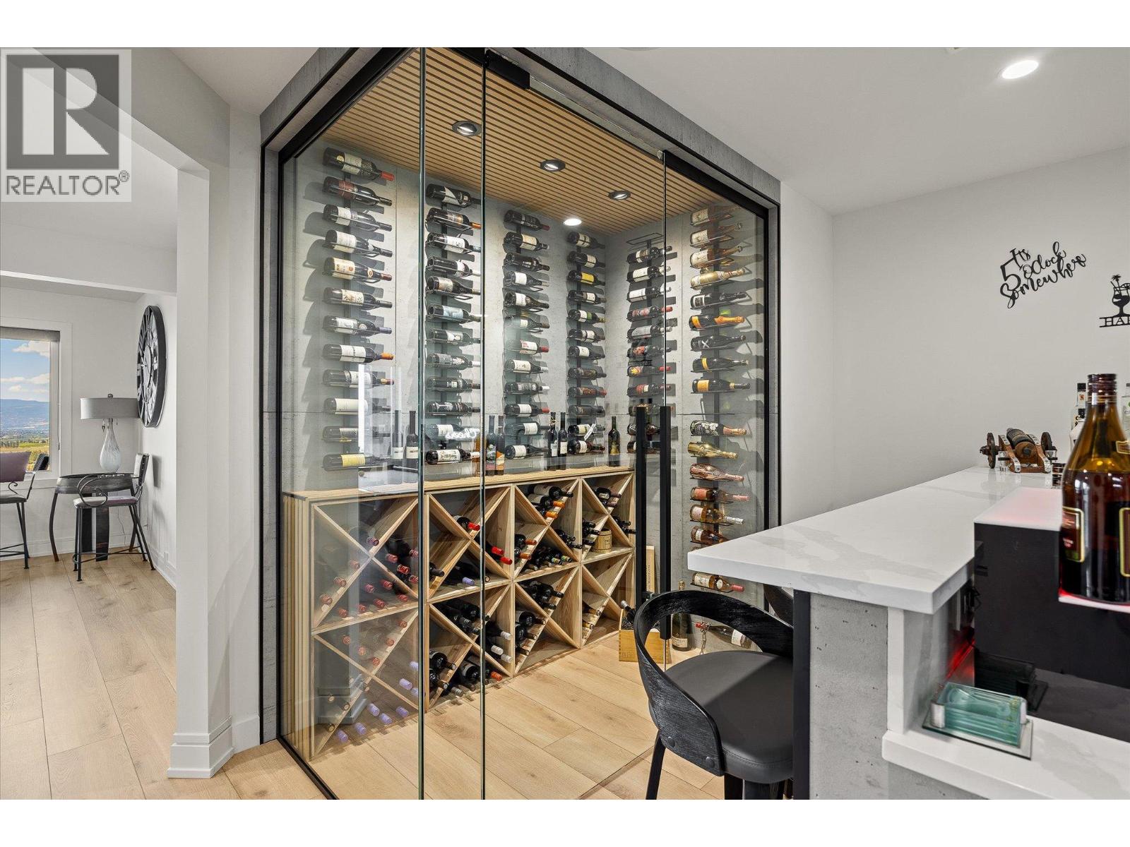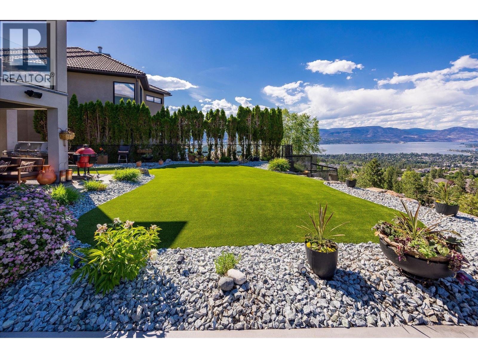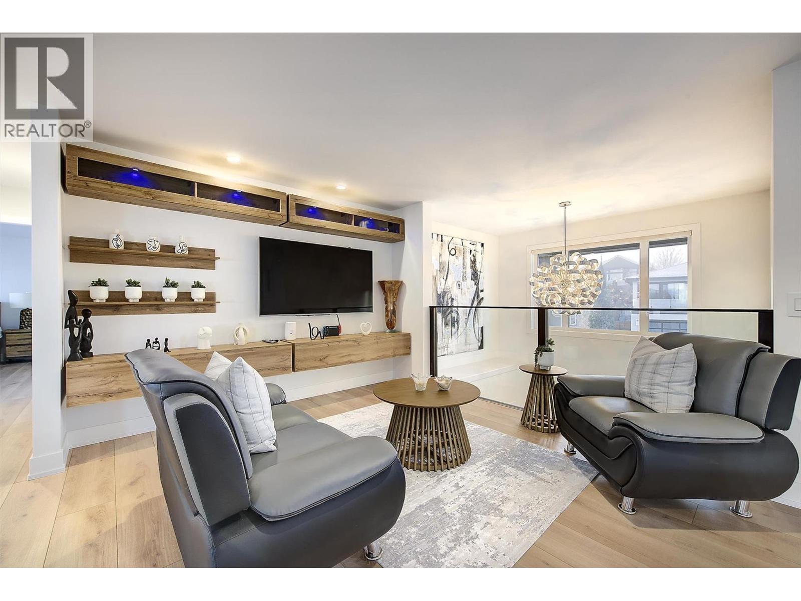 Step into elevated living in this beautifully re-imagined 5-bed + den, 4-bath residence, where luxury, comfort, and panoramic views converge. From the moment you arrive, the grand entry and soaring vaulted ceilings set the tone for a home designed to impress, while the chef’s kitchen, featuring premium appliances and a butler’s pantry, anchors the heart of the main level with style and function. Expansive windows frame breathtaking 180-degree vistas across the city of Kelowna and Okanagan Lake, creating an extraordinary backdrop for everyday living and entertaining. The primary retreat, privately positioned on the main floor, offers a serene escape complete with stunning lake views and a spa-inspired ensuite. Two additional spacious bedrooms upstairs offer comfort and privacy for family and guests. The walk-out lower level is an entertainer’s haven, thoughtfully designed with a refined whiskey tasting room, temperature-controlled wine cellar, sleek bar, generous recreation space, and a state-of-the-art theatre. Step outside to the private backyard and pool area, where the views become more spectacular and unforgettable. Completing this exceptional home are four garage spaces, including a double and tandem garage, with EV charging and abundant room for a boat or RV, along with extensive additional parking for guests. Every element of this residence blends elegance with practicality, offering an unparalleled lifestyle opportunity in one of Kelowna’s most desirable settings. (id:2469)
