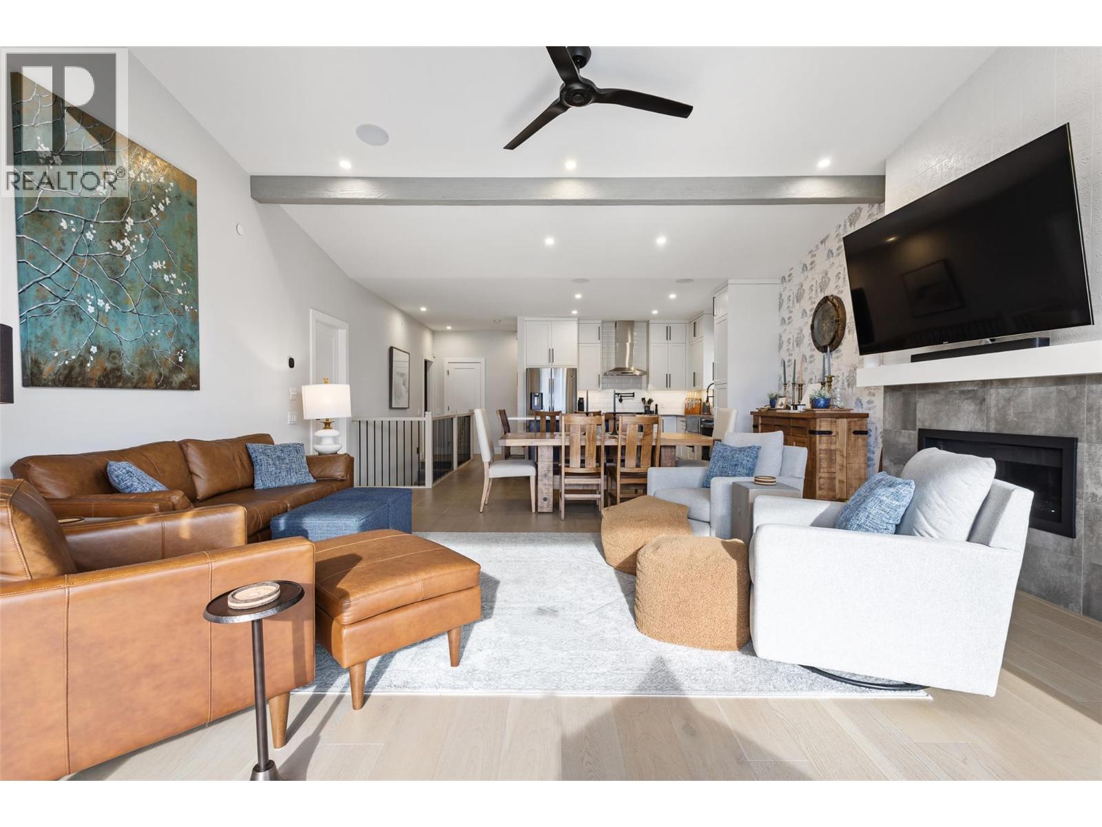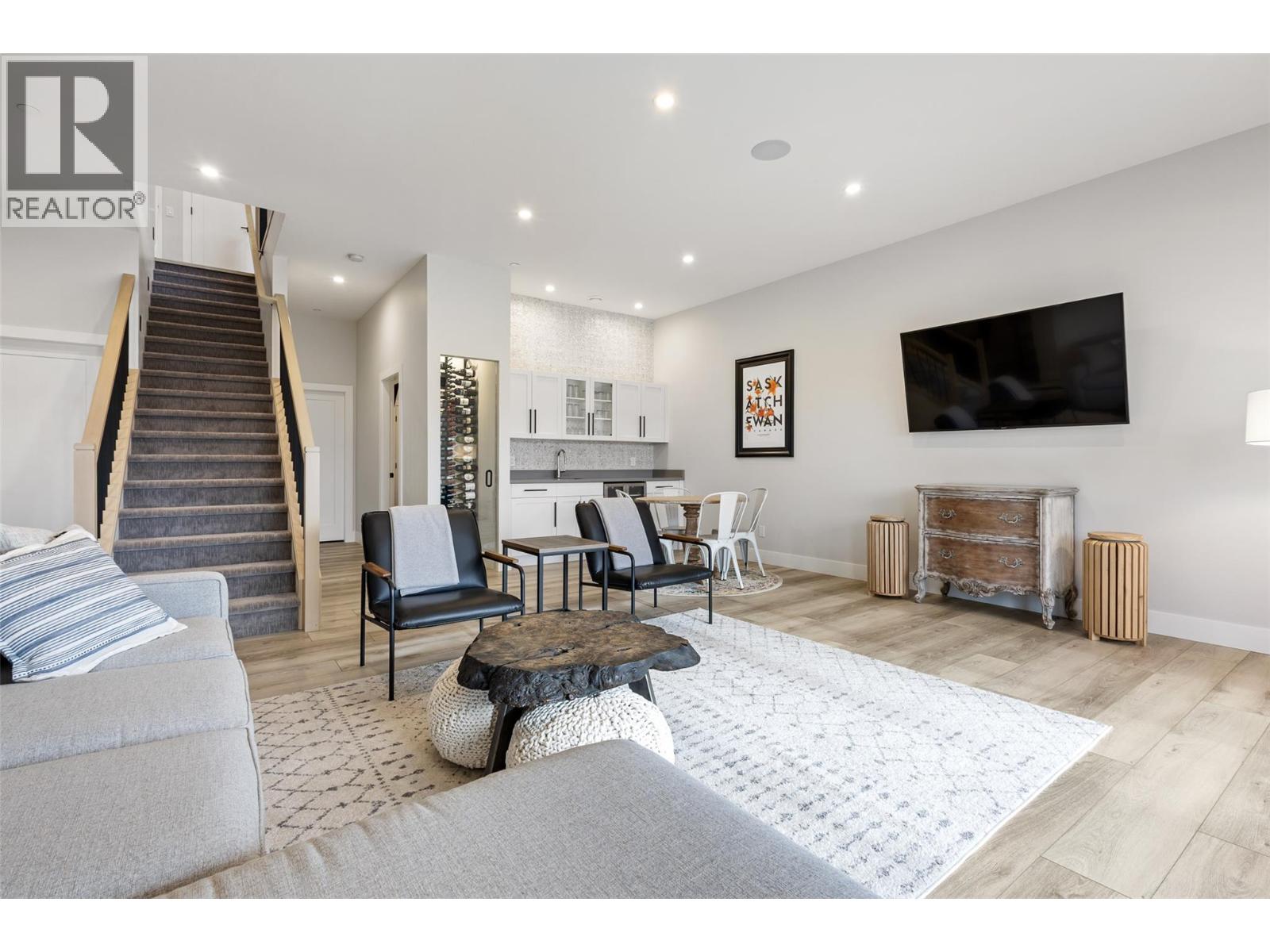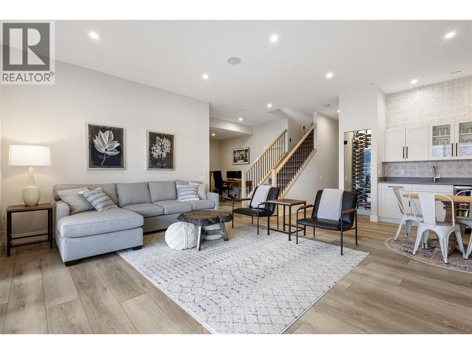Dream retreat in Lakestone —where elegance, comfort, and nature converge. With over $30,000 in upgrades, this home must be seen to be appreciated! This 3-bed + den, 3-bath walkout townhome comes fully-furnished & decorated for immediate, turn-key occupancy! Chef’s kitchen that inspires culinary creativity, with high-end stainless steel appliances, a gas range, wine fridge, & large island that invites connection and conversation with room for 4 stools. Rich wood floors add warmth, while the seamless layout invites you from the kitchen into a bright and airy living space, perfect for entertaining. Floor-to-ceiling gas fireplace with unique tile surround, wallpaper & beamed/vaulted ceilings make this home stand out from the rest. Nano-doors welcome the outside-in & frame peaceful views of the lush landscape, while the upper deck with its automated sunshades - offers a private escape. Primary suite is haven featuring a spa-style ensuite w/heated floors, dual sinks, deep soaker tub, and walk-in closet. Lower walkout level expands your living space with two generously sized bedrooms that both fit King sized-beds, stylish 5-pce bath, a private office/den, and a rec room ready for movie nights complete with wet bar and wine display! Step outside to a tranquil enclosed patio. Residents enjoy exclusive access to the Centre Club: outdoor pools, a gym, & sports courts. Whether you’re looking for a fulltime residence or a luxurious lock-and-leave option, this home offers refined living. (id:2469)