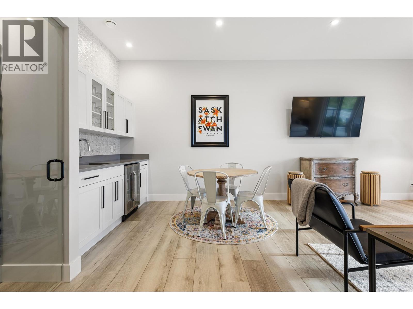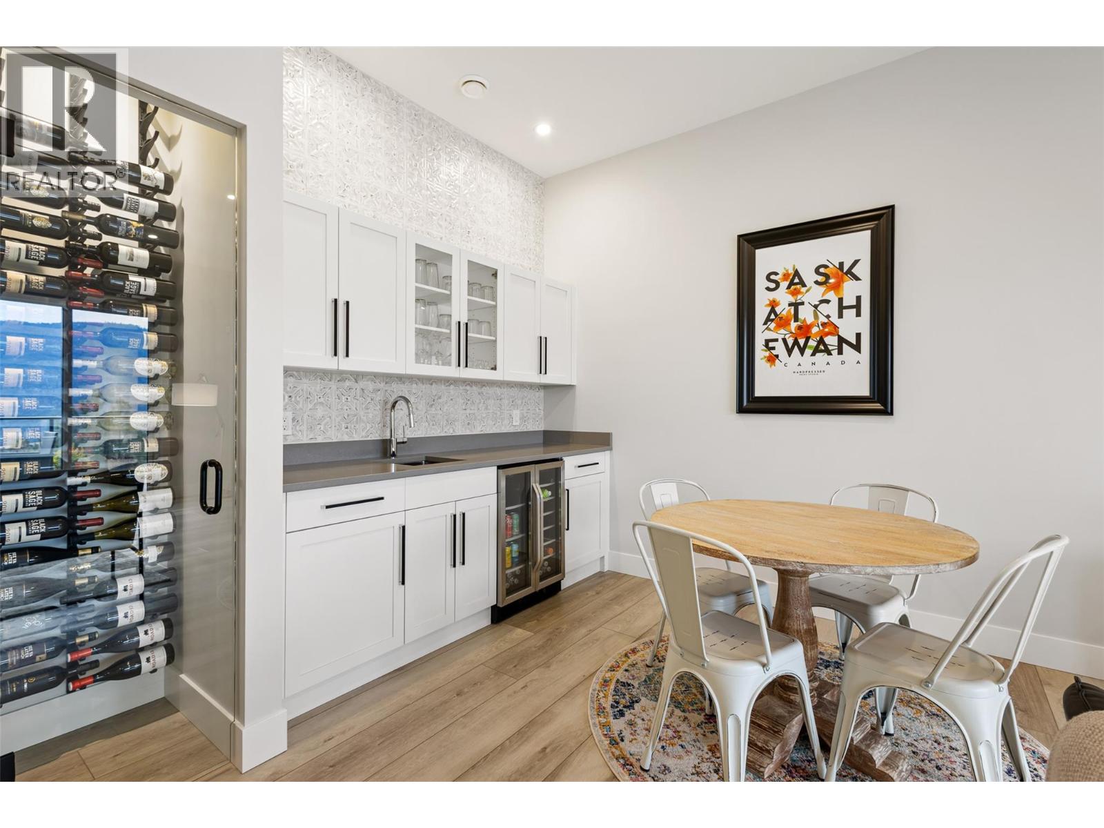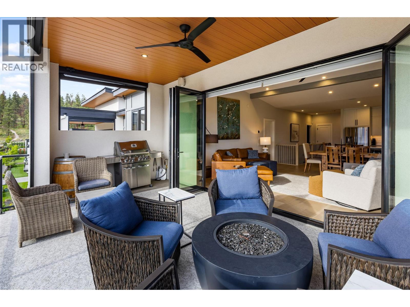Dream retreat in Lakestone —where elegance, comfort, and nature converge. With over $30,000 in upgrades, this home must be seen to be appreciated! This 3-bed + den, 3-bath walkout townhome comes fully-furnished & decorated for immediate, turn-key occupancy! Chef’s kitchen that inspires culinary creativity, with high-end stainless steel appliances, a gas range, wine fridge, & large island that invites connection and conversation with room for 4 stools. Rich wood floors add warmth, while the seamless layout invites you from the kitchen into a bright and airy living space, perfect for entertaining. Floor-to-ceiling gas fireplace with unique tile surround, wallpaper & beamed/vaulted ceilings make this home stand out from the rest. Nano-doors welcome the outside-in & frame peaceful views of the lush landscape, while the upper deck with its automated sunshades - offers a private escape. Primary suite is haven featuring a spa-style ensuite w/heated floors, dual sinks, deep soaker tub, and walk-in closet. Lower walkout level expands your living space with two generously sized bedrooms that both fit King sized-beds, stylish 5-pce bath, a private office/den, and a rec room ready for movie nights complete with wet bar and wine display! Step outside to a tranquil enclosed patio. Residents enjoy exclusive access to the Centre Club: outdoor pools, a gym, & sports courts. Whether you’re looking for a fulltime residence or a luxurious lock-and-leave option, this home offers refined living. (id:2469)
