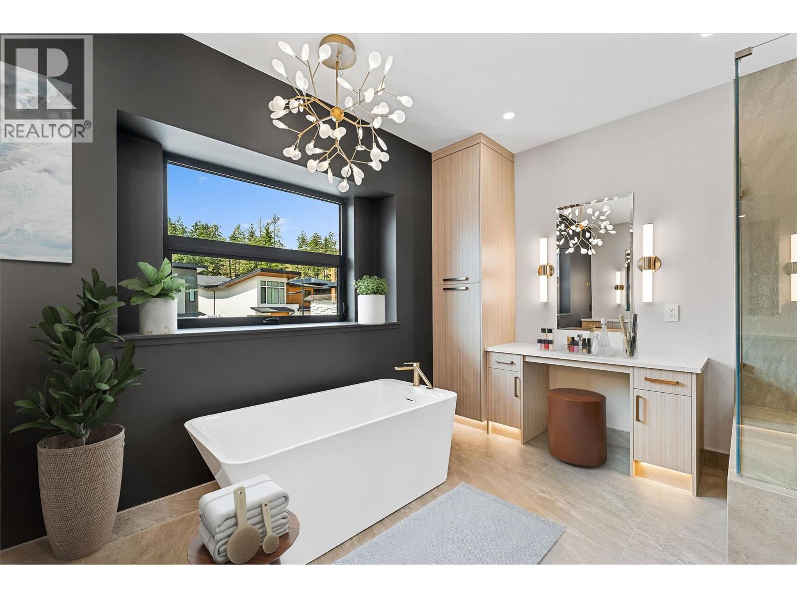 Introducing Your Dream Home in Lakestone and a finalist for best single family home in the Okanagan Housing Awards for 2026 – A Forestside Haven! Discover this stunning new home in Lakestone, where modern luxury meets natural tranquility all inspired and constructed by an award winning home builder. Spanning over 3,800 sq. ft. across three levels, this home backs onto a serene forest and pond loop trail. It features two primary retreats with spa like ensuites (heated floors in the upper ensuite). One is on the main floor and another upstairs with a rooftop deck and coffee loft. The main floor boasts a chef’s kitchen with an oversized Driftwood quartz island, Frigidaire Gallery appliances, a Dacor 5-burner gas cooktop, and a Butler’s pantry. The lower level is ideal for extended family stays, offering a kitchenette, 2 more bedrooms and full bathroom, fireplace, and private living space. With three patio areas, dual beverage fridges, Insinkerator (instant hot/cold) for both butler pantry and coffee bar, two laundry pairs, a heated double-car garage, hot water on demand, plenty of storage and countless quality upgrades, this home is the perfect blend of elegance and convenience. Life at Lakestone includes 2 multi million dollar amenities centres with pools, hot tubs, gyms along with access the beach, multi-sport courts including pickleball and over 25km of hiking and nature trails to enjoy. Price is + GST (5%). Schedule your private viewing today! (id:2469)