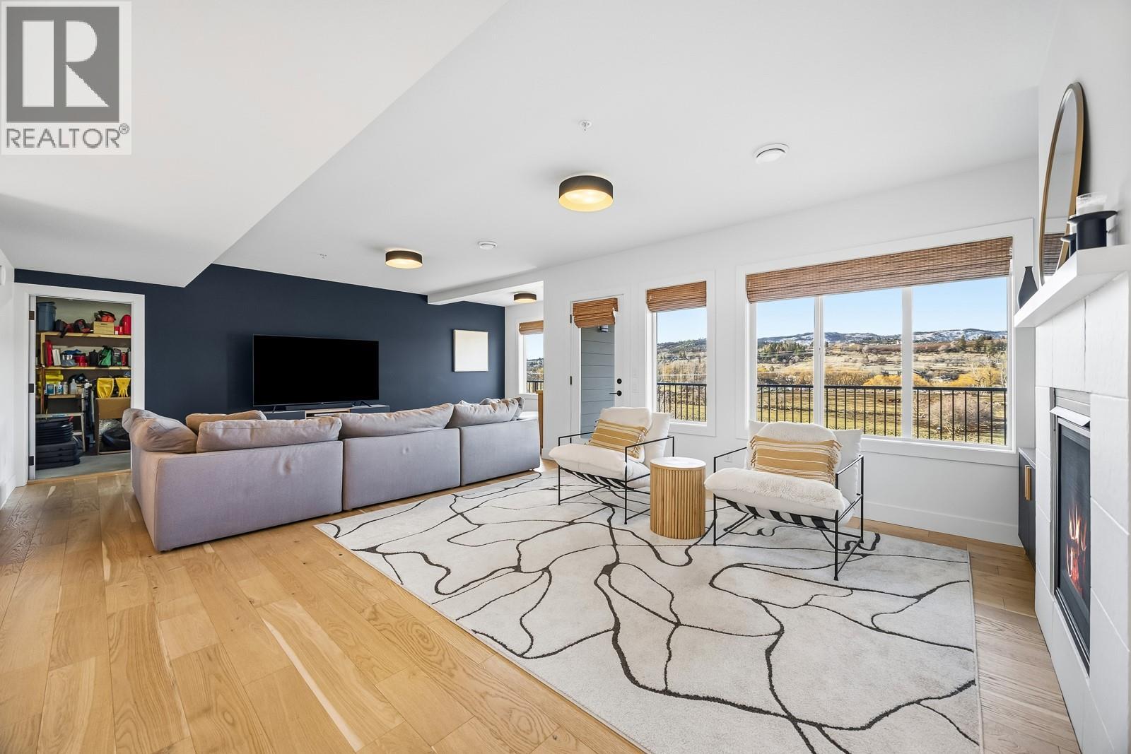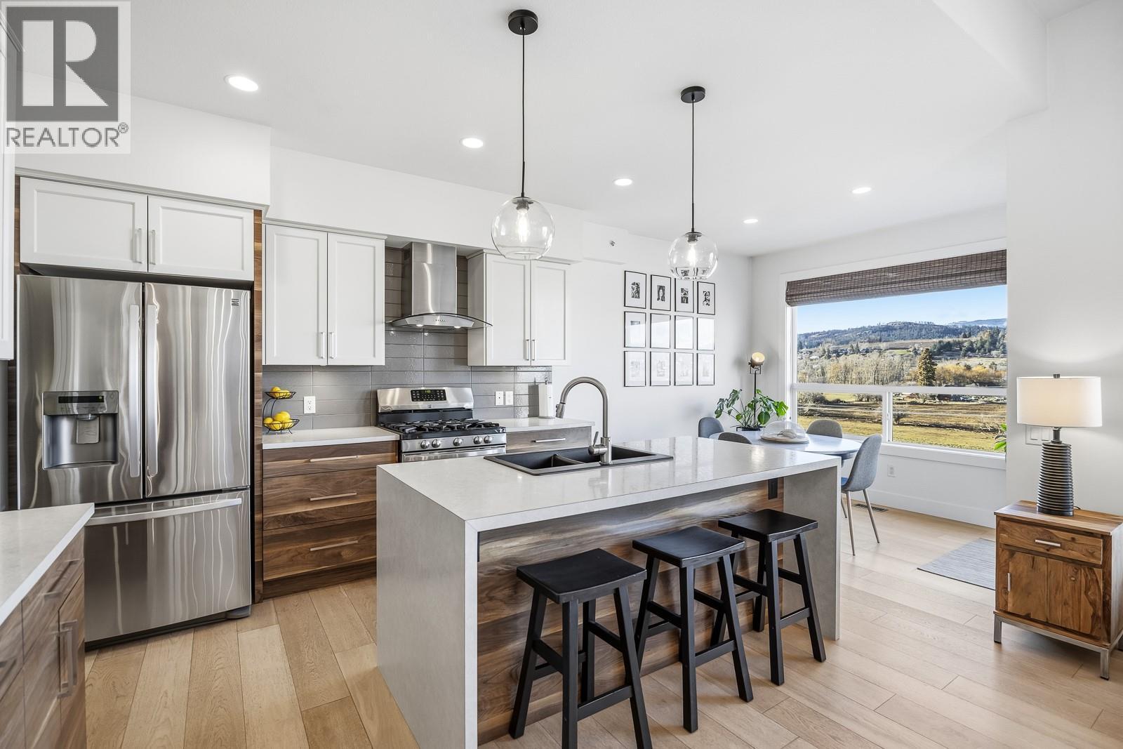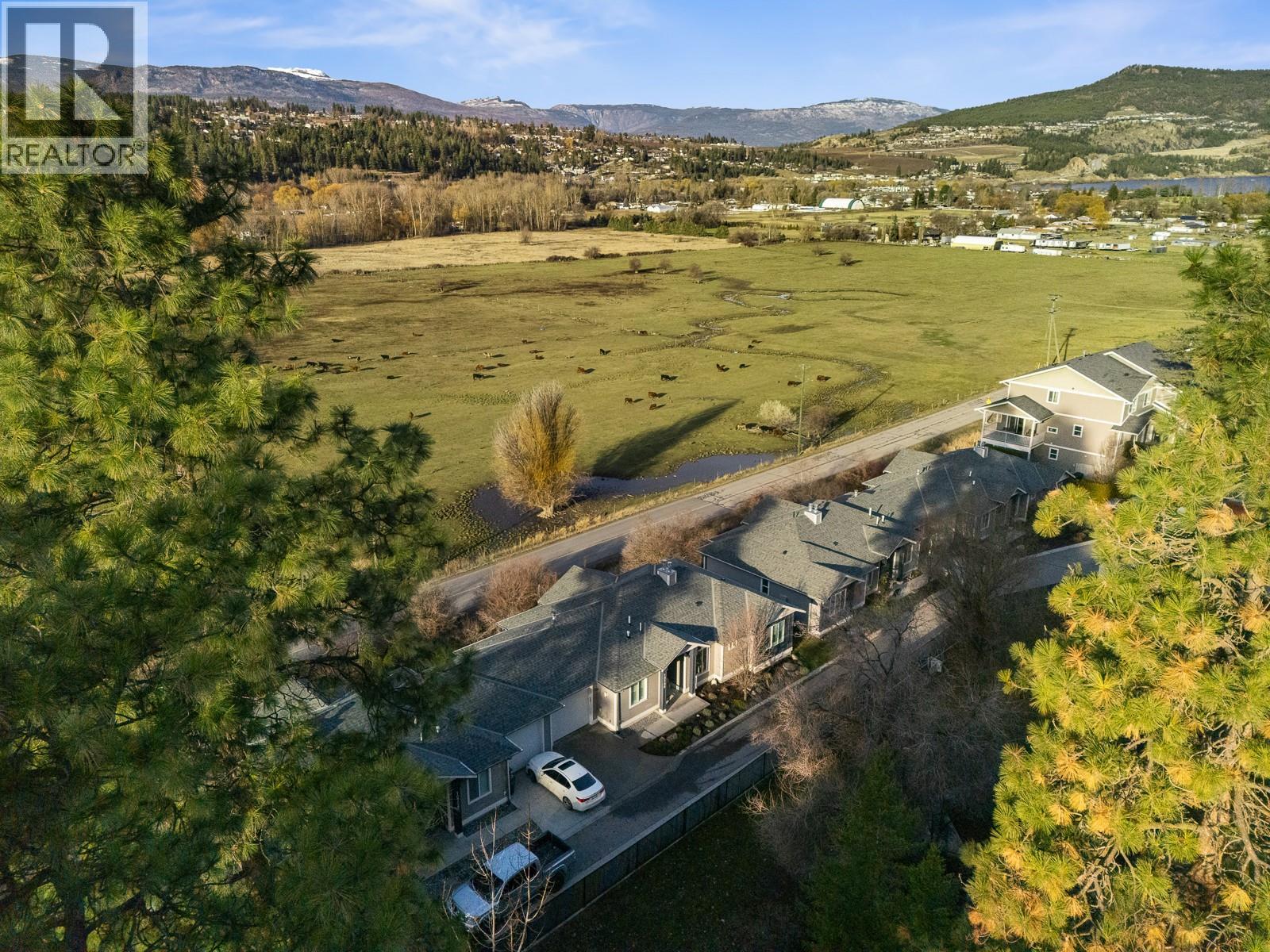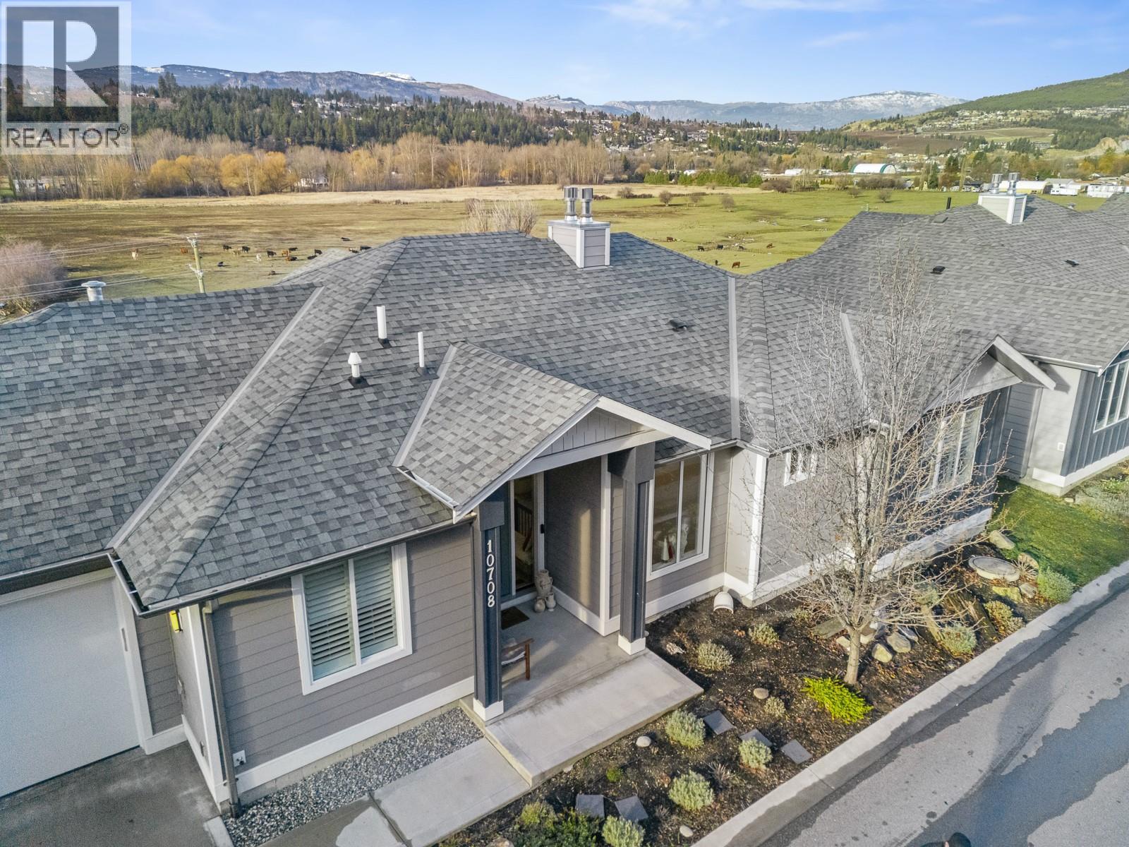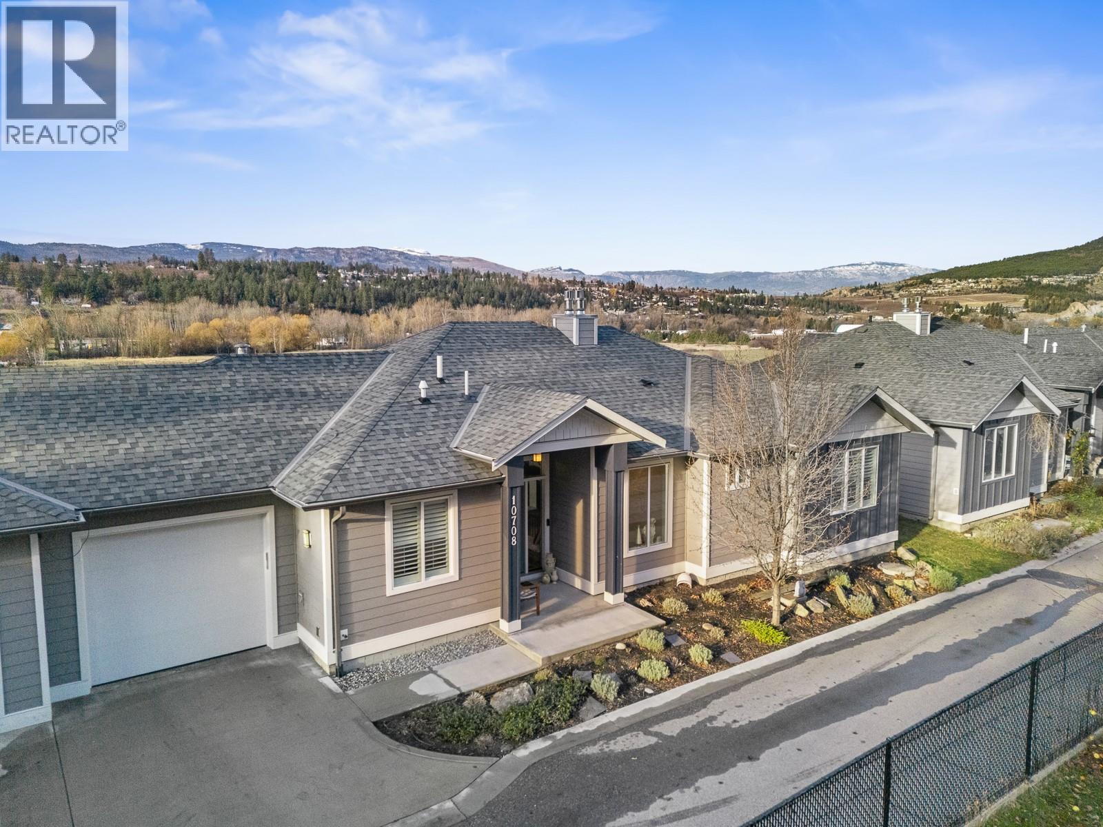 Experience the allure of Lake Country in Lodge Pine Townhomes, an exclusive community featuring only 4 stunning residences. Low strata fees! This exceptional 4-bedroom, 3-bath semi-detached walkout rancher blends luxury & practicality with thoughtfully designed living space. Enjoy easy main floor living with bonus height ceilings & an airy, open-concept layout brimming with natural light. The stylish kitchen showcases premium stainless-steel appliances, a gas range, and a generous kitchen island. The luminous living area leads to an oversized patio, perfect for enjoying breathtaking valley views & vibrant summer sunsets. The primary suite offers a private sanctuary highlighted by a spa-like ensuite featuring a freestanding tub, dual vanities, and a walk-in shower. The lower level hosts two spacious bedrooms, a full bath, and a cozy gas fireplace, along with a wet bar with a mini fridge—ideal for entertaining or relaxing. Designed for effortless living, this home also includes a walkout patio outdoor space and tons of flexible space beneath the garage—perfect for a workshop, gym, or media room. Private gargage and 2 extra spots. Situated a short distance of Wood Lake and moments from the Rail Trail, you’ll find a serene retreat with access to outdoor adventures, wineries, Predator Ridge, UBCO, and YLW. This residence is a unique opportunity for those seeking distinct style and comfort in a coveted locale. (id:2469)