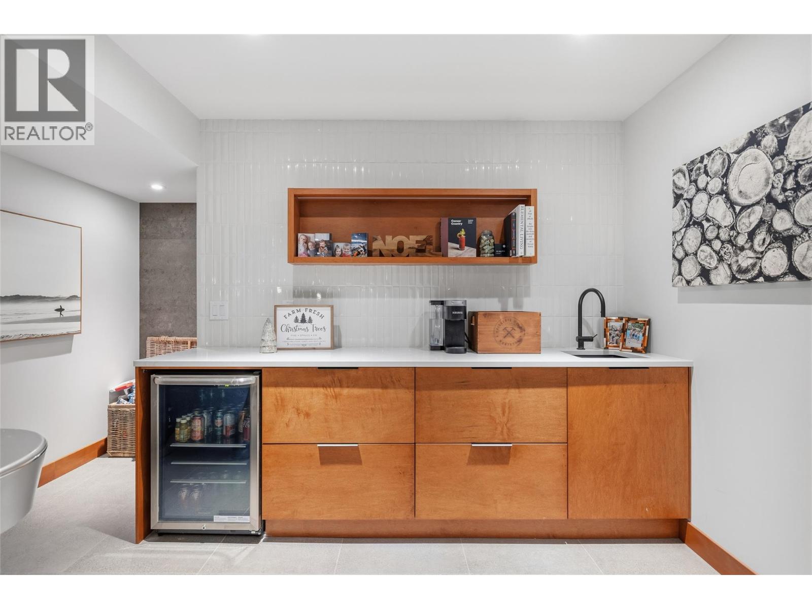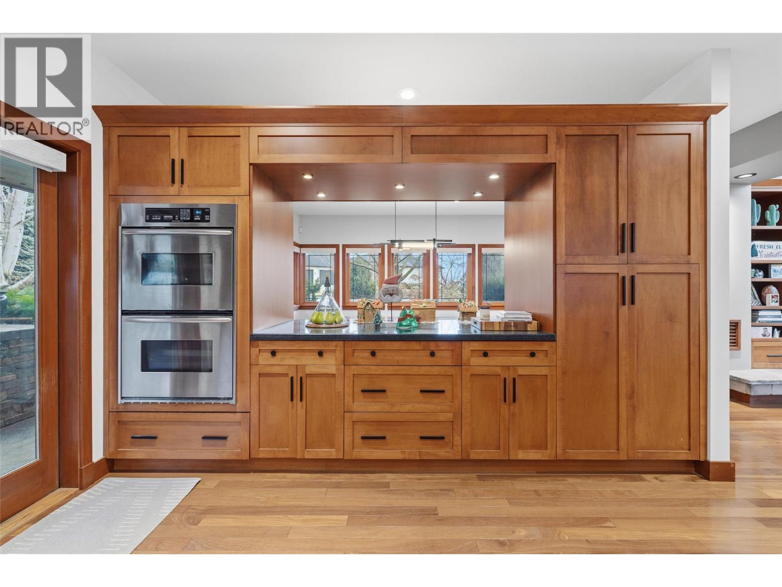 This exceptional residence offers a rare blend of architectural sophistication with design inspiration from Frank Lloyd Wright, as well as privacy and resort-style amenities, all set against a tranquil backdrop with lake views. This home emphasizes clean lines, natural materials, and a strong connection between indoor and outdoor living. Thoughtfully laid out, it features three bedrooms plus a den and three-and-a-half bathrooms, all generously sized, with high ceilings, and abundant windows that flood the space with natural light. Rich wood accents and stone detailing add warmth and character throughout. A striking private courtyard anchors the home, creating a sanctuary that opens to an inviting outdoor living area complete with a heated pool and hot tub, ideal for entertaining or quiet relaxation. A detached studio-style cabana/casita adds flexibility, offering space for guests, hobbies, or a private workspace. The kitchen is designed for both function and style, with ample counter space, abundant cabinetry, stainless steel appliances, and double wall ovens, making it perfectly suited for everyday living and hosting alike. The primary suite is a peaceful retreat, featuring courtyard access, a walk-in closet, and a beautifully appointed five-piece ensuite with a separate soaker tub and shower. Two additional bedrooms, along with a den/home office, provide comfortable accommodations for family or visitors. Downstairs, the fully finished basement expands the living space with a wet bar, gym, recreation area, with great potential to create a dedicated media room. Additional highlights include excellent privacy, RV parking with hookups including sani-dump, and a highly desirable location just steps from local wineries, close to golf courses, and minutes from Okanagan Lake. (id:2469)