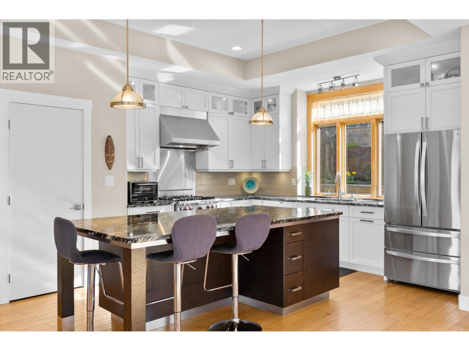 Stunning residence located in the prestigious Okanagan Centre area of Lake Country! With four bedrooms, a media room, an office/den, four bathrooms, and over 3600 square feet on a 1.15 acre lot, this is a turn-key 2014-built home that offers great proximity to the water. Upon entering the property, you are greeted by an abundance of parking that leads you to your oversized double-car garage. Boasting 10' ceilings and engineered hardwood on all levels, almost every room has a spectacular view. The in-floor heated lower level includes a full bedroom, three-piece bathroom, laundry, and a sound insulated media room. The main level offers a spacious kitchen that opens to the dining and living rooms, as well as a large lakeview office space, perfect for those working from home. The kitchen has stainless steel appliances, granite countertops, large island, and a walk-in pantry. The back patio and garden offers a retreat from the afternoon sun and access to a large upper yard and wild space, while the screened front deck offers unparalleled outdoor living directly facing sunsets over Okanagan Lake. Upstairs, the three-bedroom layout is great for families, with two bedrooms serviced by a four-piece bathroom, and a spacious primary bedroom with balcony access and a large five-piece ensuite that includes a soaker tub. The main and upper level decks are both engineered for hot tubs! Okanagan Centre is known for its public lakeshore areas, the boat launch, cafes, wineries, and a quaint community that can't be replicated. (id:2469)