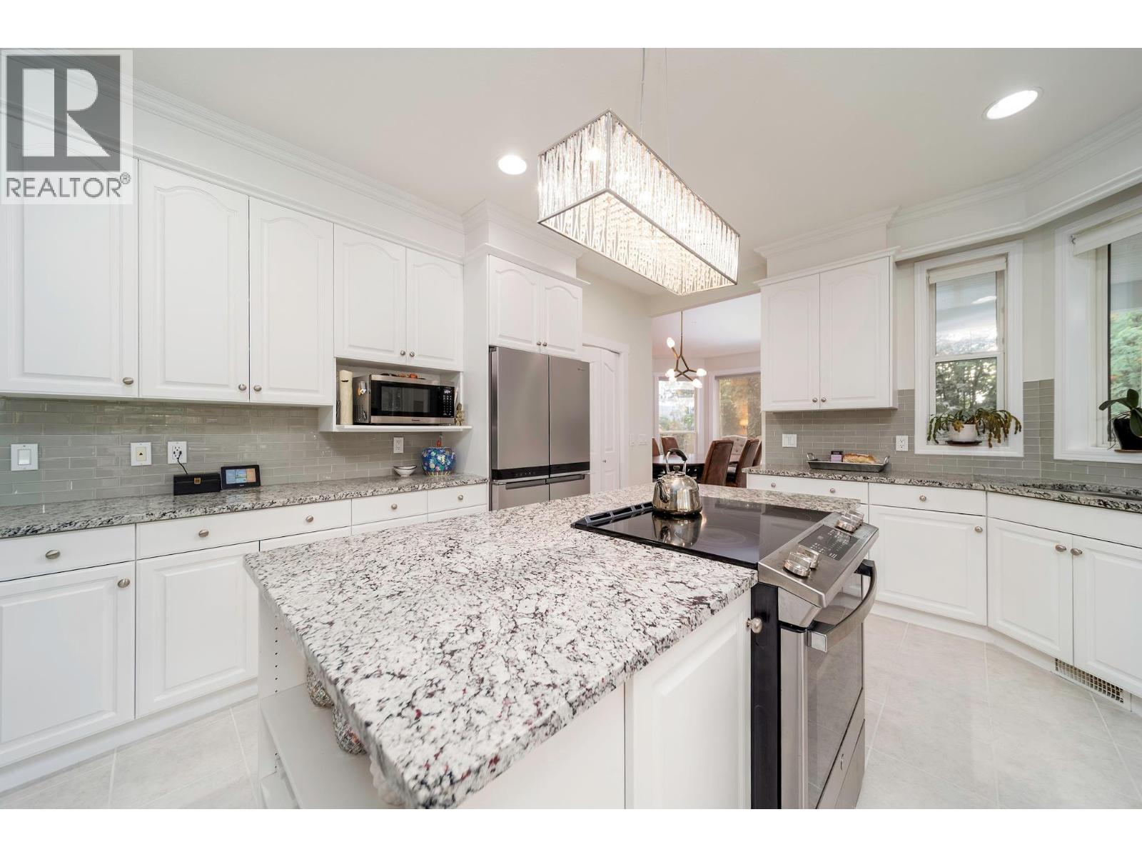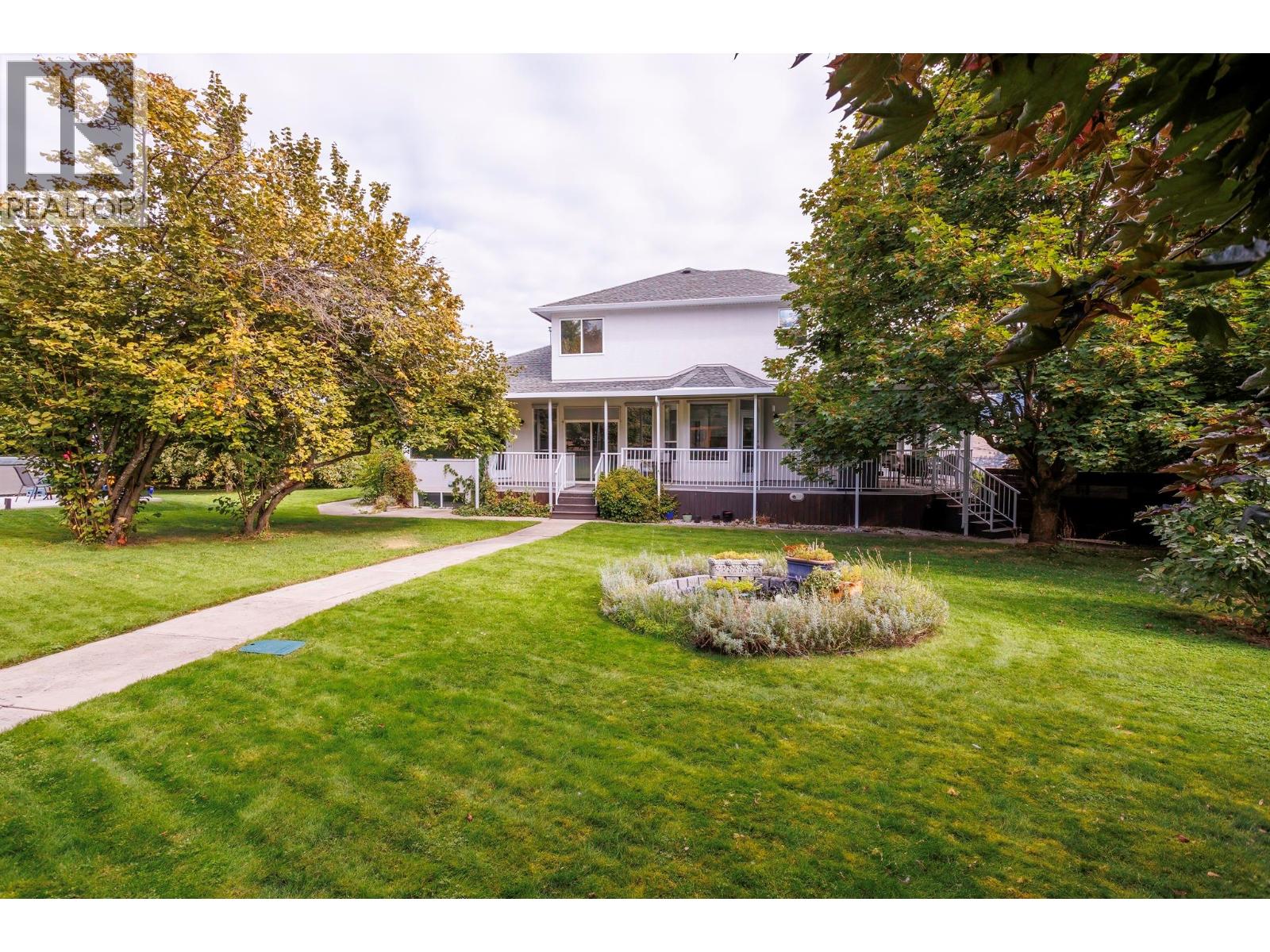 An extraordinary 2.69-acre countryside estate is surrounded by flourishing orchards, offering breathtaking panoramic views of the city skyline and shimmering lake. The residence blends timeless design with natural light, where soaring white ceilings and expansive windows capture stunning exposures from every direction. At the heart of the home, the open-concept living and dining areas seamlessly extend to a partially wrapped-around deck—perfect for entertaining or simply soaking in the views. The chef-inspired kitchen is positioned to overlook the magnificent landscape, while the primary suite provides a true sanctuary with direct access to the backyard, a private retreat space, and a spa-like ensuite designed for relaxation. With four additional bedrooms, a versatile flex room with lake views, and a balcony walkout, this home offers both functionality and luxury for families of all sizes. Outdoors, the ultra-private grounds boast lush green space—ideal for a pool, sports, or gatherings—while the expansive driveway leads to a triple car garage, a separate workshop, and ample parking for boats, RVs, or equipment. Adding to its appeal, a two-bedroom guest suite;complete with kitchen, laundry, and bathroom provides the perfect solution for extended family, guests, staff, or rental opportunities. A rare opportunity to own a private slice of paradise just minutes from local amenities—or enjoy a leisurely stroll to nearby wineries. (id:2469)