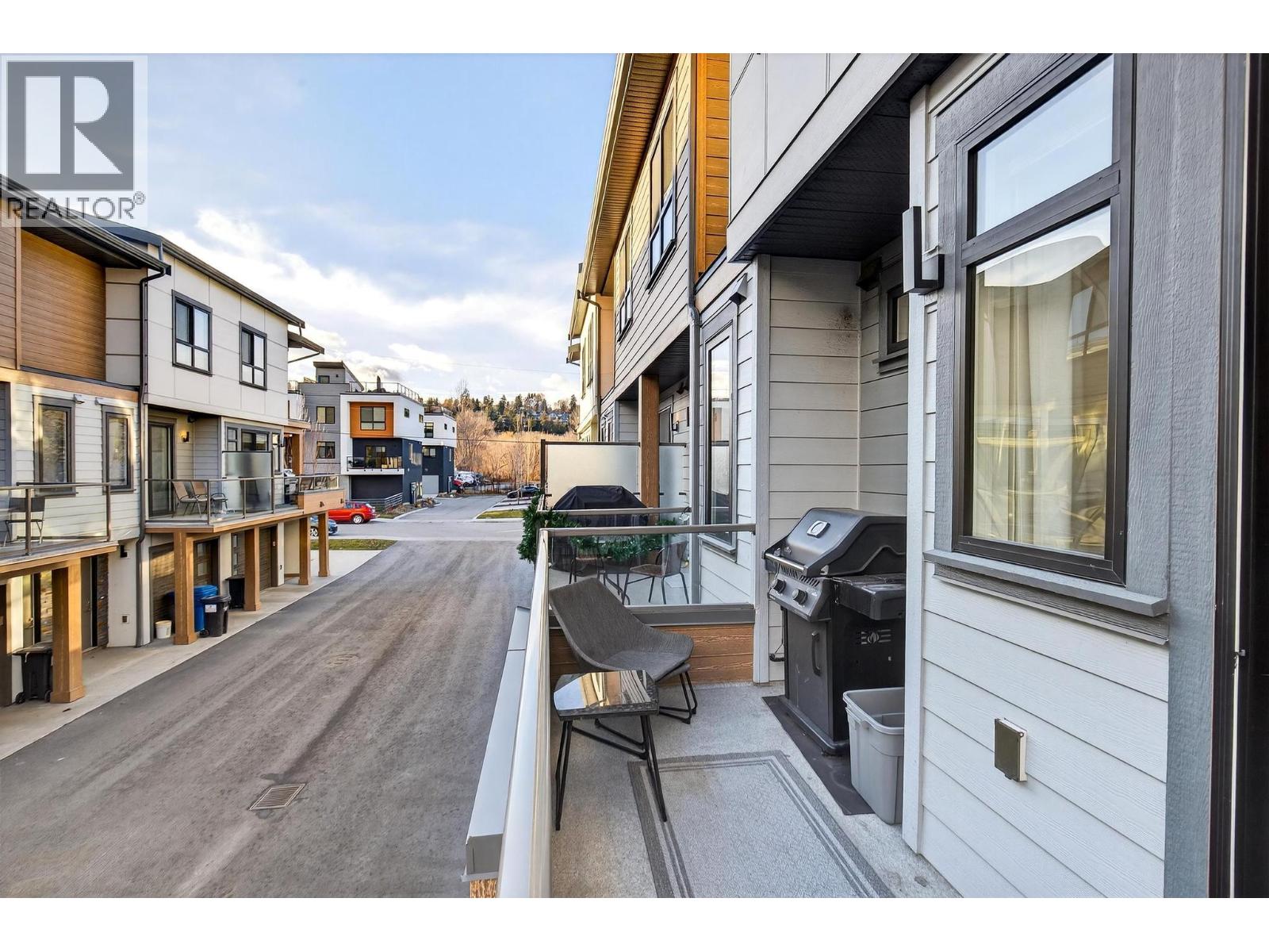 Envision waking up to beautiful Lake Views!!! This 3 bedroom, 2.5 bathroom townhome is a testament to good taste and comfortable living. Just steps away from public beach access to Wood Lake, this modern elegant home offers an open concept main floor featuring a modern kitchen perfect for entertaining and a seamless transition to both the dining and living room areas. The kitchen includes a large island with a double sink, 2-tone cabinets, a chic black tile backsplash, and stainless steel appliances. The dining area features sliding glass doors that lead to a charming balcony, perfect for morning coffee or evening relaxation. At the other side of the main level, the living room opens to a large balcony overlooking the beach access, providing great Wood Lake views. Upstairs the primary bedroom allows you to wake up each morning to even better lake views! It features a 4-pc ensuite with glass shower and double vanity. The walk-in closet has a built-in organization system. Imagine owning this gem – not just a home but a lifestyle! The bottom level initially housed a tandem garage. However, a removable wall has transitioned part of the area into a versatile space – perfect for a home gym or office. Right in the heart of Lake Country, you are close to everything! Come see your dream home today! (id:2469)