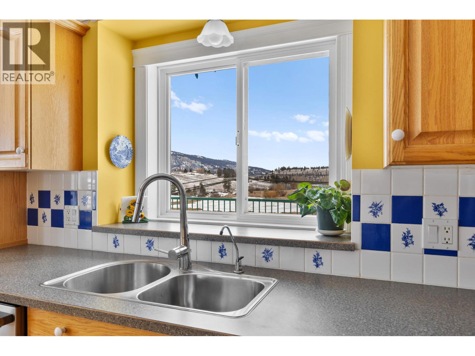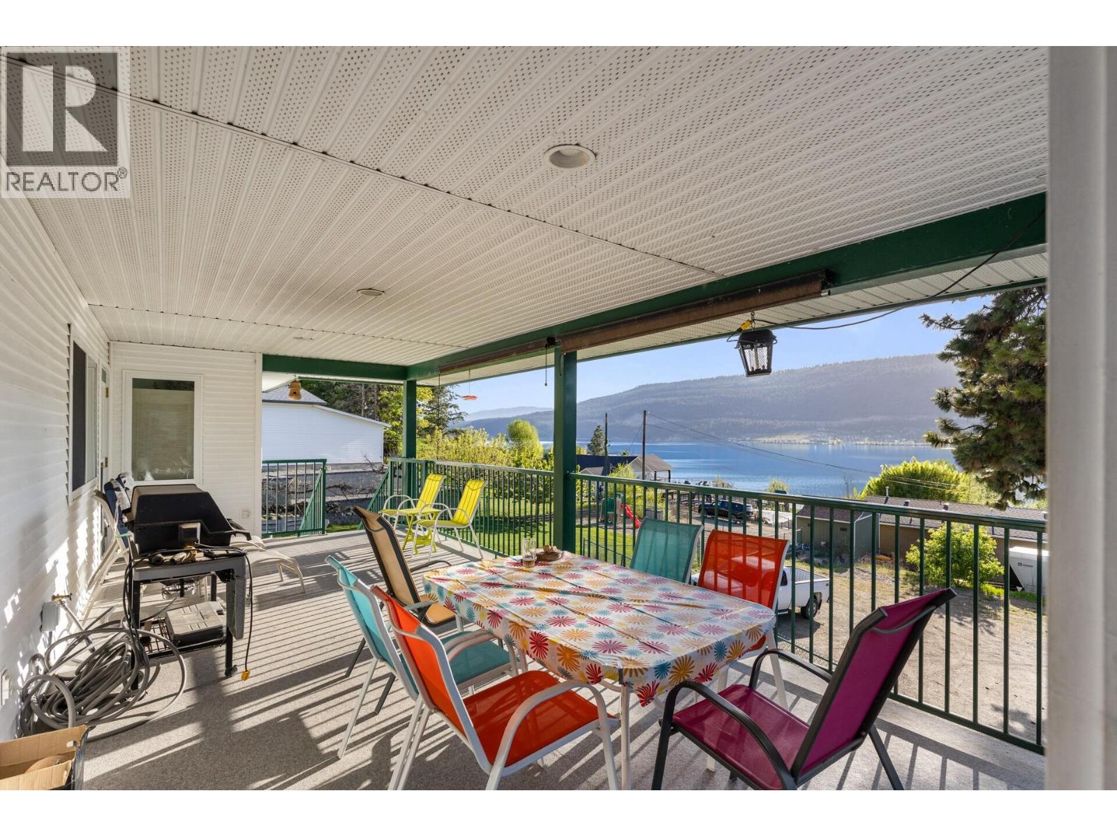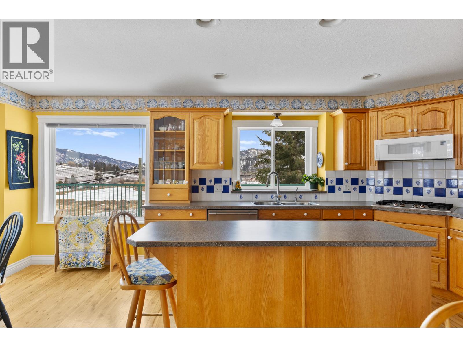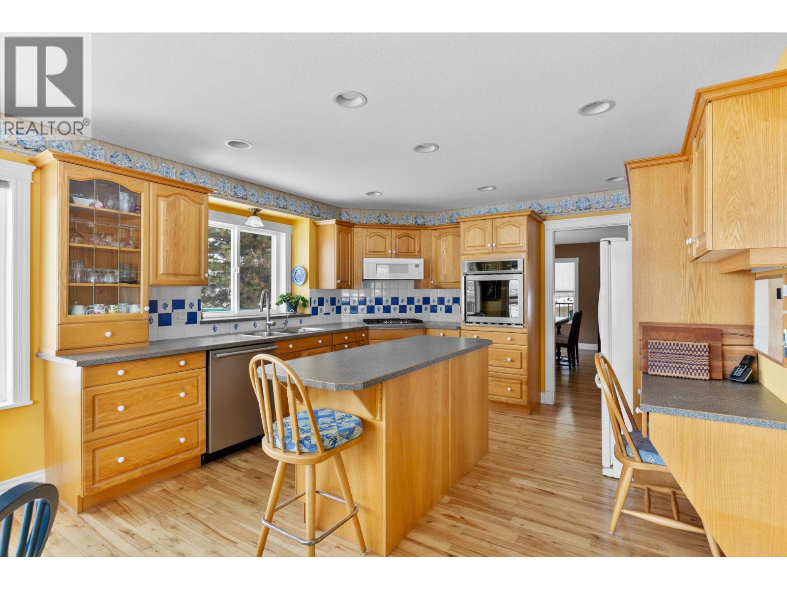 From the moment of arrival, this exceptional original-owner three bedroom home, steps from Wood & Kalamalka Lake, captivates with its refined presence, desirable location and sweeping views. Set on a rare 0.618-acre corner lot, the home blends timeless elegance with thoughtful design. A striking metal green roof, crisp white siding and graceful curb appeal frame a wraparound driveway, covered front porch and carport, while a second driveway leads to a substantial 1,000 square foot detached workshop and multiple garages—offering abundant space for vehicles, recreational toys or an RV. Crafted by Harmony Homes, the interior is equally impressive. The expansive main level features hardwood flooring, wide hallways and accessible doorways, creating an atmosphere of openness and ease. The primary bedroom opens to a west-facing deck that wraps around to the kitchen—an ideal setting for sunset entertaining and indoor-outdoor living. Designed with versatility in mind, the walkout lower level includes a secondary entrance, allowing for seamless conversion into a private one-bedroom suite—an ideal setup for a home-based business, caretaker’s suite, or extended family living—while a spacious mechanical room accessed from the garage can be securely locked off for owner storage. Outdoors, a fenced lawn and irrigated grounds form a private oasis rich with mature ponderosa pines, fruit trees, grapevines, a greenhouse and raised garden beds. The heated 80-amp workshop is a standout feature, complete with wide-plank wood flooring, barn doors, an I-beam and a half bath with on-demand hot water—ideal for artisans, collectors, or hobbyists. Tremendous amount of parking and turn around for a boat or recreational vehicles. Recent upgrades include a new furnace, heat pump for A/C and hot water tank for peace of mind. Moments from Kalamalka Lake’s Kaloya Regional Park, the Okanagan Rail Trail and endless recreation, this property offers a rare combination of views, location and lifestyle. (id:2469)