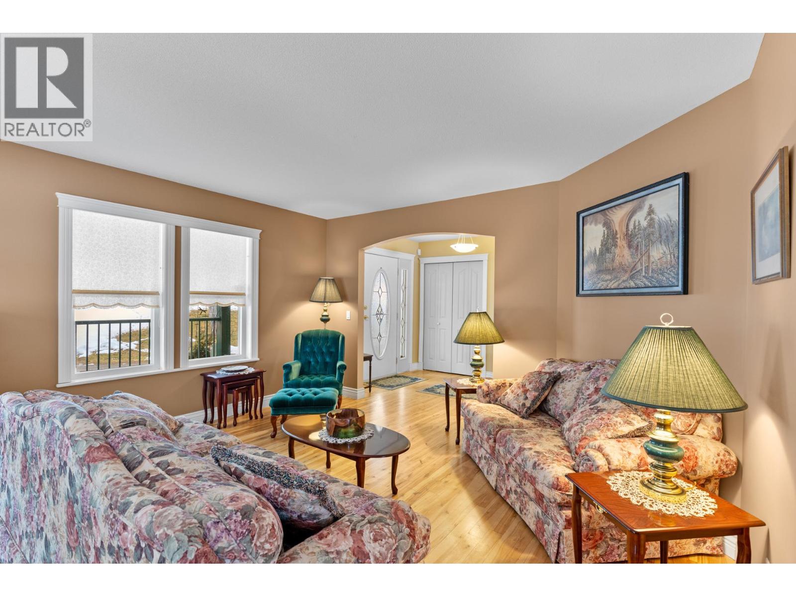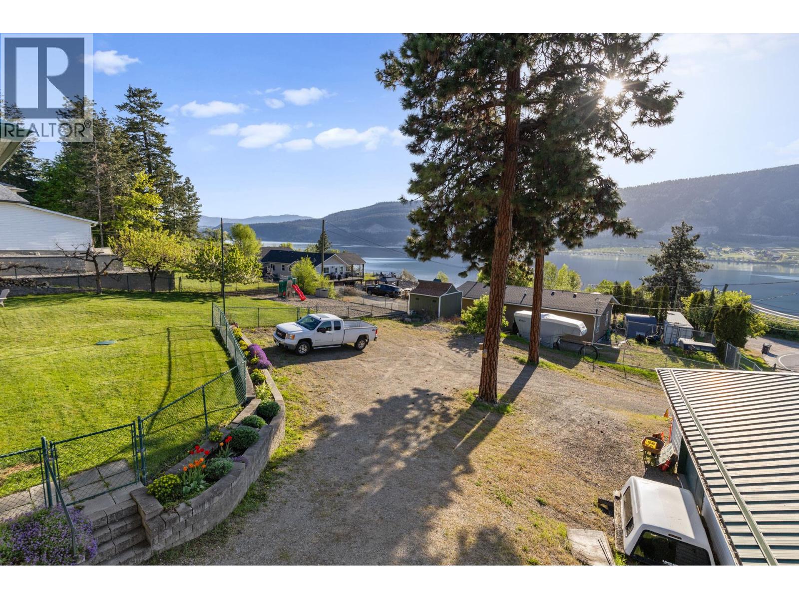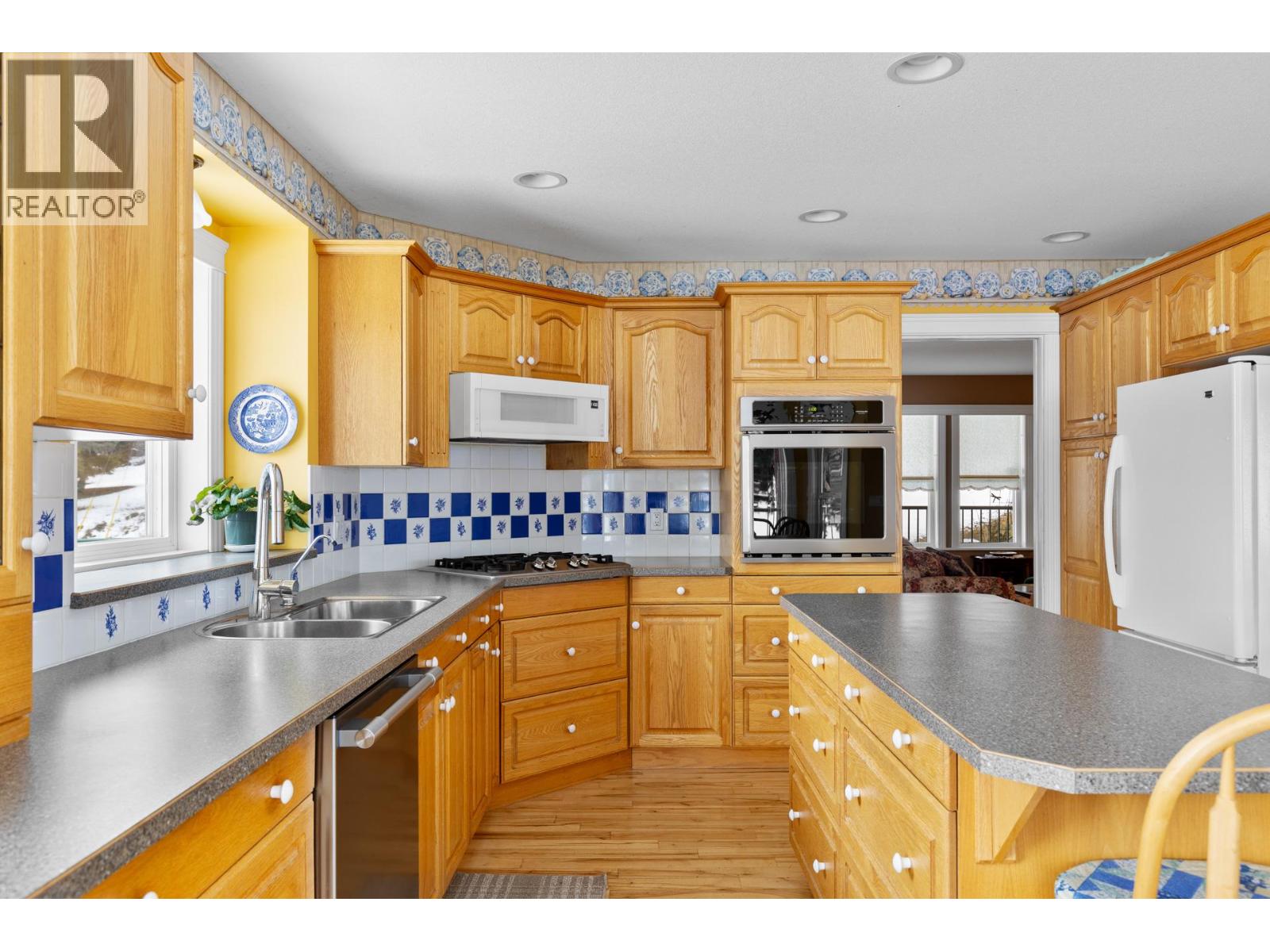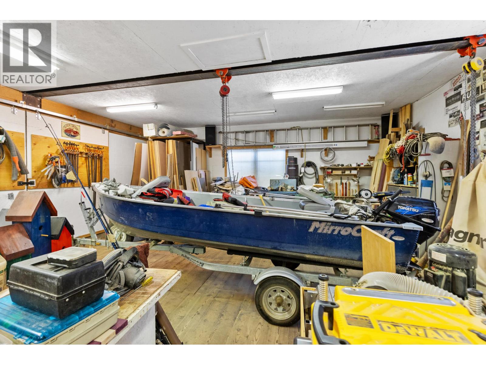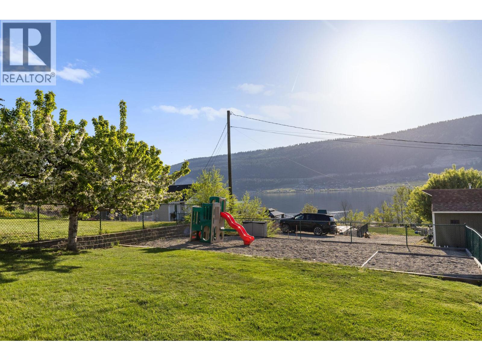 From the moment of arrival, this exceptional original-owner three bedroom home, steps from Wood & Kalamalka Lake, captivates with its refined presence, desirable location and sweeping views. Set on a rare 0.618-acre corner lot, the home blends timeless elegance with thoughtful design. A striking metal green roof, crisp white siding and graceful curb appeal frame a wraparound driveway, covered front porch and carport, while a second driveway leads to a substantial 1,000 square foot detached workshop and multiple garages—offering abundant space for vehicles, recreational toys or an RV. Crafted by Harmony Homes, the interior is equally impressive. The expansive main level features hardwood flooring, wide hallways and accessible doorways, creating an atmosphere of openness and ease. The primary bedroom opens to a west-facing deck that wraps around to the kitchen—an ideal setting for sunset entertaining and indoor-outdoor living. Designed with versatility in mind, the walkout lower level includes a secondary entrance, allowing for seamless conversion into a private one-bedroom suite—an ideal setup for a home-based business, caretaker’s suite, or extended family living—while a spacious mechanical room accessed from the garage can be securely locked off for owner storage. Outdoors, a fenced lawn and irrigated grounds form a private oasis rich with mature ponderosa pines, fruit trees, grapevines, a greenhouse and raised garden beds. The heated 80-amp workshop is a standout feature, complete with wide-plank wood flooring, barn doors, an I-beam and a half bath with on-demand hot water—ideal for artisans, collectors, or hobbyists. Tremendous amount of parking and turn around for a boat or recreational vehicles. Recent upgrades include a new furnace, heat pump for A/C and hot water tank for peace of mind. Moments from Kalamalka Lake’s Kaloya Regional Park, the Okanagan Rail Trail and endless recreation, this property offers a rare combination of views, location and lifestyle. (id:2469)