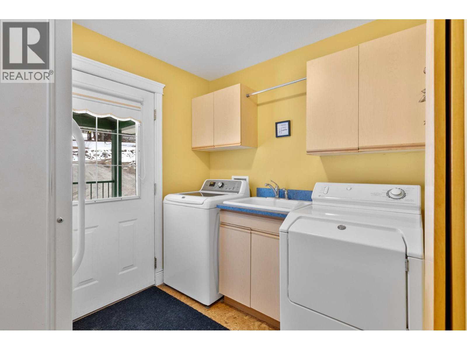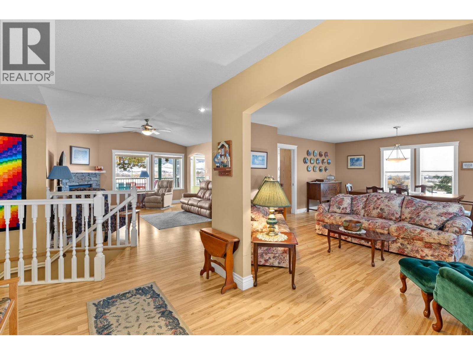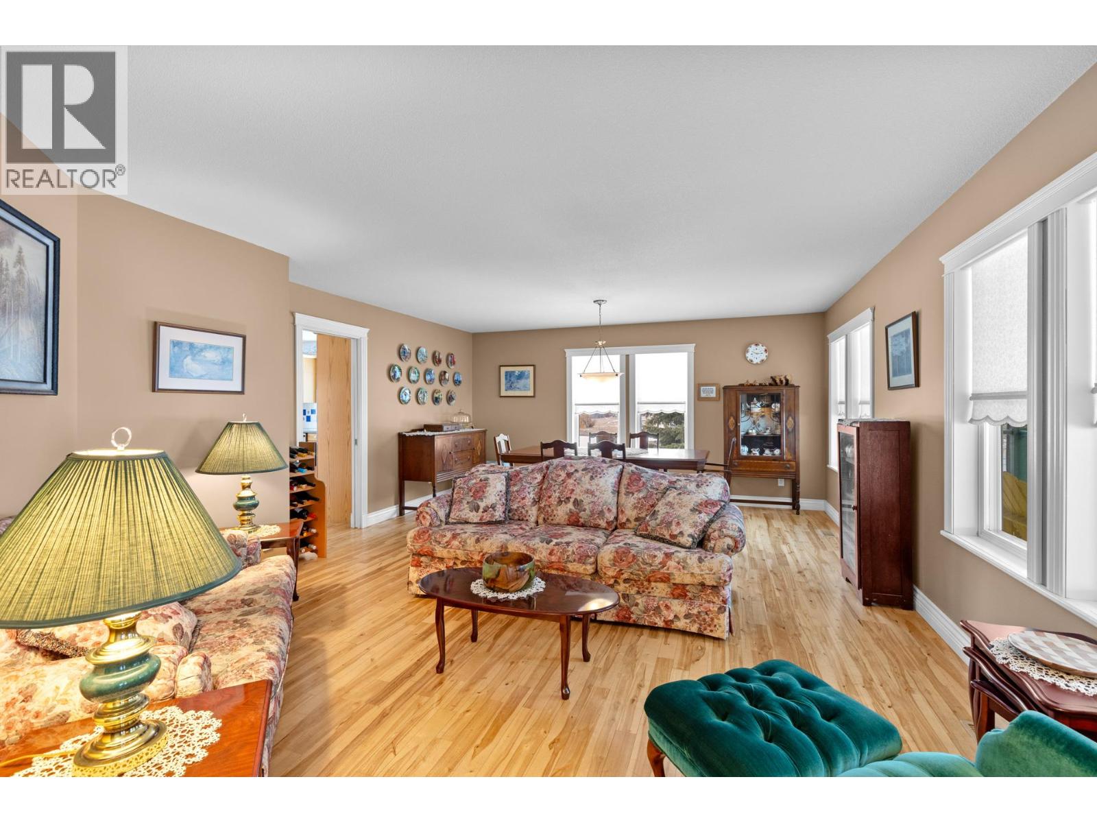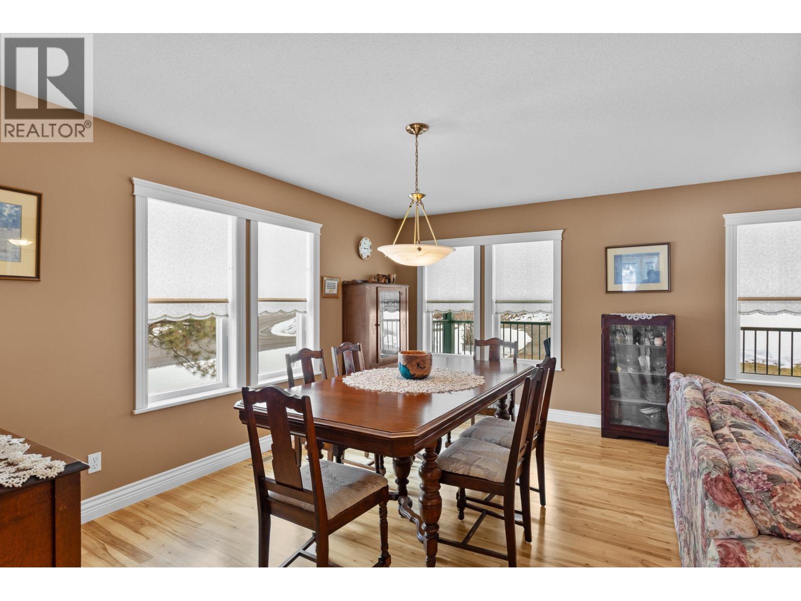 From the moment of arrival, this exceptional original-owner three bedroom home, steps from Wood & Kalamalka Lake, captivates with its refined presence, desirable location and sweeping views. Set on a rare 0.618-acre corner lot, the home blends timeless elegance with thoughtful design. A striking metal green roof, crisp white siding and graceful curb appeal frame a wraparound driveway, covered front porch and carport, while a second driveway leads to a substantial 1,000 square foot detached workshop and multiple garages—offering abundant space for vehicles, recreational toys or an RV. Crafted by Harmony Homes, the interior is equally impressive. The expansive main level features hardwood flooring, wide hallways and accessible doorways, creating an atmosphere of openness and ease. The primary bedroom opens to a west-facing deck that wraps around to the kitchen—an ideal setting for sunset entertaining and indoor-outdoor living. Designed with versatility in mind, the walkout lower level includes a secondary entrance, allowing for seamless conversion into a private one-bedroom suite—an ideal setup for a home-based business, caretaker’s suite, or extended family living—while a spacious mechanical room accessed from the garage can be securely locked off for owner storage. Outdoors, a fenced lawn and irrigated grounds form a private oasis rich with mature ponderosa pines, fruit trees, grapevines, a greenhouse and raised garden beds. The heated 80-amp workshop is a standout feature, complete with wide-plank wood flooring, barn doors, an I-beam and a half bath with on-demand hot water—ideal for artisans, collectors, or hobbyists. Tremendous amount of parking and turn around for a boat or recreational vehicles. Recent upgrades include a new furnace, heat pump for A/C and hot water tank for peace of mind. Moments from Kalamalka Lake’s Kaloya Regional Park, the Okanagan Rail Trail and endless recreation, this property offers a rare combination of views, location and lifestyle. (id:2469)