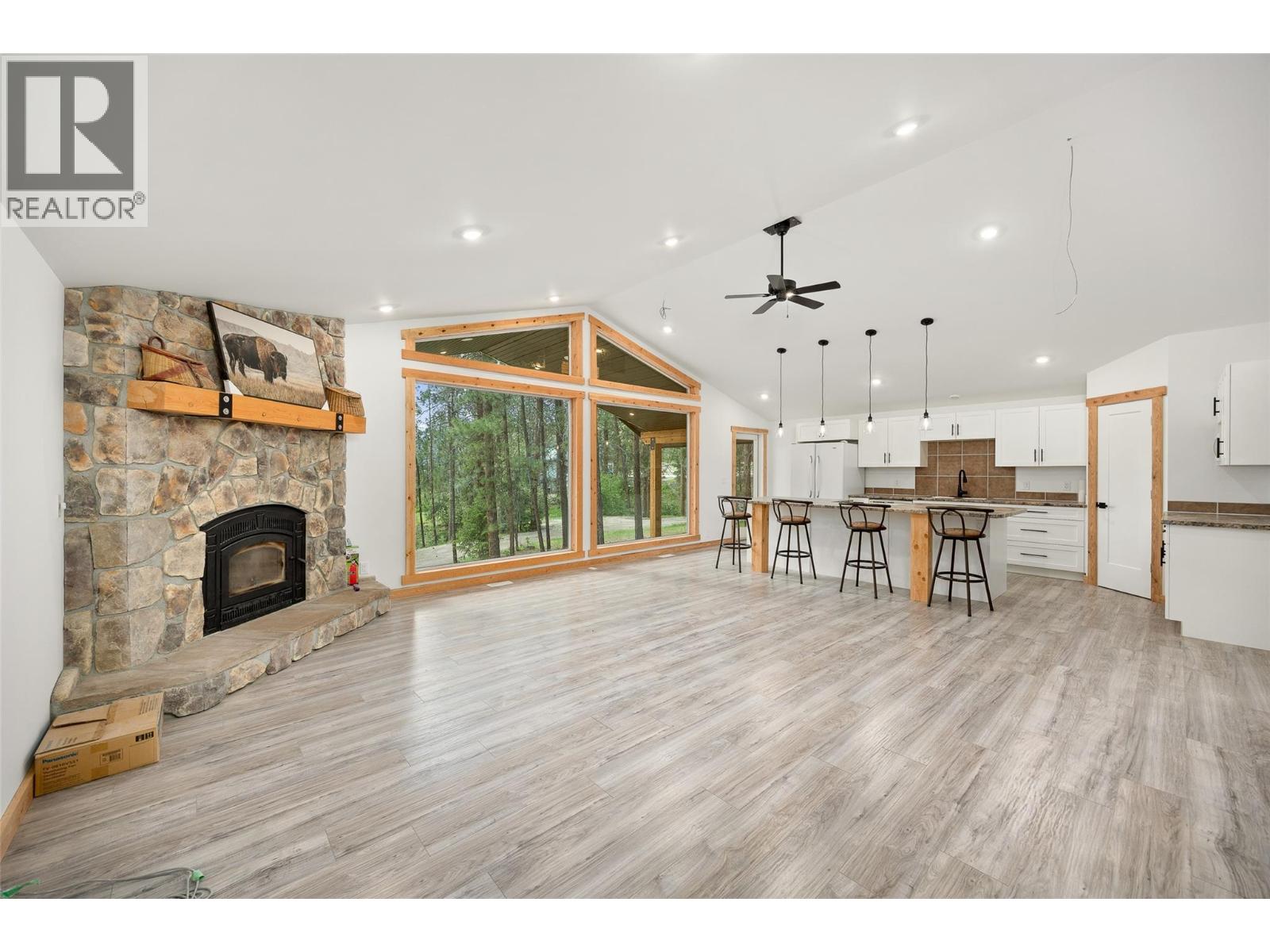 Unique opportunity in the prestigious Carr's Landing area of Lake Country. Situated on 5.565 acres with a primary home and two separate workshops, this property offers plenty of privacy and flexibility. The primary home is over 4,400 sq.ft in size, and offers four bedrooms and four bathrooms total. Luxury features include expansive living room ceilings, rock fireplace, exposed timber beams, and covered deck spaces. The living room opens up to the kitchen space, with access to the balcony to enjoy the tremendous views. The walk-out basement includes full 9' ceilings, and a one-bedroom legal suite. Full garage, both upstairs and downstairs. There are two distinct workshops, approximately 60'x30' and 60'x32'. The first workshop has over 1,500 sq.ft. of space with a bathroom below, and a two bedroom, one bathroom suite above. The second workshop boasts over 1,600 sq.ft. on the main, with a modernized two bedroom, one bedroom suite above with potential to add an expansive balcony. The lands are expansive and fully fenced, with great potential as an equestrian property with fencing, cross fencing, automatic waterers, shelter, round pen, etc. The property is well situated for additional storage, whether for RVs, equipment, toys. Predator Ridge, the O'Rourke Family Estate, lake access, Sparkling Hills Resort, Ritz Carlton Residences, etc are all just a short drive away. This is perfect for a multigenerational household, those requiring income/storage/animals, and has many flexible uses! (id:2469)
