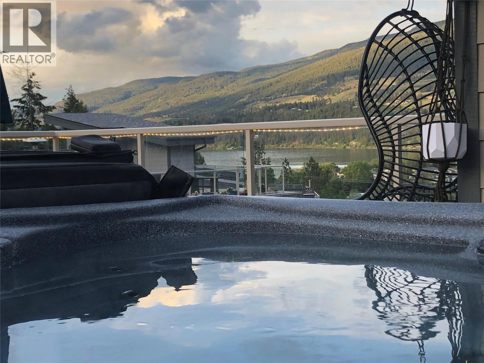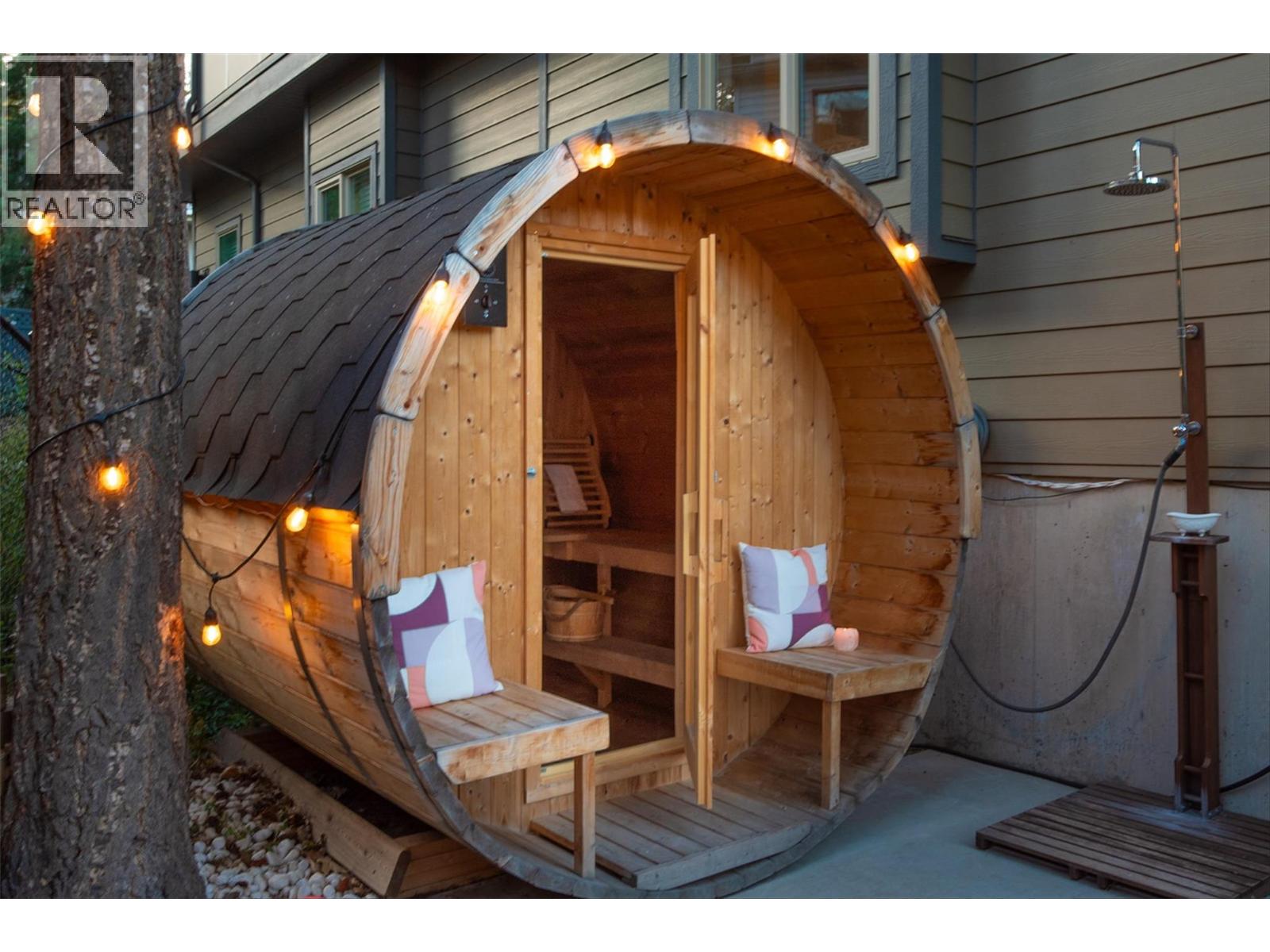 MASSIVE ROOFTOP PATIO, with unobstructed views of LAKE and MOUNTAINS. Rooftop HOT TUB and Rooftop GREENHOUSE included!! Personal gas-powered WINE BARREL SAUNA both dry or steam included! Outdoor shower for cold exposure after sauna session, personal spa experience at home! Upgrades include landscaping with built-in bench around fire pit and beautiful patio stone area. Unit has total of 4 beds & 4 baths! Only unit with NO CARPET, beautiful scratch-proof flooring. FINISHED WALK-OUT BASEMENT with PRIVATE ENTRANCE. HUGE bright kitchen with large island, modern quartz countertops, walk-in pantry, and beautiful cabinetry! OPEN CONCEPT living and dining room off kitchen with TWO fireplaces and high ceilings. Easily access BBQ, fire pit or sauna from quaint wrap around porch off kitchen to backyard. Oversized MASTER bedroom with WALK-IN closet, gorgeous ENSUITE BATHROOM with his and her sinks, private toilet room, and luxurious freestanding soaker tub! Backyard faces south, sun all day! Mature trees and lush vegetated hillside provide privacy, shade, and tranquility. Large 2 car GARAGE with built in cabinets and storage shelves. NO pet restrictions, dog pen, dog friendly community. Walking distance to Starbucks, yoga studio, Pub, Marina, Restaurants, local shops, etc. Easy access to paved bike and walking trail around Wood Lake with access to Okanagan Rail Trail, picnic area, beach, and off-leash dog park with beach, etc. (id:2469)