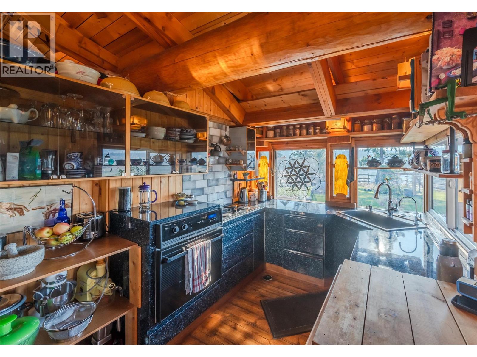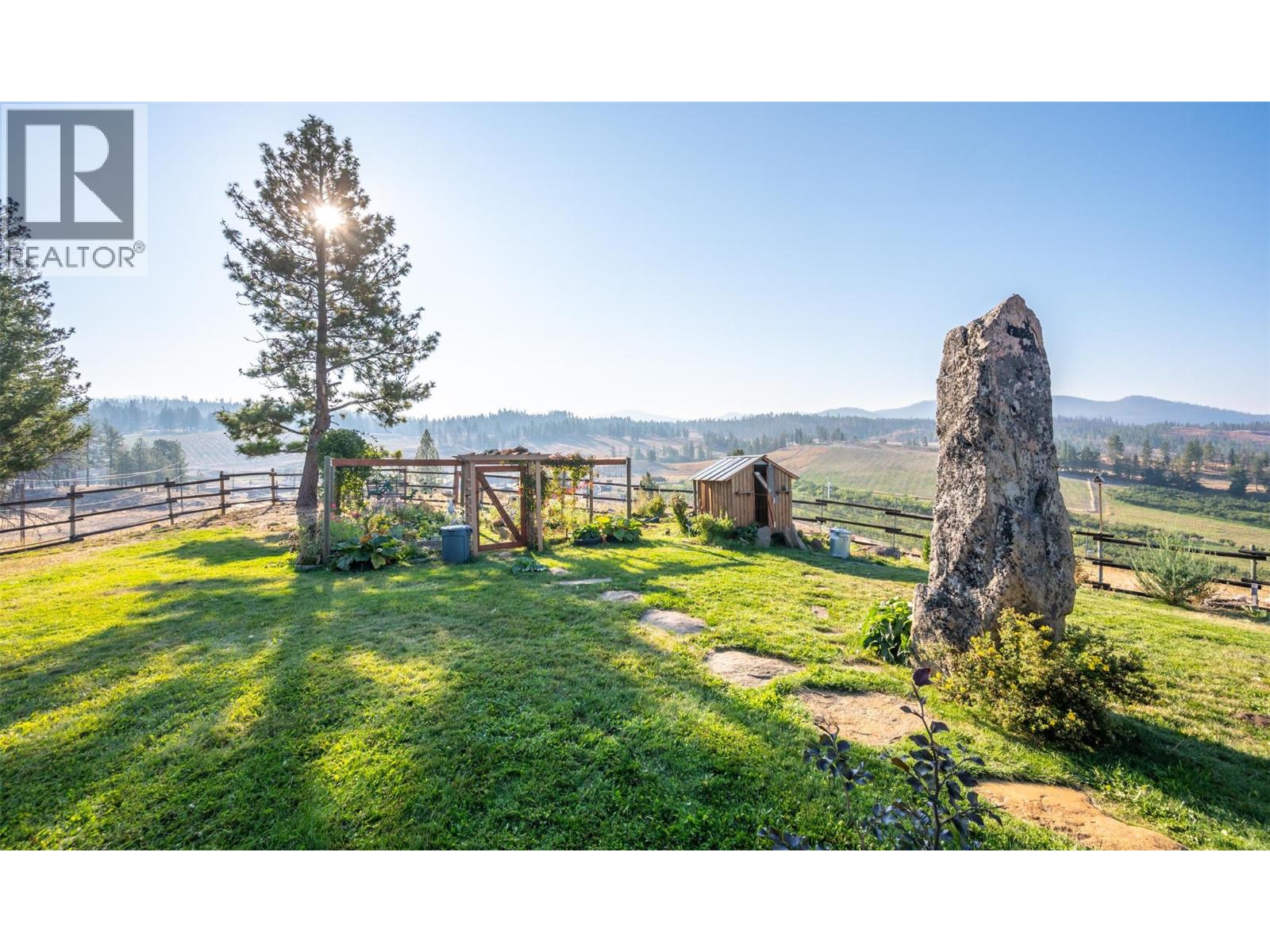 Welcome to Manndala! Designed by renowned architect Henry Yorke Mann as his personal residence, this stunning compound is situated on 12.4 rolling acres just a 15 minute drive from Oliver. Surrounded by 270 degree, breathtaking mountain vistas, this natural oasis offers multiple use scenarios including a dream equestrian property, wellness retreat, creative sanctuary, Airbnb destination, or extended family compound. The main residence is a stunning example of HYM's design ethos focused on extensive use of natural materials to creating buildings in harmony with their environments. Anchored by four custom, concrete block pillars (the ""four corners of the earth""), and featuring soaring, skylit, vaulted ceilings, wraparound windows, giant log beams, and Mann's signature central, sculptural, concrete block fireplace installation, this home presents a unique connection to the natural world around it. This design sensibility carries through to the additional buildings on-site; the purpose-built secondary residence (the ""Quietude""), the additional efficiency suite (the ""Cowboy""), and the dramatic, freestanding workshop/studio (the ""Jewel""), with its adjacent three-season washroom. Additional outbuildings on-site provide storage and shelter for vehicles. Thoughtful additions by the current owner include a beautiful, four-stall horse barn with enclosed pastures and custom, circular riding paddock perfect for focused training. Dimensions approximate. Buyer to verify if important. (id:2469)