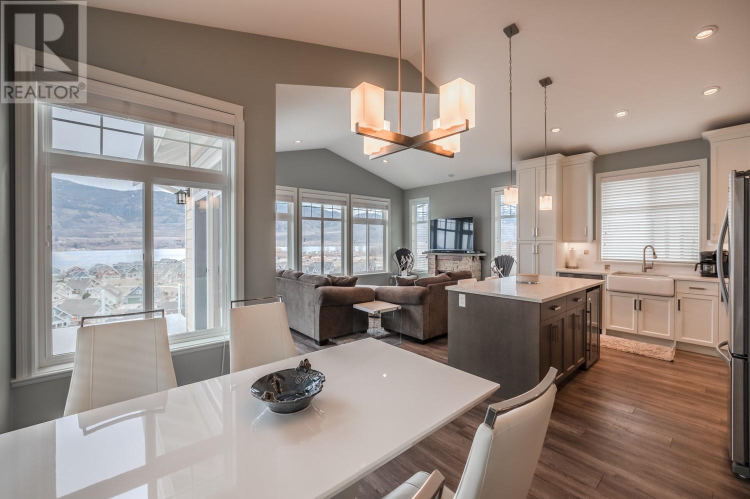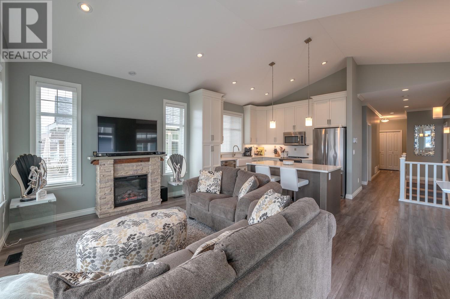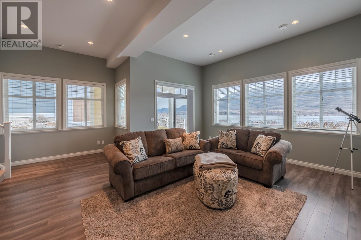 Welcome to your dream retreat at the Cottages on the Lake! This meticulously cared-for property boasts one of the BEST VIEWS of the lake, ensuring every moment is filled with awe-inspiring beauty. With original owners who've never rented out, this home exudes a sense of pristine perfection with upgrades chosen to maximize view and sunlight. 11ft ceilings in the extended basement, complemented by a spacious concrete patio below; The kitchen is a culinary haven with its white modern tall farmhouse cabinets, complete with a farm sink and quartz countertops, wine fridge, crown molding, and a double vaulted living room, creating a stunning entertaining space. Retreat to the Master Ensuite with a frameless glass walk-in shower and a jetted tub, promising ultimate relaxation after a day of lakeside adventures. The extended garage offers ample space for all your toys, equipped with hot and cold water for added convenience. This property comes furnished, with a BOAT SLIP and a newer GOLF CART, ensuring endless fun on the lake. Don't miss your chance to own this slice of paradise at Osoyoos Lake. Indulge in luxury, tranquility, and breathtaking views. Enjoy the convenience of no GST or PTT on this purchase, and the flexibility of allowing rentals for 5 days or longer. (id:2469)