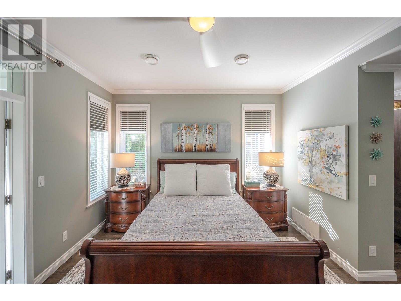 Welcome to this exceptional One of A Kind - Custom-Built Extended Burgundy—a 4 bed, 2.5 bath home with over $160K in upgrades (see customization list!). Thoughtfully designed and beautifully maintained by the original owner, this home has never been rented and is ideal for full-time living to fully appreciate all the details. Inside, you'll find gorgeous hardwood floors, beautiful custom kitchen cabinetry, oversized windows, custom lighting and tons of built-in storage. The main level offers a spacious primary suite, an additional bedroom/office, and access to the stunning 3-season porch with insulated ceiling, storm door, and upgraded windows. Upstairs features two more bedrooms, a full bath, and a versatile bonus space perfect for hobbies or a second lounge. Step outside into a serene, private oasis with mature landscaping, stamped concrete patio, and custom touches throughout the garage including storage cabinetry and canning kitchen. This home is truly one-of-a-kind—a must see to appreciate the upgrades and thoughtful details throughout! Access to boat slip if one wishes to purchase. The Cottages on Osoyoos Lake is a rare find with its lovely walking trails, kids playgrounds, large clubhouse, pools, hot tubs , off-leash dog area, and 500 ft of sandy beach all while in a secure and gated community. Make this your FOREVER HOME, SUMMER GET AWAY OR INCOME INVESTMENT PROPERTY. Rentals are allowed 5 days or longer. NO GST, NO PTT, NO EMPTY HOMES TAX, PREPAID LEASE. (id:2469)
