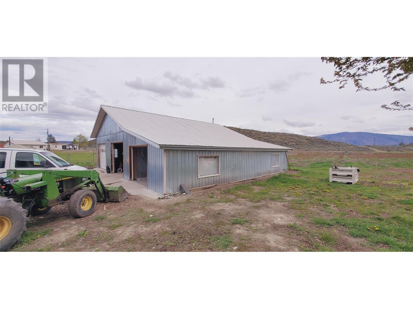 For those seeking a private oasis within a short drive (7 minutes) of downtown Osoyoos, this property offers a unique opportunity. This spacious rancher features 3 bedrooms plus a den and is situated on 5 acres of mostly flat and fenced land, including 3 acres of peaches. There is ample storage available for farm equipment or recreational vehicles. The property boasts a substantial workshop divided into two sections, measuring 30'x40' and 14'x40', both with durable metal siding and a metal roof. Additionally, there is a covered space on concrete, measuring 22'x33'. Pet owners will appreciate the 10'x10' insulated dog house. To arrange a showing, please contact your realtor today! (Also see Home MLS 10346631) (id:2469)
