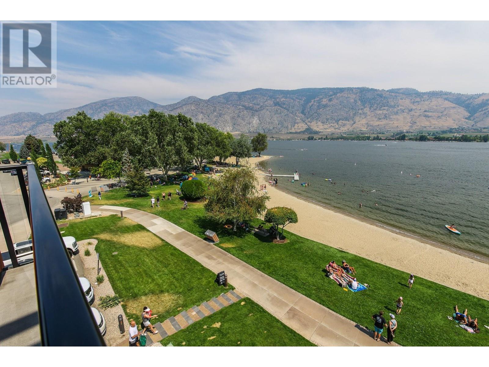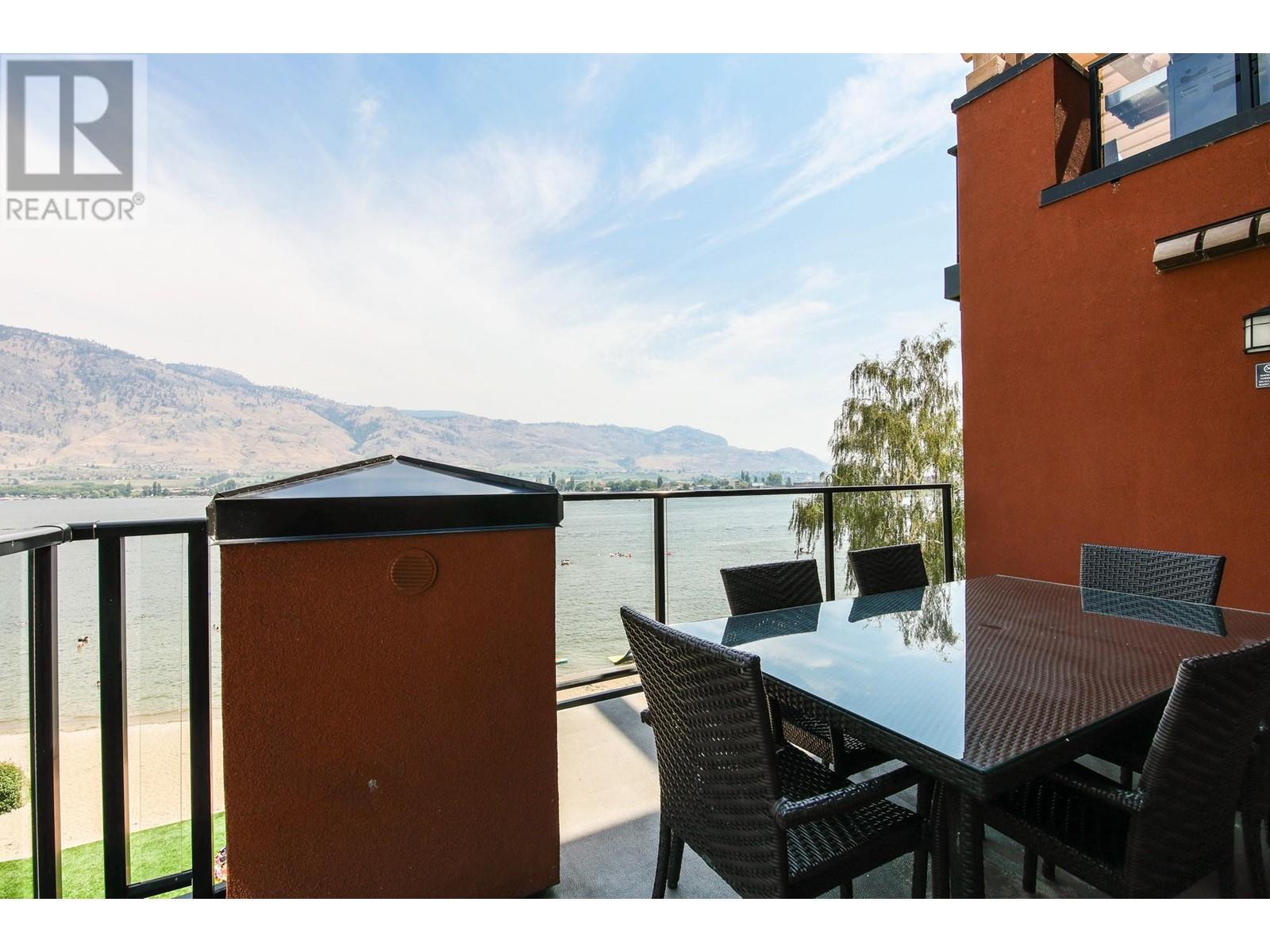 EXCEPTIONAL FIND! Rarely available spacious 2 bedroom corner suite with Osoyoos Lake and mountain views from almost every room and sundeck. Bright and airy with lots of light and windows. Large east facing sundeck for your sunny morning coffee and evening BBQs. Fully furnished with granite counter tops, quality furnishings, in suite laundry and a living room pull out to comfortably sleep 6. This is the ideal waterfront vacation resort with an on site spa, fine dining restaurant, large swimming pool with slide and hot tub. Located in down town Osoyoos on the beach with steps to shopping and wineries and golf courses are only minutes away. Great opportunity for revenue sharing with rental pool income to offset costs. Come and view this exceptional complex - seeing is believing., (id:2469)