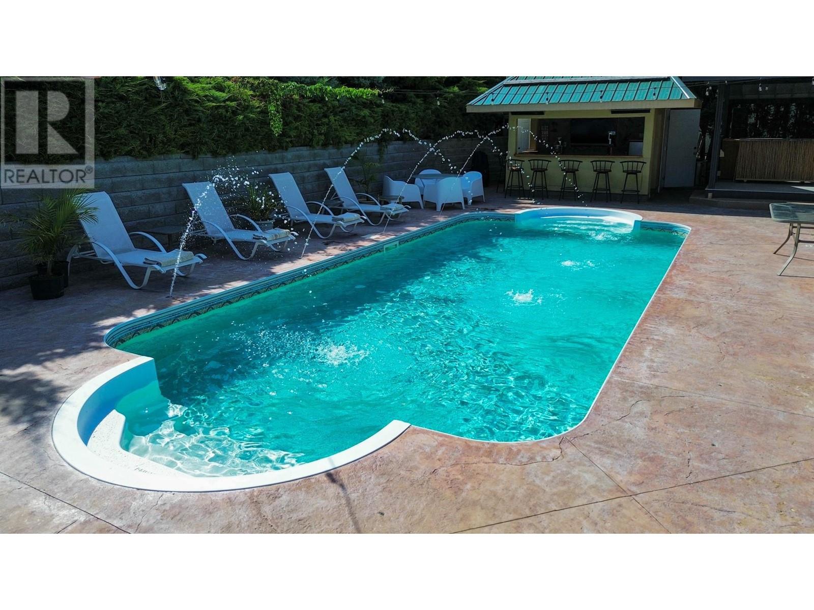 Lakeview home located on the Desirable East Bench of Osoyoos. Three bdrm, two bath home with a full in-law suite on the lower level. The home is fabulous for entertaining with a very private back yard, heated Saltwater Swimming pool, colored fibre optic lights and jets. There is also a tiki bar area with washroom, outdoor kitchen and large covered deck with spectacular lakeviews!! The home is freshly, painted with newer Furnace, hotwater tank and roof. New paved driveway with extra parking. Call for all the information! (id:2469)
