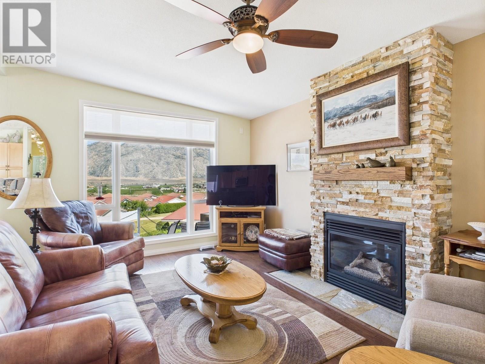 Panoramic Views of Osoyoos, Osoyoos Lake and the Mountains from this beautiful home in Casitas del Sol. This one level home has a very Inviting Bright Open Floor Plan. Great home for Entertaining. Living Room with Gas Fireplace, Deck off the Kitchen/Dining area to enjoy morning views with coffee or Twinkling Lights at Night. There is 2 bedrooms, the Primary is a great size, with Large Double Sink and Double Mirror Ensuite as well as good sized Walk in Closet. Full main bathroom beside 2nd bedroom for guests. Large laundry room as you come in from Garage. Newer Whirlpool Kitchen Appliances-Fridge, Stove and Microwave (2022) Carrier Air Conditioner and Furnace ( 2022) Seamless Eavestrough System (2022) Reverse Osmosis (2021)Garage is 20 x 15 approximately. Wheelchair Accessible. This home is immaculate and has been well maintained !! A must see, a truly beautiful place to call Home!! (id:2469)