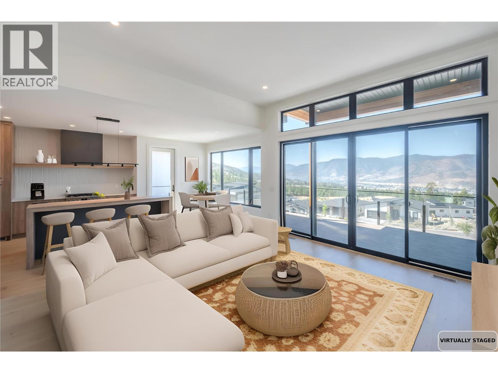 A masterclass in refined living, this extraordinary residence seamlessly blends luxury, function, and breathtaking natural beauty. Perched to capture sweeping lake, city, and mountain vistas, the home offers nearly 800 sq ft of covered outdoor space—an idyllic setting for sophisticated entertaining. Inside, the chef’s kitchen is a statement of elegance with quartz marble surfaces, bespoke bar-height wood island, sleek Bosch appliances, a striking tile backsplash, and a built-in wine fridge. Engineered oak hardwood graces the main living areas, while the primary suite offers a serene retreat complete with a spa-inspired ensuite featuring heated porcelain tile. A dedicated home office enhances the main level, along with a beautifully crafted laundry/mudroom with direct access to the double garage. The walkout lower level reveals two spacious bedrooms, a full bath, and an inviting rec room, while a private, legal one-bedroom suite—appointed with quartz counters and chic white subway tile—provides the perfect blend of style and versatility. Every element of this home is thoughtfully curated to elevate everyday living to an art form. (id:2469)