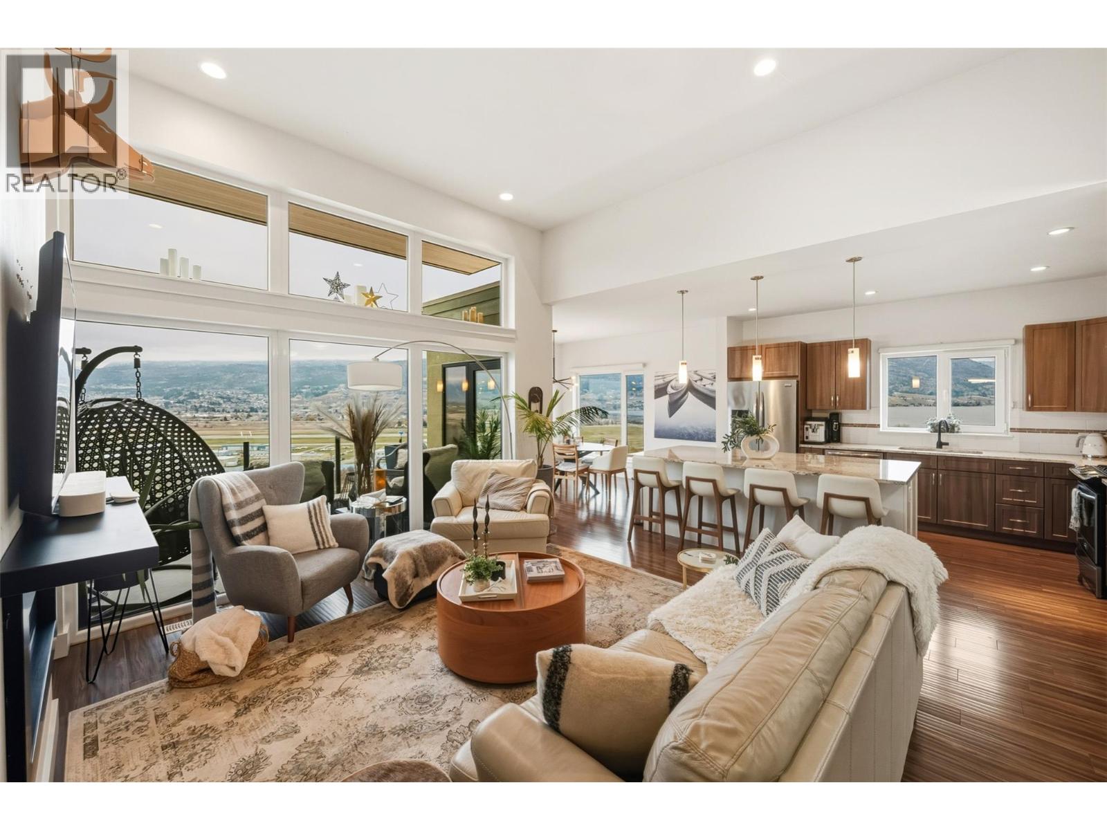 CONTINGENT. Oh My! The Views! Enjoy the panoramic Skaha Lake and City of Penticton views from this gorgeous modern contemporary home with a stunning location within Skaha Hills. This 4 bedroom, 3 bathroom home plus den is sure to please the entire family. The Main Floor features an open concept kitchen, living and dining area, spacious primary room with walk in closets and a 4 pc bath with walk in shower, the second bedroom, the main 4pc bath and a den/office with a stunning view. Downstairs you'll find 2 more bedrooms, another 4pc bath, the large utility/storage room and a spacious open concept living room/rec room. The downstairs could quite easily be converted into a private suite or even an Airbnb for added income. It's the large decks that have made Skaha Hills famous and this one is spectacular. The panoramic views of the city, the lake, the mountains and the coming and goings at the airport allow for hours of sightseeing. No view day or night ever seems to be the same! These well built Greyback homes are Provincial Property Tax free and have a secure 99 year prepaid lease. Skaha Hills features resort amenities; pool and hot tub, weight room and gym, tennis and pickle ball courts, Play Winery, hiking and biking trails and our own Dog Park all for a low HOA fee of $196 a month. Consider joining the Hill and basking in all the Okanagan Lifestyle can throw your way. Book your own private showing today. (id:2469)
