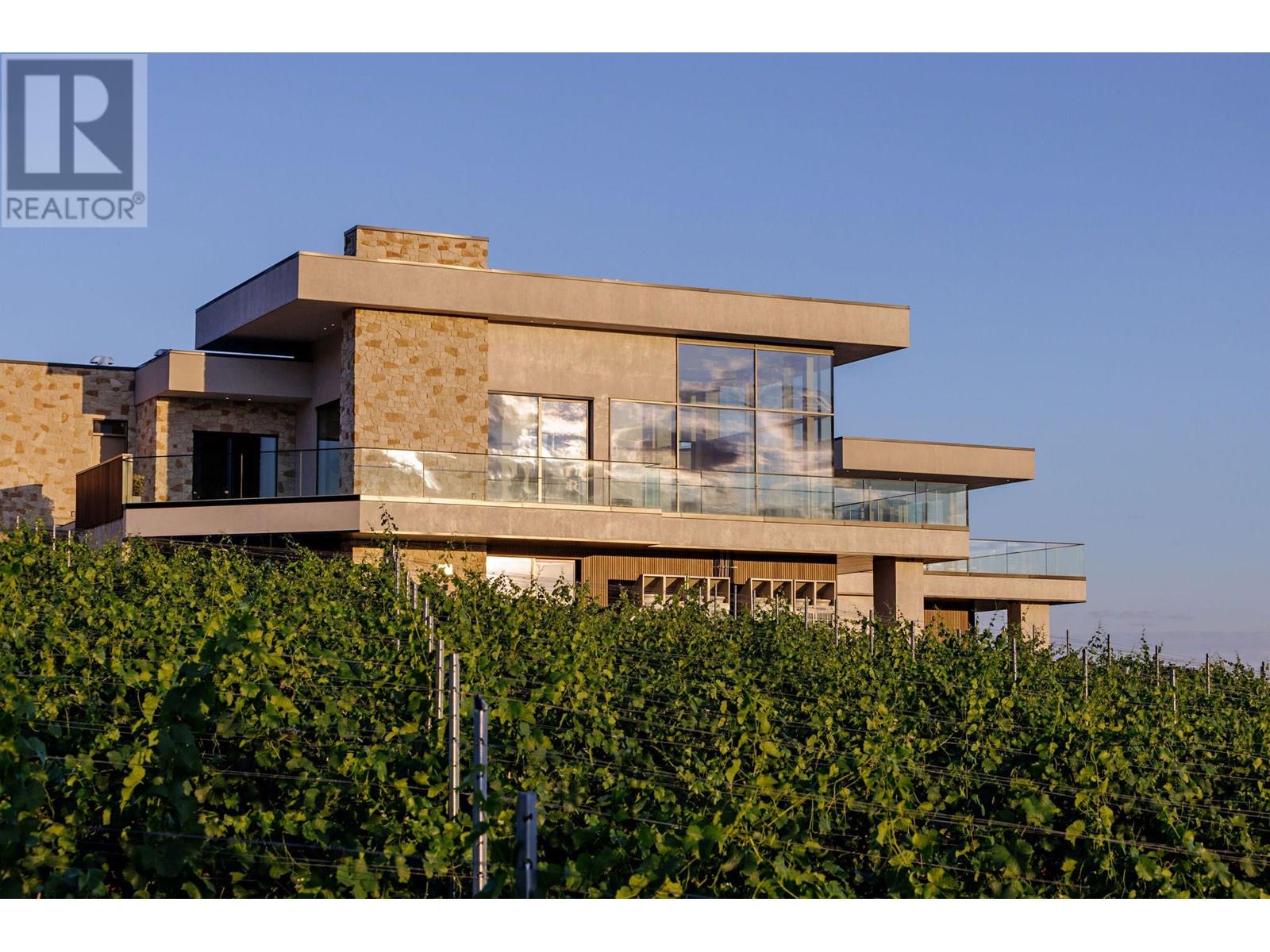 Discover a masterpiece poised above Okanagan Lake—an extraordinary estate where no luxury is spared. This home epitomizes refined living, offering a seamless blend of elegance, functionality, and natural beauty. Step through the grand entrance into an atmosphere of sophistication. Expansive wrap-around decks showcase breathtaking lake views, while exquisite stucco and natural rock walls create harmony with the stunning landscape. The gourmet kitchen features professional-grade appliances, a butler’s pantry, and an adjacent bar, perfect for effortless entertaining. The dining and great rooms frame awe-inspiring views of Okanagan Lake and vineyards stretching north to south. A luxurious primary suite includes a custom dressing room, his-and-hers ensuites, and a private deck. Adjoining, a world-class spa offers a steam shower, infrared sauna, and relaxation patio. A sumptuous guest suite completes the main level. Descend the spiral staircase to a lower level designed for entertainment and relaxation, featuring media and games rooms, a lounge, and fitness area. Three additional guest suites and a 7-capacity children’s bunkroom ensure space for family and friends. This 11 acre estate, with 4.7 acres planted in Pinot Noir, provides the perfect luxury backdrop for the viticulturist. A bluffside guest cottage and private boat dock complete this remarkable property. 1675 Midland Road - a signature Okanagan property, where privacy and luxury is a way of life. Some photos virtual. (id:2469)