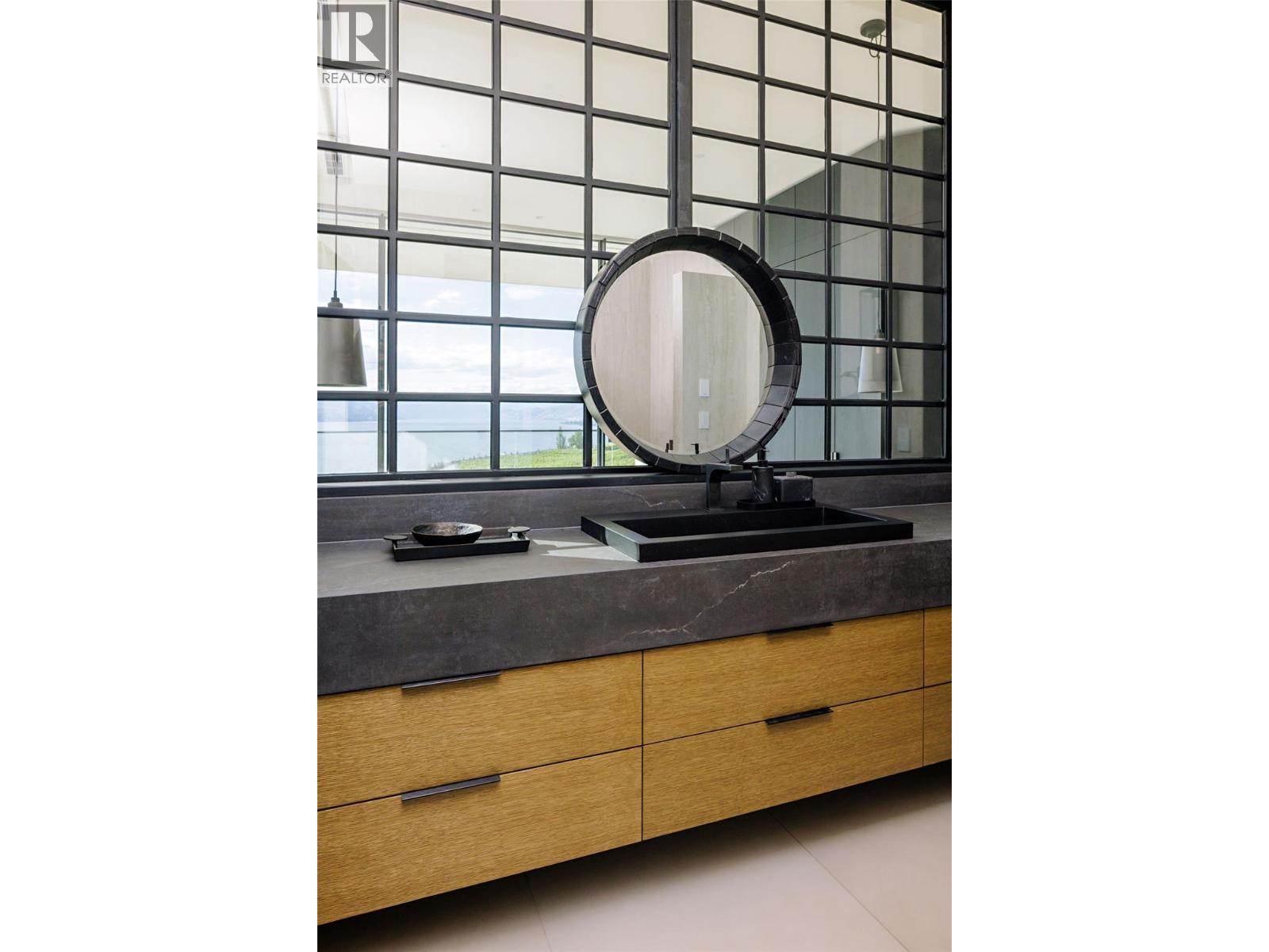 Discover a masterpiece poised above Okanagan Lake—an extraordinary estate where no luxury is spared. This home epitomizes refined living, offering a seamless blend of elegance, functionality, and natural beauty. Step through the grand entrance into an atmosphere of sophistication. Expansive wrap-around decks showcase breathtaking lake views, while exquisite stucco and natural rock walls create harmony with the stunning landscape. The gourmet kitchen features professional-grade appliances, a butler’s pantry, and an adjacent bar, perfect for effortless entertaining. The dining and great rooms frame awe-inspiring views of Okanagan Lake and vineyards stretching north to south. A luxurious primary suite includes a custom dressing room, his-and-hers ensuites, and a private deck. Adjoining, a world-class spa offers a steam shower, infrared sauna, and relaxation patio. A sumptuous guest suite completes the main level. Descend the spiral staircase to a lower level designed for entertainment and relaxation, featuring media and games rooms, a lounge, and fitness area. Three additional guest suites and a 7-capacity children’s bunkroom ensure space for family and friends. This 11 acre estate, with 4.7 acres planted in Pinot Noir, provides the perfect luxury backdrop for the viticulturist. A bluffside guest cottage and private boat dock complete this remarkable property. 1675 Midland Road - a signature Okanagan property, where privacy and luxury is a way of life. Some photos virtual. (id:2469)