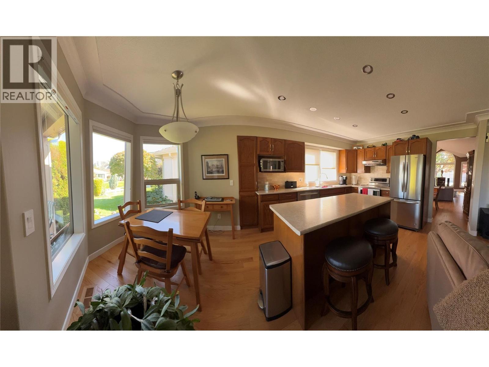 Welcome to Sandbridge, one of Penticton’s most sought-after gated communities, celebrated for its meandering waterways, lush landscaping, and resort-style clubhouse with pool and hot tub. Perfectly situated near Skaha Lake, the Seniors Centre, local shops, and scenic walking trails, Sandbridge offers an exceptional blend of comfort, convenience, and community. This beautiful rancher-style home is truly move-in ready. A double-car garage leads to a welcoming foyer and spacious laundry/mudroom with plenty of storage. The open kitchen and dining area flow seamlessly to the private patio, where you can relax amid mature landscaping, mountain views, and the soothing sounds of the water features. A thoughtfully opened wall between the kitchen and living area creates a modern, airy layout ideal for entertaining and everyday living. The home features a large guest bedroom and full main bathroom, plus a generous primary suite complete with walk-in closet and 5-piece ensuite. Move in and enjoy the friendly, well-run Sandbridge community — all within walking distance to shops, parks, the beach, and local dining. A wonderful place to call home — offering the perfect balance of lifestyle, location, and low-maintenance living. (id:2469)