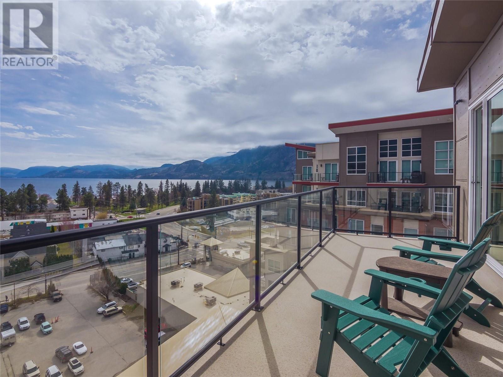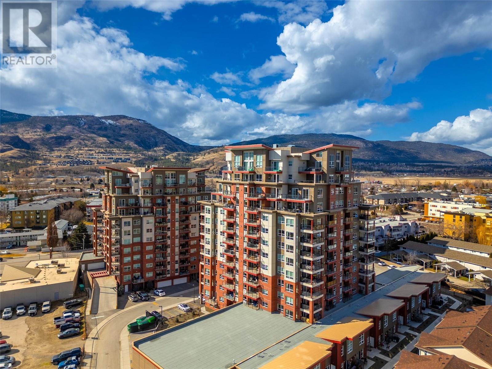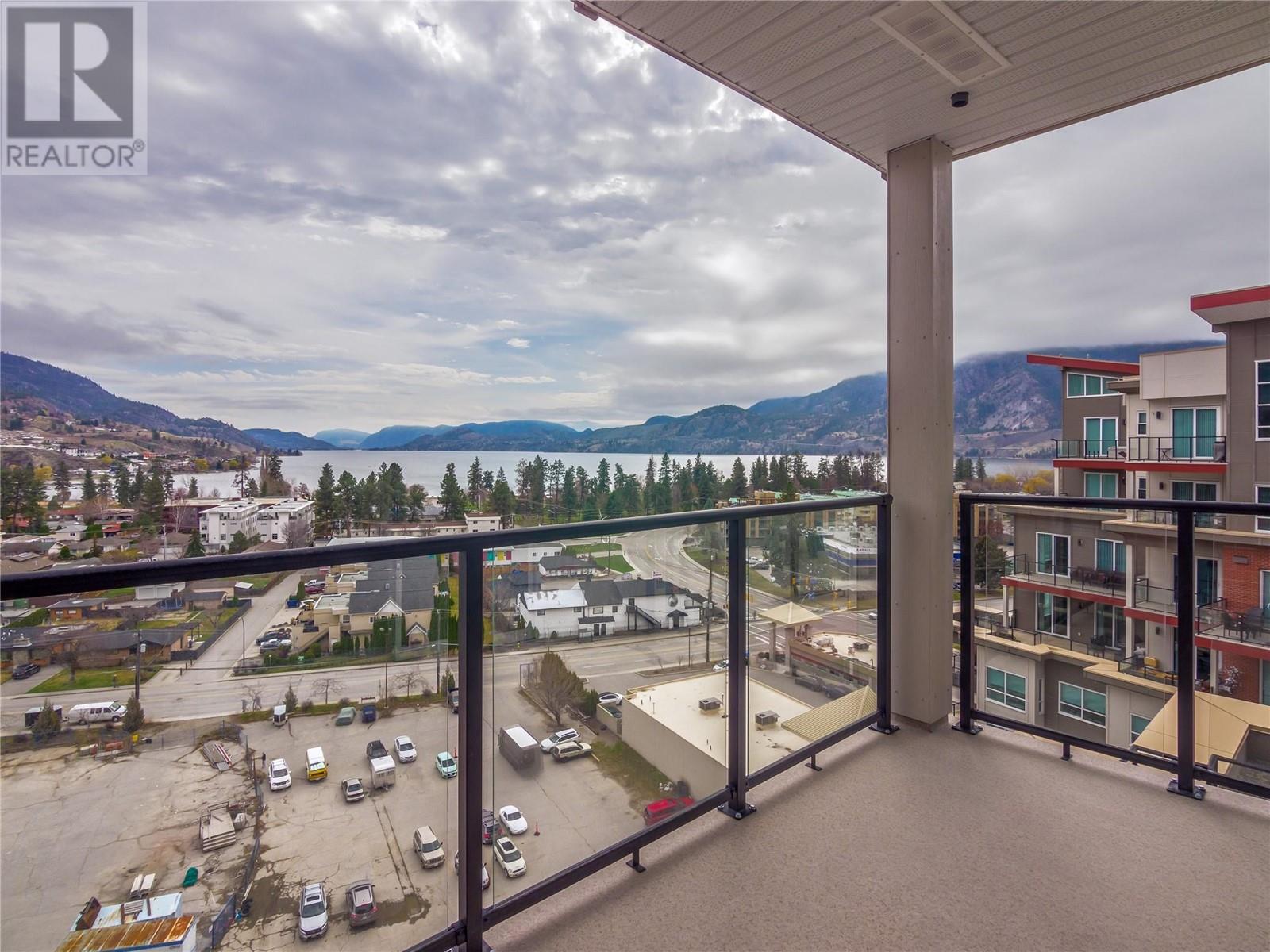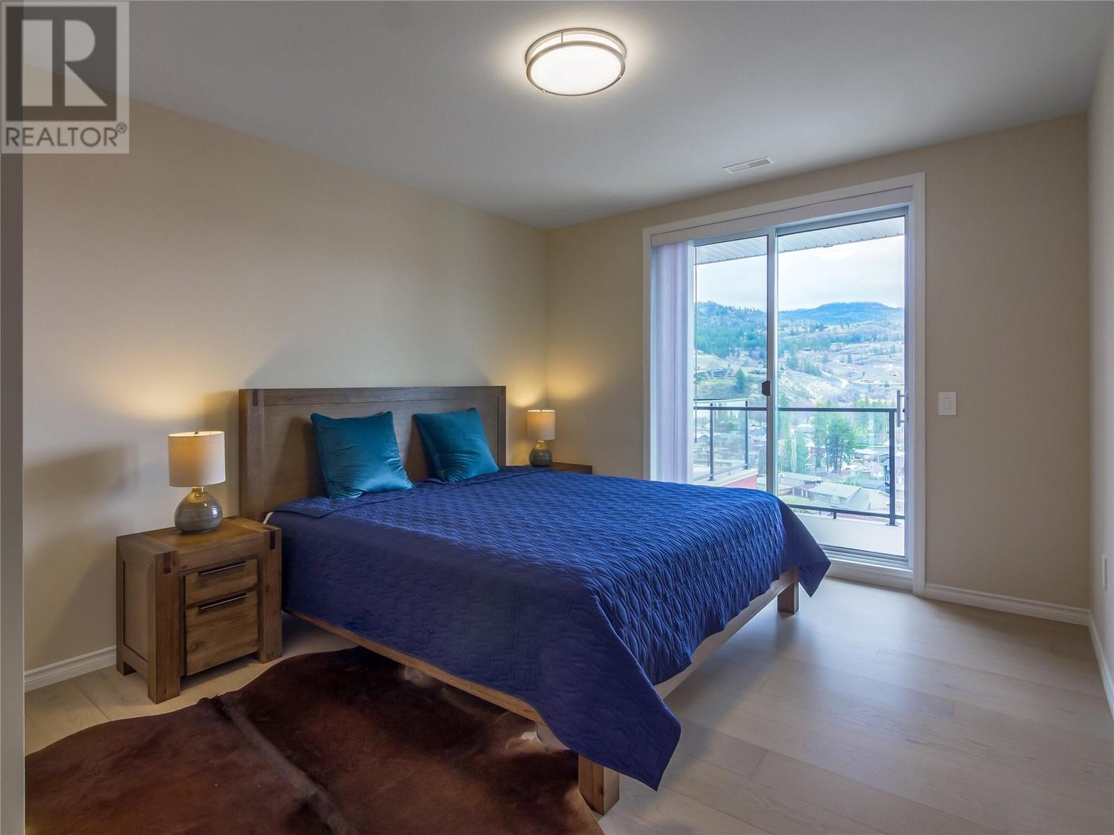 One of Skaha Lake Towers most prime units, a South West corner with unsurpassed lake views in Phase 3! This upgraded & customized unit is 1379sqft with 2 bedrooms 2 bathrooms + a den, with 2 gorgeous decks to enjoy the views from. The expansive open great room features engineered hardwood throughout, 2 sets of patio doors out to the huge South facing deck, a feature gas fireplace with modern tile, 9’ ceilings & a layout that offers great flexible options for furniture. This upgraded kitchen has sleek wood cabinets to the ceiling, is an extended size adding more cabinets & a built in microwave, has expansive counter space with a stunning huge peninsula to entertain at, quartz counters, & stainless steel appliances top it off. The customisations continue in the primary bathroom with a custom tile shower, hardwood floors run throughout all the rooms including the spacious guest bedroom & the dedicated den/home office. The primary bedroom enjoys its own deck, ensuite with double sinks & a walk in closet. This energy efficient unit has a gas hot water on demand unit, forced air heat & central AC. The suite has a storage unit on the same floor, a secure parkade parking spot, + the building has a dedicated bike locker room, common rec room & patio, & more. Enjoy living a short stroll to Skaha Lake with its gorgeous beach, parks, & walking paths. Plus enjoy conveniences nearby like Kojo sushi, the bakery and pizza shop, spinco, the Dragon Boat pub and more. This one is a must see! (id:2469)