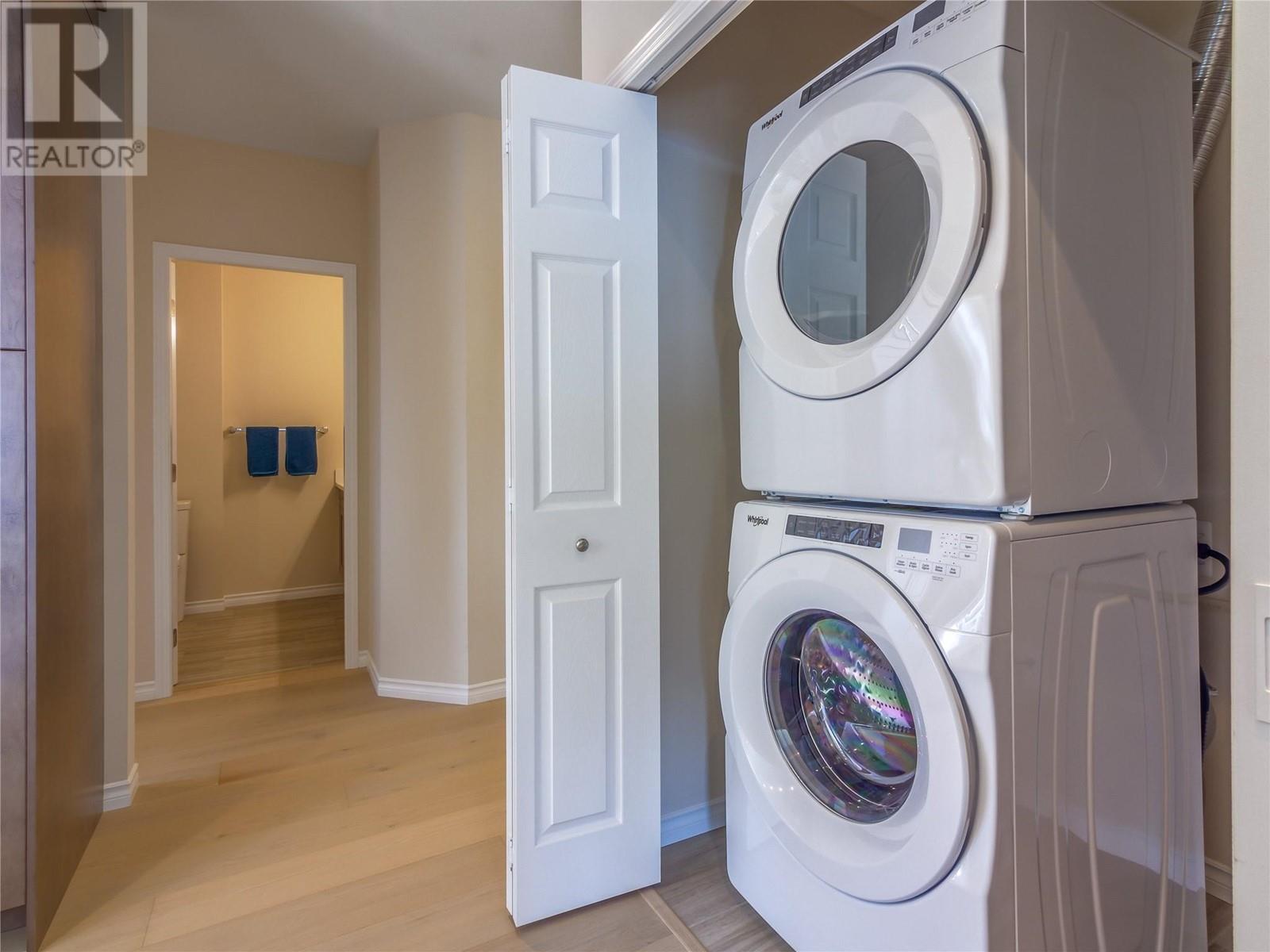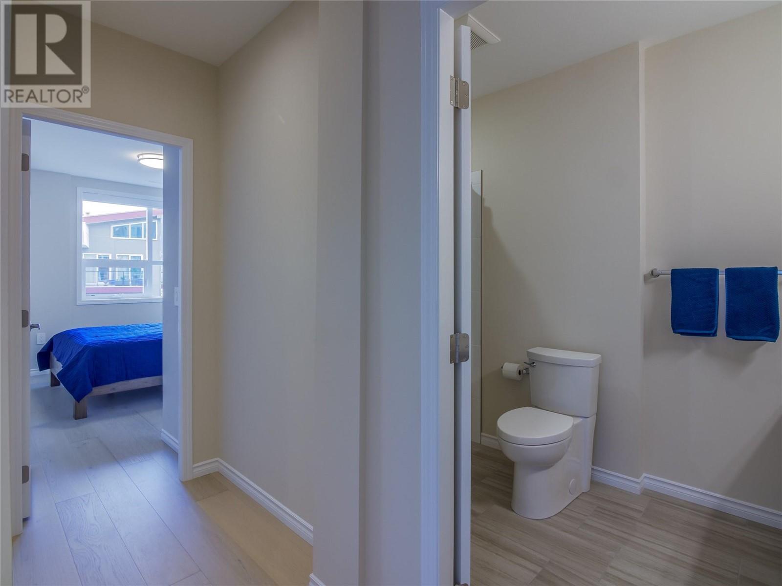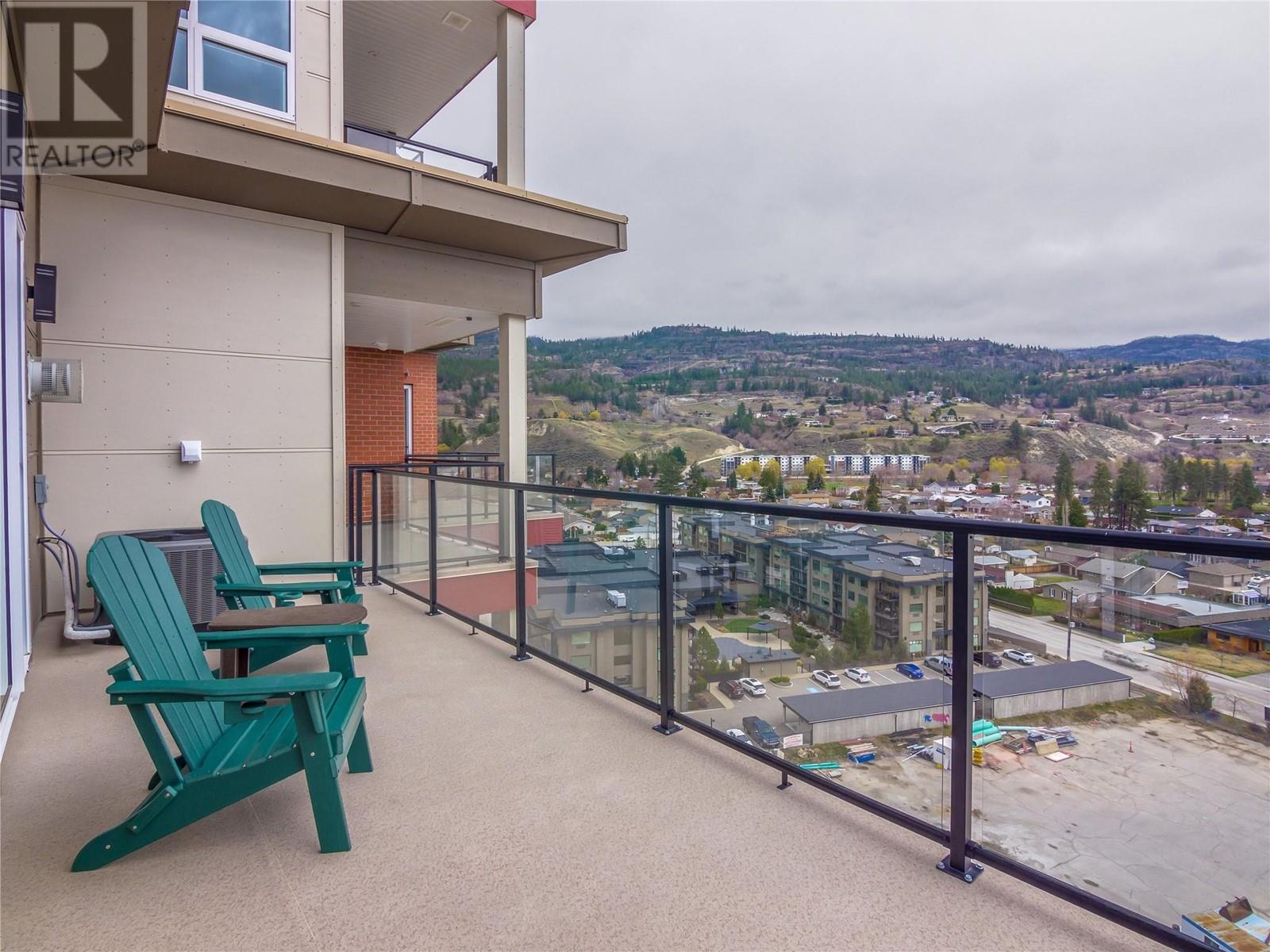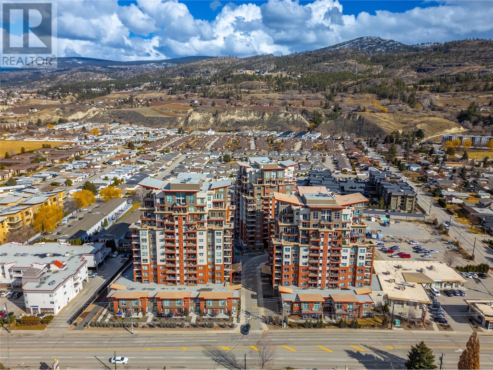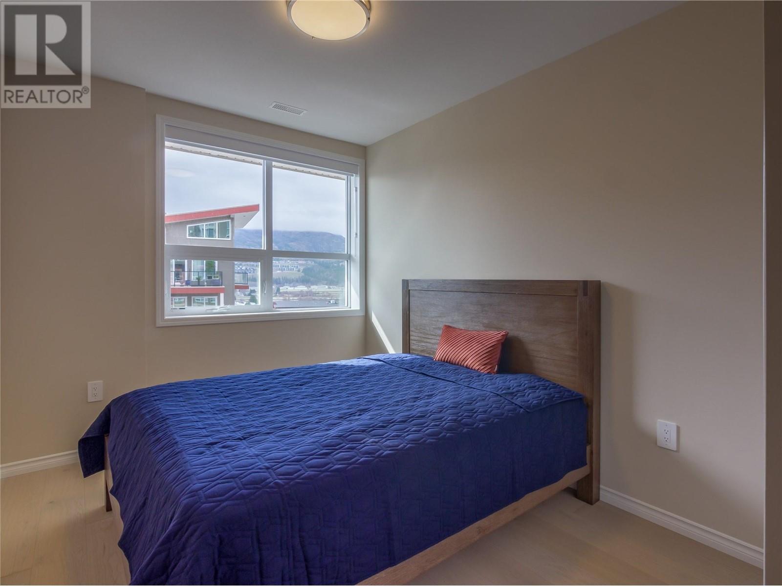 One of Skaha Lake Towers most prime units, a South West corner with unsurpassed lake views in Phase 3! This upgraded & customized unit is 1379sqft with 2 bedrooms 2 bathrooms + a den, with 2 gorgeous decks to enjoy the views from. The expansive open great room features engineered hardwood throughout, 2 sets of patio doors out to the huge South facing deck, a feature gas fireplace with modern tile, 9’ ceilings & a layout that offers great flexible options for furniture. This upgraded kitchen has sleek wood cabinets to the ceiling, is an extended size adding more cabinets & a built in microwave, has expansive counter space with a stunning huge peninsula to entertain at, quartz counters, & stainless steel appliances top it off. The customisations continue in the primary bathroom with a custom tile shower, hardwood floors run throughout all the rooms including the spacious guest bedroom & the dedicated den/home office. The primary bedroom enjoys its own deck, ensuite with double sinks & a walk in closet. This energy efficient unit has a gas hot water on demand unit, forced air heat & central AC. The suite has a storage unit on the same floor, a secure parkade parking spot, + the building has a dedicated bike locker room, common rec room & patio, & more. Enjoy living a short stroll to Skaha Lake with its gorgeous beach, parks, & walking paths. Plus enjoy conveniences nearby like Kojo sushi, the bakery and pizza shop, spinco, the Dragon Boat pub and more. This one is a must see! (id:2469)
