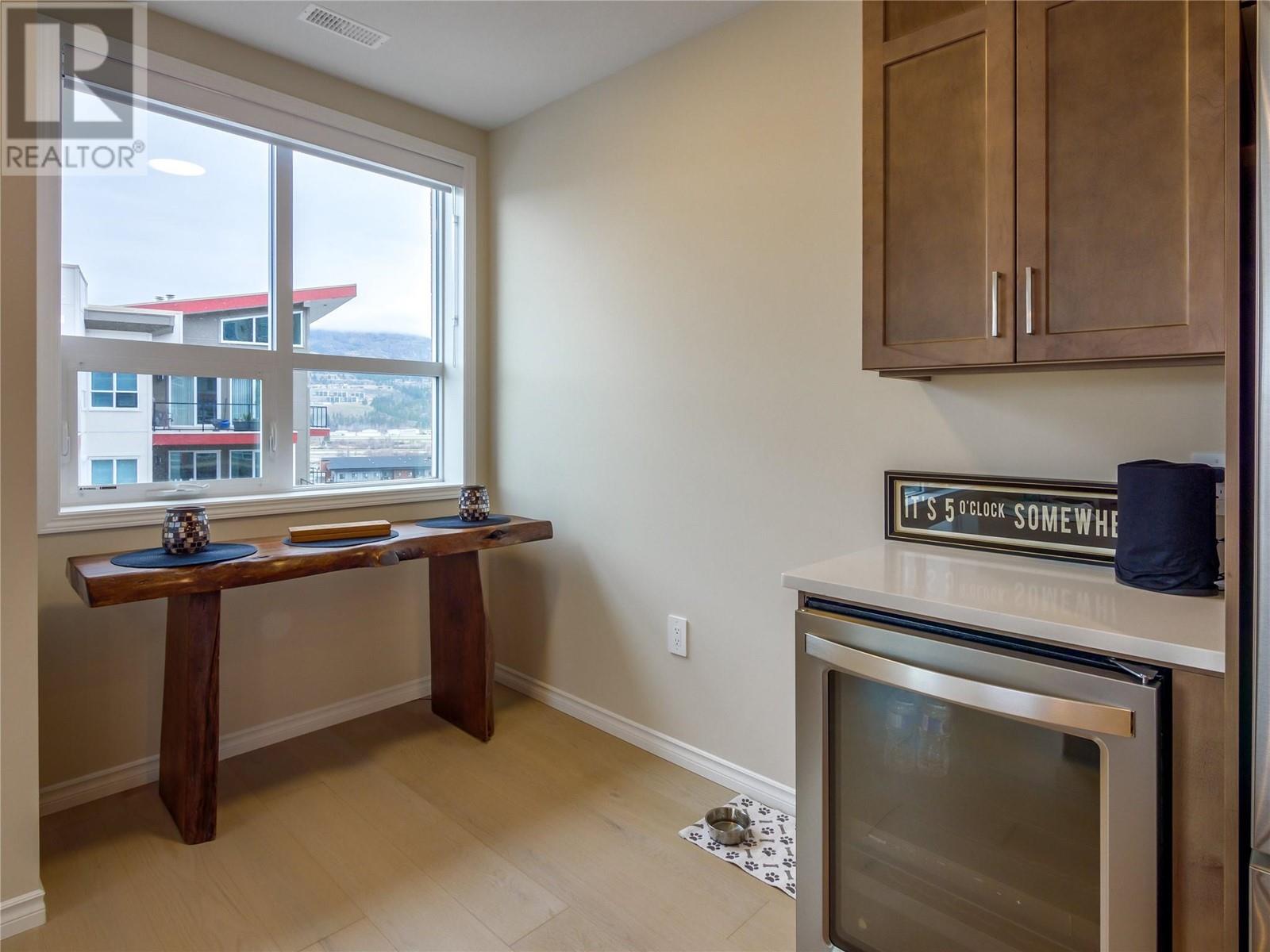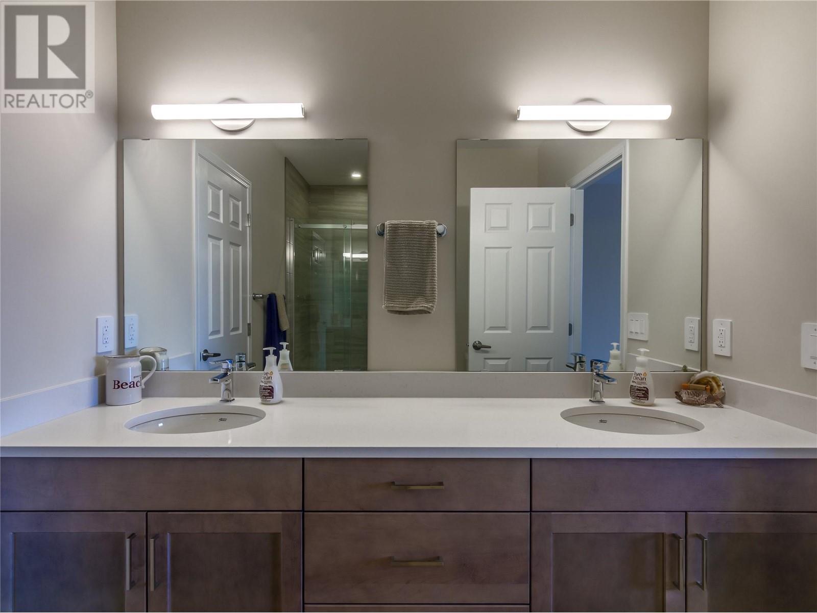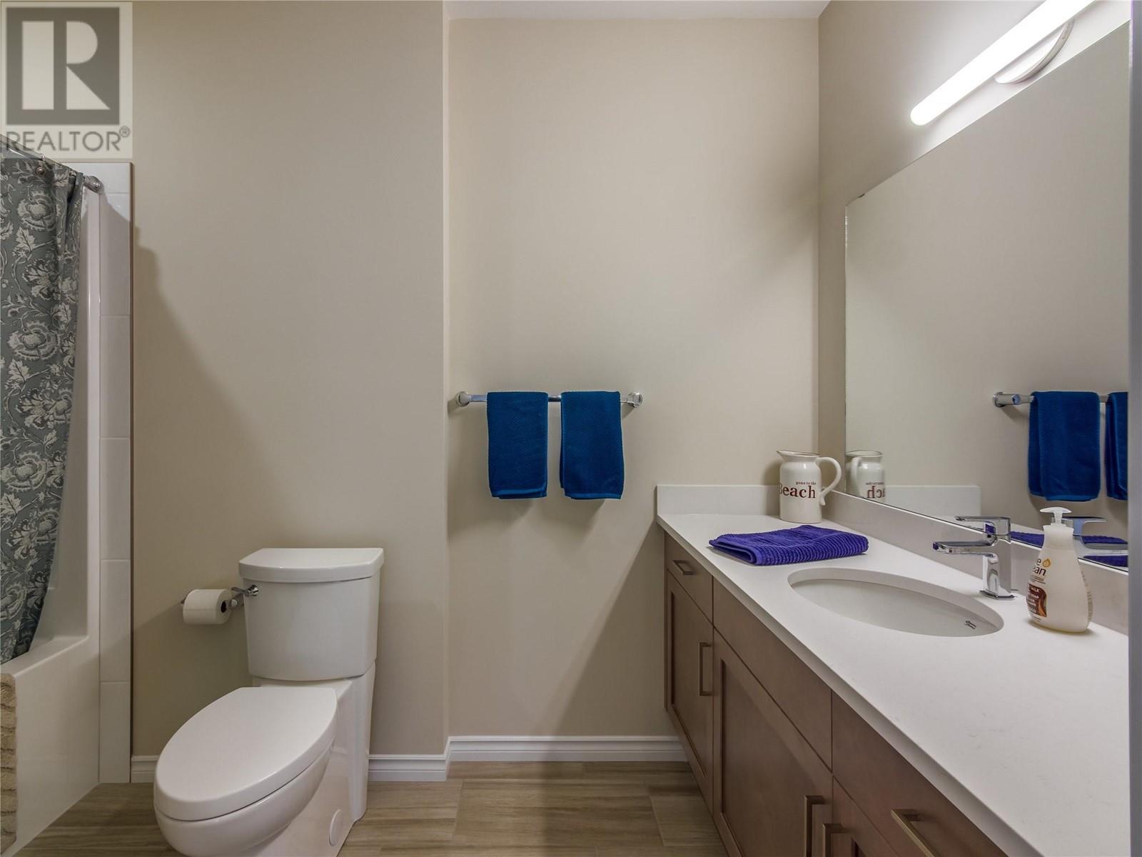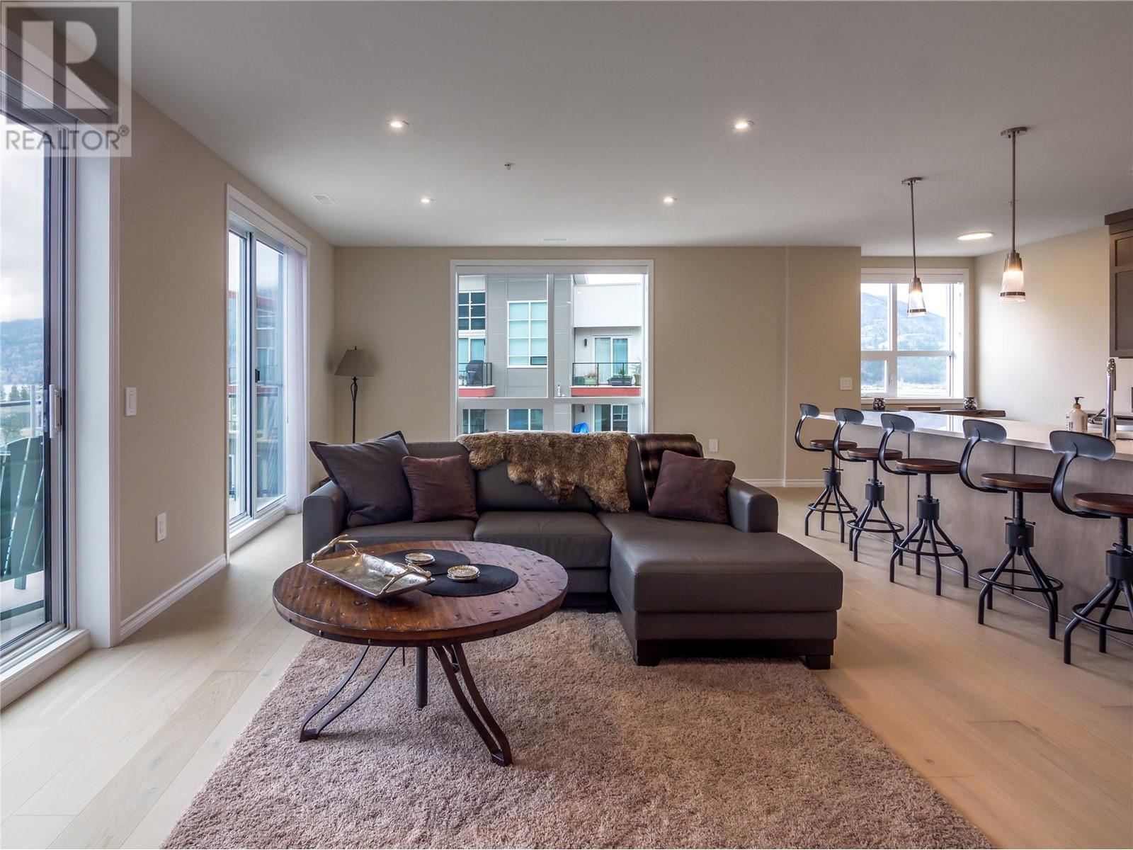 One of Skaha Lake Towers most prime units, a South West corner with unsurpassed lake views in Phase 3! This upgraded & customized unit is 1379sqft with 2 bedrooms 2 bathrooms + a den, with 2 gorgeous decks to enjoy the views from. The expansive open great room features engineered hardwood throughout, 2 sets of patio doors out to the huge South facing deck, a feature gas fireplace with modern tile, 9’ ceilings & a layout that offers great flexible options for furniture. This upgraded kitchen has sleek wood cabinets to the ceiling, is an extended size adding more cabinets & a built in microwave, has expansive counter space with a stunning huge peninsula to entertain at, quartz counters, & stainless steel appliances top it off. The customisations continue in the primary bathroom with a custom tile shower, hardwood floors run throughout all the rooms including the spacious guest bedroom & the dedicated den/home office. The primary bedroom enjoys its own deck, ensuite with double sinks & a walk in closet. This energy efficient unit has a gas hot water on demand unit, forced air heat & central AC. The suite has a storage unit on the same floor, a secure parkade parking spot, + the building has a dedicated bike locker room, common rec room & patio, & more. Enjoy living a short stroll to Skaha Lake with its gorgeous beach, parks, & walking paths. Plus enjoy conveniences nearby like Kojo sushi, the bakery and pizza shop, spinco, the Dragon Boat pub and more. This one is a must see! (id:2469)