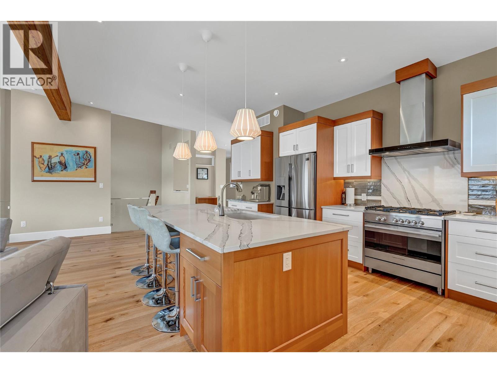 Perched high above the sparkling waters of Skaha Lake, this stunning 4-bedroom, 4.5-bathroom masterpiece offers over 3,000 sq ft of refined living space, built in 2018 with meticulous attention to detail. Designed to capture the essence of luxury Okanagan living, every angle of this home showcases unobstructed, sweeping west and south-facing views that will leave you breathless. A soaring entryway welcomes you, setting the tone for the open-concept design and contemporary sophistication that flows throughout. The main living area is an entertainer’s dream, featuring a wall of floor-to-ceiling windows and Euroline doors that flood the space with natural light while seamlessly blending indoor and outdoor living. Step out onto the expansive main balcony – the ultimate vantage point to watch the sun sink behind the hills and paint the lake with evening colours. The chef-inspired kitchen is as beautiful as it is functional, featuring high-end appliances, sleek cabinetry, and an oversized island perfect for hosting. Each of the bedrooms offers a private sanctuary, complete with its own ensuite bathroom for ultimate comfort and privacy. The primary suite is a true retreat – complete with its own private balcony, a lavish 5-piece ensuite featuring a deep soaker tub and a large shower. The home’s versatile design offers the potential for a self-contained main floor suite, ideal for guests, extended family, or as an income opportunity (id:2469)