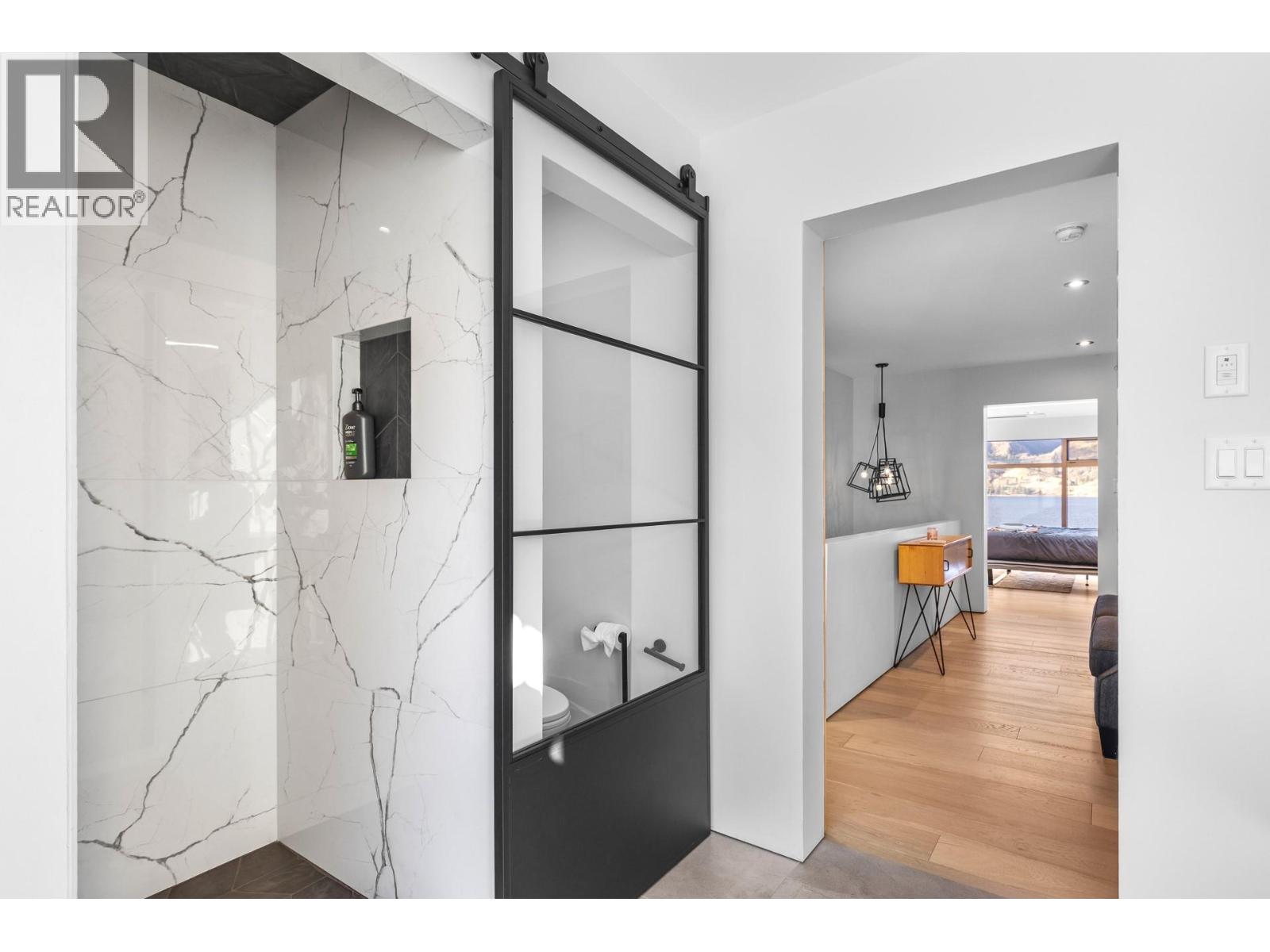 This stunning 4-bedroom, 3.5-bath lakefront Net Zero home blends sustainable design with timeless high-end finishes and exceptional views, delivering a true year-round lakeside lifestyle. Wake up to glassy morning water, paddle or swim from your dock, spend the day boating and hosting friends, then unwind with sunset dinners and stargazing evenings. Custom architectural details include a European glass front door, glass floor feature, porcelain tile, white oak wire-brushed hardwood flooring, Italian wallpaper, steel-framed glass sliders, white oak barn doors, and integrated LED lighting. The chef’s kitchen features custom white oak cabinetry with integrated handles, Dekton recycled porcelain countertops from Spain, roll-out pantry drawers, soft-close and touch-latch hardware, under-cabinet lighting, automatic drawer microwave, double-drawer dishwasher, concealed hood fan, and integrated panel-front Fisher & Paykel appliances with custom “Nest” carved detailing. The lower level offers a legal, licensed 1-bedroom suite with office/den currently used as a bedroom that is ideal for short-term rental, guests, or extended family. Built with green, zero off-gassing materials, airtight construction, enhanced insulation, solar panels, and a custom staircase. Complete the experience with an 80-foot dock, wake-boat lift, storage for all your lake toys and effortless waterfront entertaining all summer long, with easy access to beaches, dining, wineries and everyday amenities nearby. (id:2469)