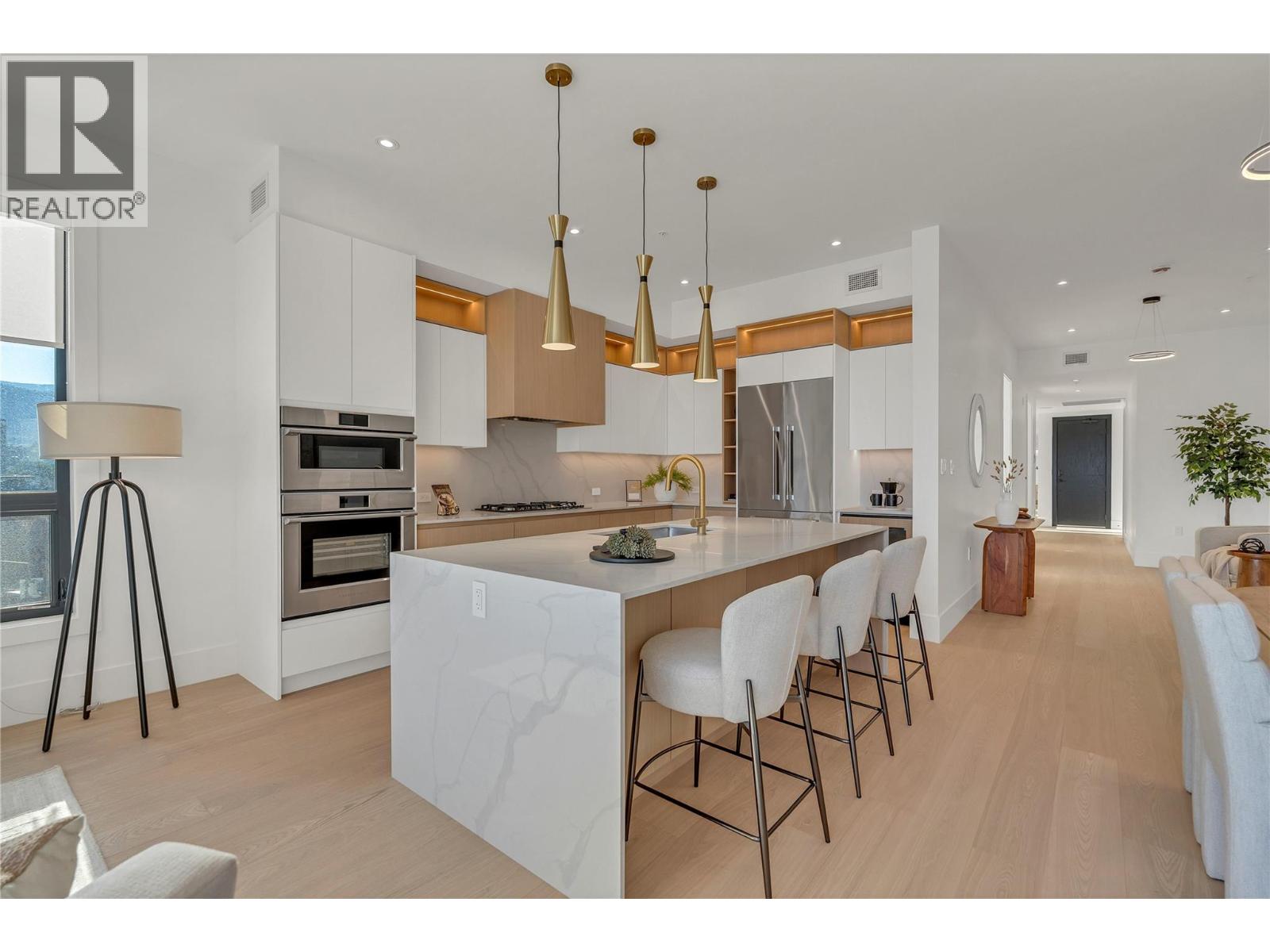 Live your best life at Legacy on Lakeshore, where luxury, serenity, and nature are seamlessly harmonized with an indoor-outdoor living style that is second to none. Located across from the shores of majestic Okanagan Lake, the breathtaking views are yours to soak in as life flows from luxury to lakefront through your 17 foot wide sliding balcony door. For the chef, there is a large kitchen with a full complement of Fisher & Paykel appliances, gas stove, a waterfall island, quartz countertops, and a wine cooler. This 3 bedroom home offers 2 beautifully appointed bedrooms with en-suites plus a third bedroom and full main area bathroom. Carefully crafted to maintain a single-family home feeling, create your own sanctuary with 10 foot high ceilings, fireplace, luxury finishes, and natural elegance. On the upper level, enjoy your own private 1547 sqft rooftop patio with panoramic views of the surrounding mountains and lake and outdoor shower, fully prepped for an outdoor kitchen, hot tub, stereo, with 2 natural gas hookups. Whether you are looking for a year round home, or a place to escape and unwind, Legacy puts you in the heart of the South Okanagan Valley and everything it has to offer. With everything Penticton has to offer at its doorstep, Legacy on Lakeshore is more than a home, it’s a lifestyle. All measurements approximate. GST included until January 31 2026. Contact your Realtor® or the listing agent today to book your private showing of this amazing home! (id:2469)