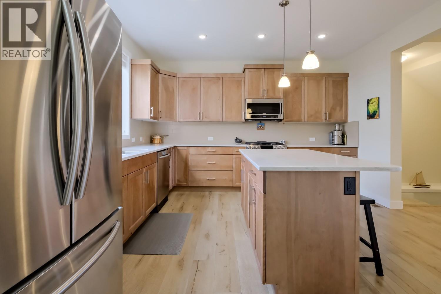 This 4-bedroom, 3,036 sq ft home with a detached double garage offers the perfect balance of affordable luxury and flexibility, complete with a 1-bedroom mortgage-helper suite. The open and bright main floor features a light, neutral colour palette and a thoughtful layout designed for comfortable family living. The home is well-appointed with quartz countertops, light-coloured cabinetry, large windows, and a gas fireplace with stone surround and mantle. Additional features include generous storage and a spacious coat closet, LED lighting along the exterior pavers, privacy wood shutters, outdoor roll-down blinds, and a large covered veranda with a natural gas bbq connection—ideal for enjoying the outdoors year-round. Upstairs, you’ll find all three bedrooms conveniently located on the same level, along with the laundry room. The spacious primary bedroom overlooks a private natural area, creating a peaceful retreat. The full basement includes a recreation room for the main home, plus a fully self-contained legal one-bedroom suite with its own laundry, private entrance, and a designated surface parking space. The suite offers excellent flexibility—ideal for Airbnb use, long-term rental income, or accommodating extended family. Outside, enjoy a private, beautifully landscaped backyard and the added convenience of a detached double garage with 220 volt & 100 amp panel to service 2 electric vehicles or for a shop. (id:2469)