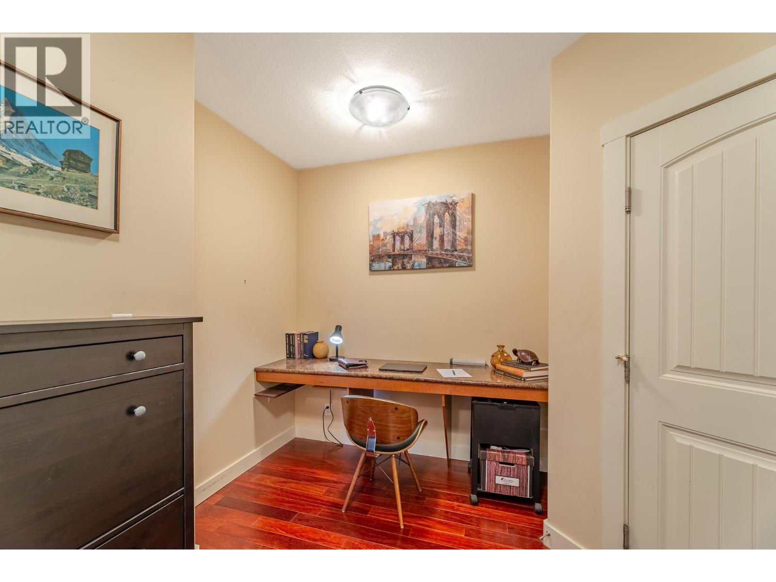 Welcome to Victoria Place! This home features a fabulous northeast facing second floor corner condo in the heart of downtown Summerland, offering exceptional walkability to shops, cafes, restaurants, and amenities. The bright open concept floor plan includes 2 bedrooms and 2 full bathrooms with excellent separation, ideal for full time living or a lock and leave lifestyle. The kitchen includes granite countertops, updated stainless steel appliances, and island seating, flowing seamlessly into the living and dining areas. Highlights include 9 foot ceilings, engineered hardwood flooring, in-floor radiant heat, ductless cooling, and a cozy electric fireplace. Enjoy the spacious wrap around entertainment deck, plus 1 secured underground parking stall and storage locker. No age restrictions; rentals and pets allowed with minor restrictions plus low strata fees! (id:2469)