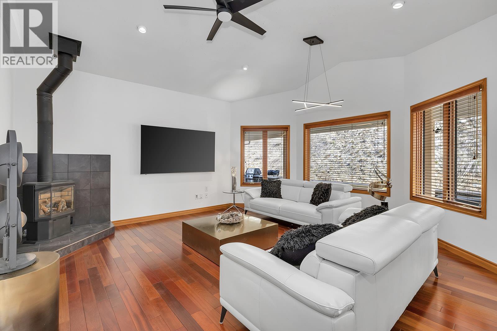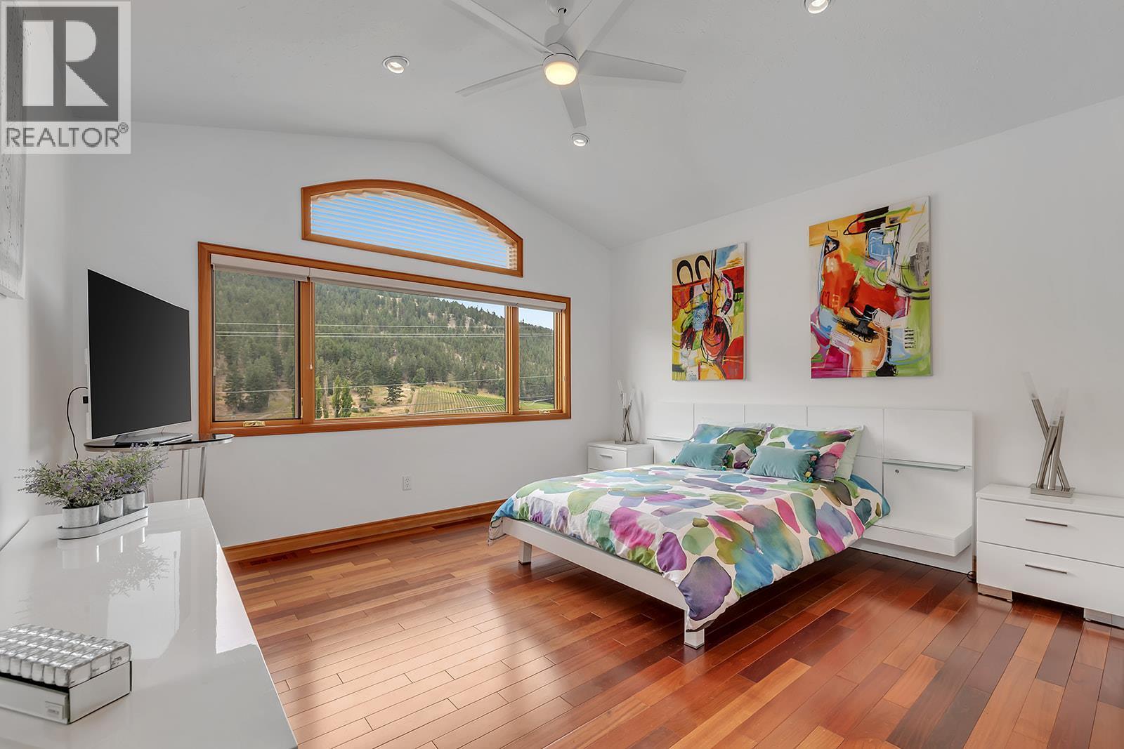 Experience peaceful and elegant living in Summerland's Garnet Valley. This charming gated hillside property spans over 2 acres, offering over 3300 sq.ft. of meticulously crafted and recently renovated living space. Beautiful hardwood flooring accents the spacious and airy interior, adorned with vaulted ceilings and expansive windows that flood the space with natural light, creating an inviting atmosphere. The primary suite boasts a generously sized walk-in closet, a modern and sophisticated ensuite bathroom, and a convenient laundry chute. The gourmet kitchen is large, offering modern appliances, sprawling granite counters, a built-in wine rack, and an abundance of cupboard space. Entertainment awaits in the home theatre downstairs, adjacent to the laundry room, boasting added functionality with a sink and a second fridge, ensuring practicality. Throughout the home, discerning touches such as a gas fireplace, sky-lighting, upgraded lighting fixtures, and timeless solid wood trim elevate the ambiance, creating an atmosphere of refined comfort that resonates throughout every corner. Outside, the allure continues with stunning surroundings that offer a picturesque backdrop for outdoor relaxation and entertainment. Ample parking is provided with an oversized double garage and extra driveway space. Seize the opportunity to make this your Okanagan rural dream home, just minutes away from amenities. Simply move in and enjoy! (id:2469)