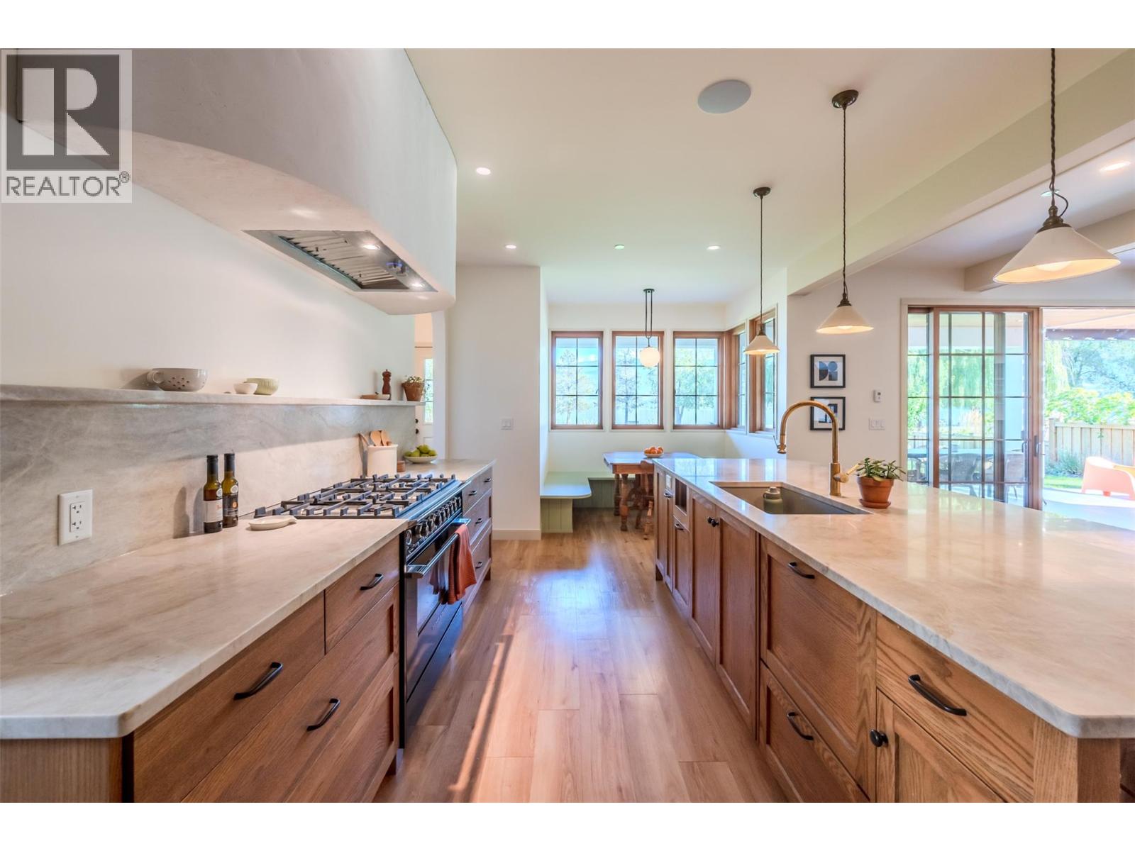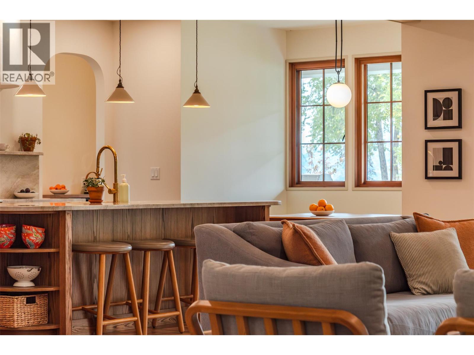 Introducing “The Lioness” by Janeen Goligher Design in collaboration with Square Foot Construction. Nestled in the exclusive community of Lighthouse Landing, this custom-built five-bedroom, five-bathroom residence exemplifies refined living through a seamless blend of timeless design and modern comfort. Breathtaking lake views pour through Loewen wood-framed, double-glazed windows, bathing the home in natural light. The chef’s kitchen boasts integrated Fisher & Paykel appliances, custom cabinetry, a wine fridge, and Taj Mahal quartzite countertops. An adjacent dining room with built-in bar and a 100-year-old antique glass display offers a perfect blend of function and elegance. The great room features a handcrafted Bentley gas fireplace and opens onto a covered deck with a built-in fire pit and BBQ—perfect for year-round entertaining. Additional highlights include a traditional Finnish cedar sauna, mudroom with custom built-ins, and a picture-perfect upper hallway framing sweeping mountain views. The serene primary suite offers a deep soaker tub, double rainfall shower, bidet, and Statuario marble vanities. The home also features a theatre room, integrated Sonos audio with Wi-Fi speakers, radiant in-floor heating across 12 zones, and a double heated garage. A separate guest house offers added space and versatility. Expertly designed and masterfully executed, The Lioness is a rare opportunity to own an iconic lifestyle residence in one of the Okanagan’s most coveted setting. (id:2469)