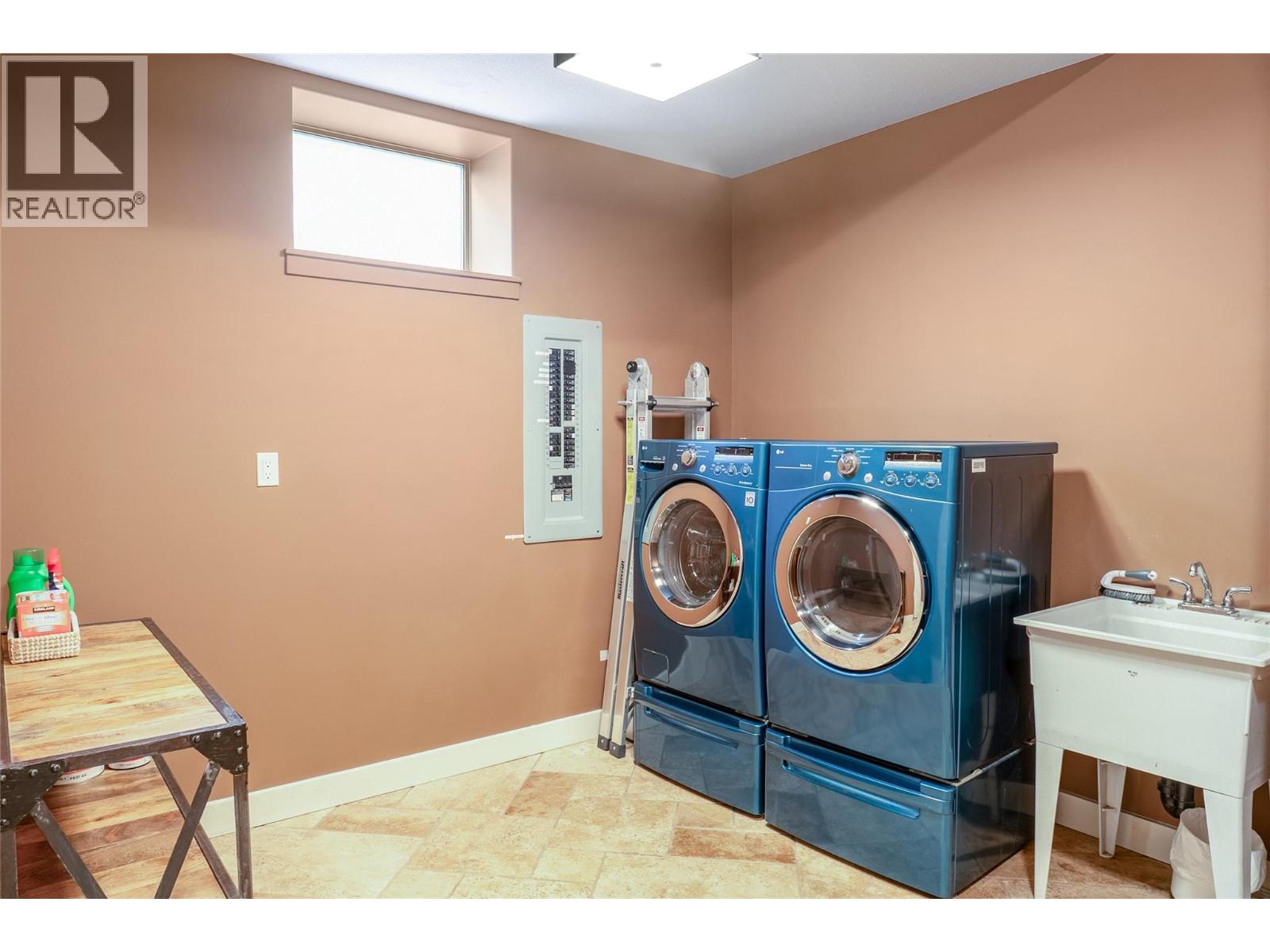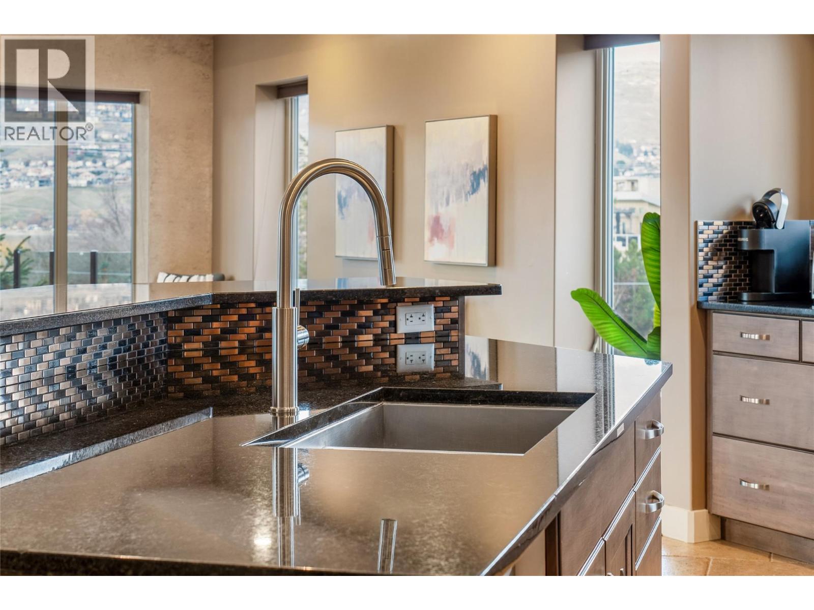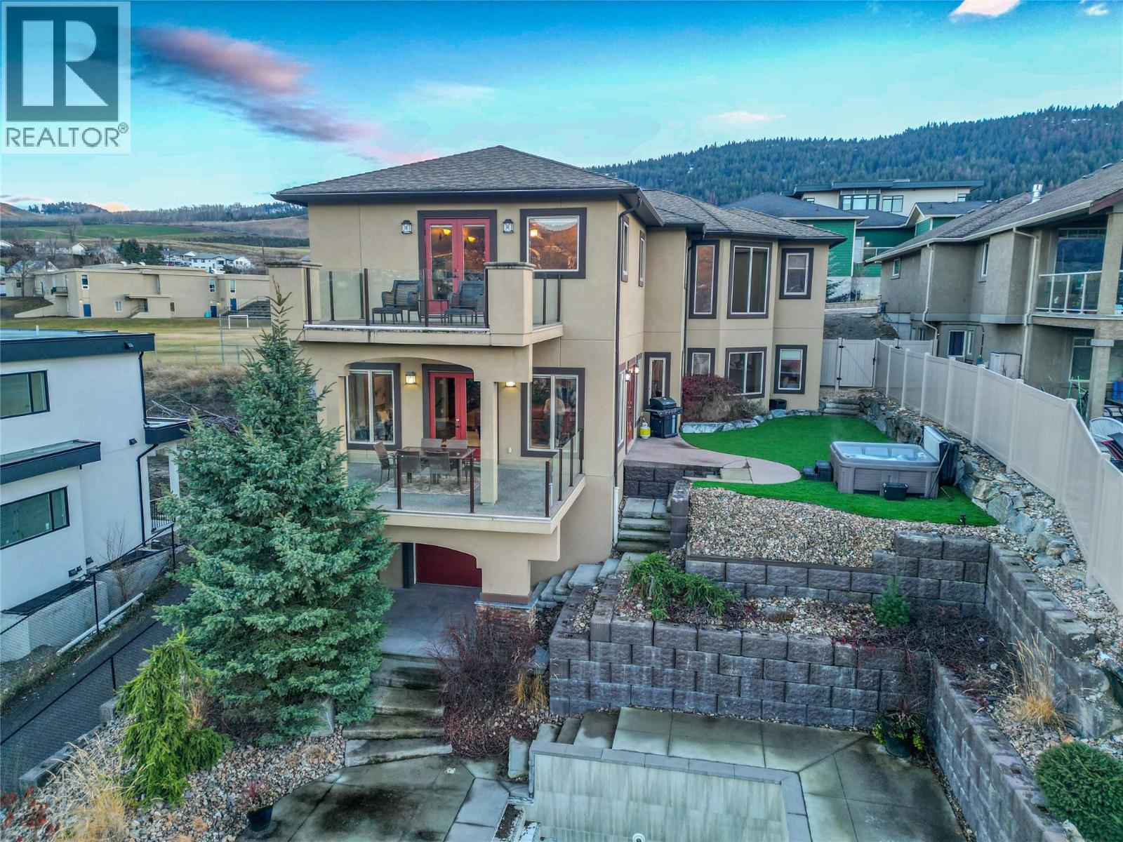Perched in scenic Okanagan Landing, this stunning custom-built home pairs refined luxury with resort-style outdoor living and breathtaking lake & mountain views. The newly re-tiled heated saltwater pool invites you to soak up summer days, while the hot tub & outdoor gas fireplace offer cozy evenings under the stars. Inside, elegant architectural details shine-soaring ceilings, curved walls, & custom niches create a grand yet welcoming ambiance. The open-concept main floor flows seamlessly to the covered deck and yard with direct pool access, perfect for entertaining. The gourmet kitchen features a granite island, raised eating bar, tile backsplash, floor-to-ceiling cabinetry, & high-end appliances. Heated tile & luxury vinyl plank floors add style & comfort throughout the main level. The spacious primary suite features double doors, a cozy lounge area, two walk-in closets, & a spa-like ensuite with a jetted tub, tiled shower with body jets, and built-in vanity. Three additional bedrooms offer custom layouts to suit any need. Downstairs, a large rec room with a unique garage door entry, a roughed-in kitchen, and partially finished bathroom provide excellent potential for a guest suite or income-generating space. The beautifully landscaped yard showcases tiered rockwork, multi-level patios, & artificial turf, designed for year-round enjoyment. With dual furnaces & thoughtful high-end finishes throughout, this exceptional home is ready to impress-book your private tour today! (id:2469)