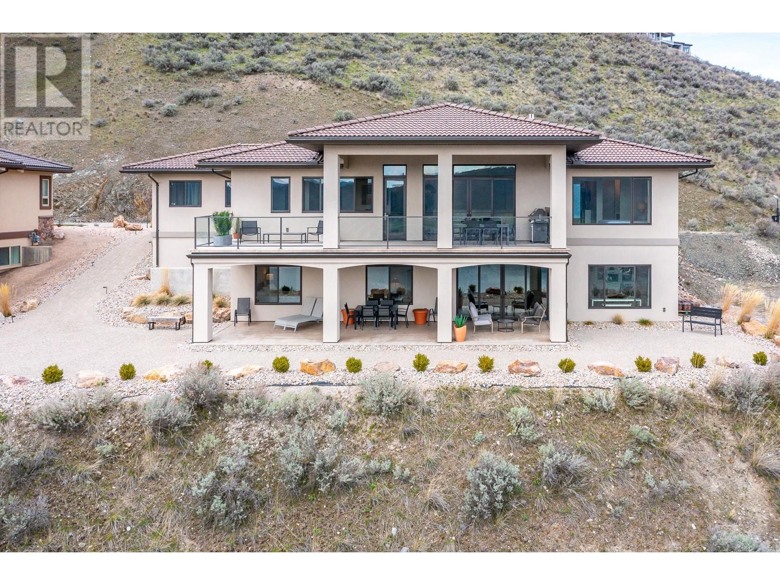 Welcome to WATERMARK, the premier gated neighborhood in THE RISE Community. The sleek, sophisticated design of this home leaves all the focus on the uninterrupted views over Okanagan Lake deep to the south and the lights of the City of Vernon to the east! From the full-length upper deck or the covered patio, watch the sailing regattas at the Yacht Club across the lake, the deer on the hills, the eagles above or the glorious sunsets! The owner’s choice of hardwood, polished concrete floors, Ceramastone tile & ‘Hanstone’ quartz are beautifully crafted by Heartwood Homes and compliment the natural setting & views! The main level ‘great room’ centers around the sleek kitchen with floor/ceiling cabinets plus a ‘back kitchen’ for prep work! There is an impressive entertaining island that easily seats four. A floor to ceiling gas fireplace defines the sitting area. The primary bedroom offers a custom walk-in closet, ensuite with walk-in shower, heated floors & endless lake view! Second bedroom also offers a walk-in closet & full ensuite–perfect for a parent! The walk-out lower offers two lakeview bedrooms, full bath, family room with wet bar, office/den & bonus room. Check out the triple garage w/ room for 3 vehicles plus toys! Everything is designed for low maintenance including this .28-acre lot, artfully landscaped w/ rockeries that blend into the preserved natural setting. And just 2 mins up the road awaits the spectacular RISE Golf Course and The Edge dining experience. (id:2469)