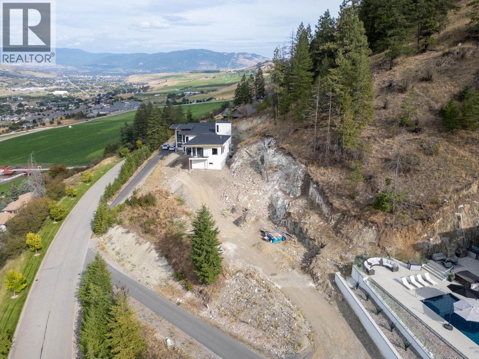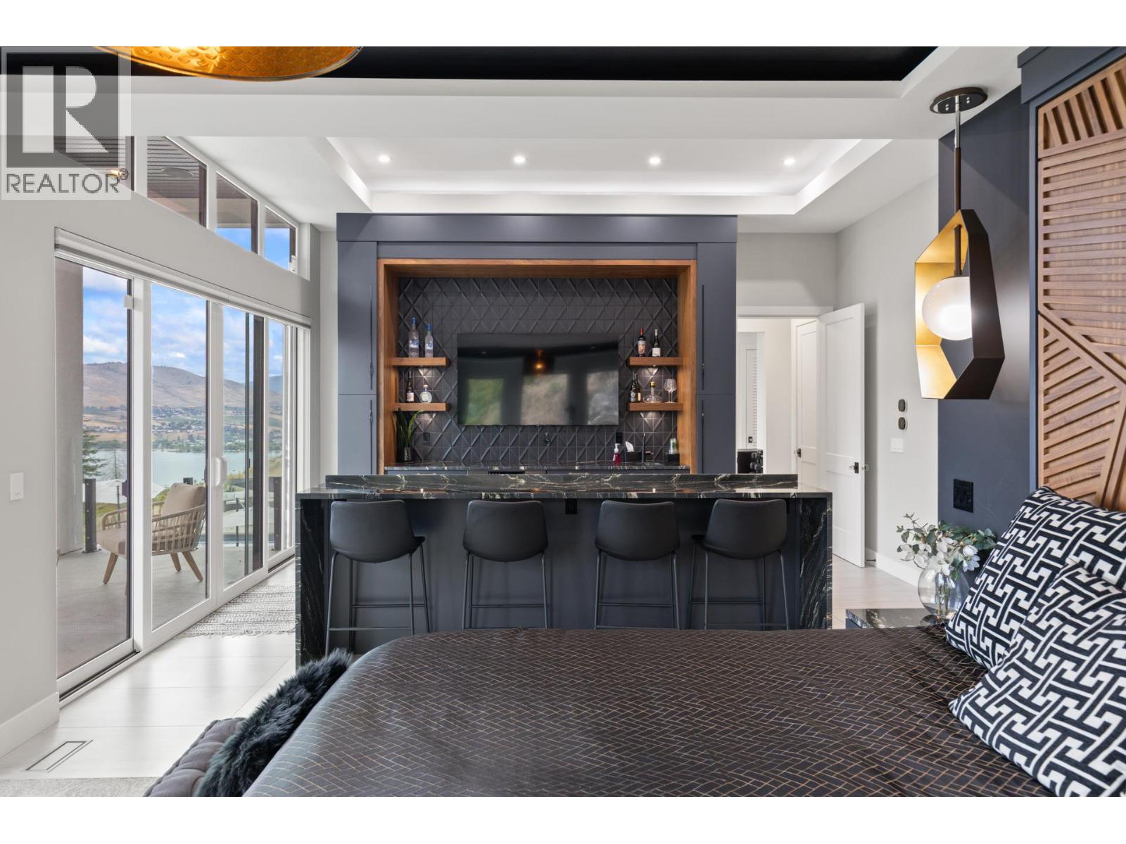 A turn-key, furniture-included offering. Discover the epitome of luxury living in the prestigious gated community of Beverly Hills Estates. Perched gracefully on an acre of hillside, this custom-built masterpiece offers breathtaking views of the lake, mountains, and award-winning equestrian stables below, and INCLUDES the adjacent, separately titled lot. However, the home or lot can be purchased separately from each other (ask agent for details). This turn-key property is offered fully furnished, complete with all kitchen utensils, appliances, linens, etc. making your move effortless. The home boasts two luxurious primary suites, each with custom closets and spa-inspired ensuites. The second primary suite features a chic wet bar and a custom-built bed strategically positioned to capture unobstructed views through floor-to-ceiling windows. The master suite add-on was a substantial $1,000,000 investment, recently completed, and includes a safe-room walk-in closet that was overbuilt with a metal locking door. At the heart of the home is a stunning great room framed by towering windows that open onto an expansive pool deck, perfect for entertaining with its hot tub, fire pit, and multiple outdoor living spaces—complete with an outdoor bathroom. The property also features an immersive home theater and fitness room. The oversized, heated, triple-car garage provides ample storage for vehicles and recreational equipment. Nearby amenities include the Vernon Yacht Club, Sparkling Hill Resort, Predator Ridge Golf and renowned wineries. (id:2469)