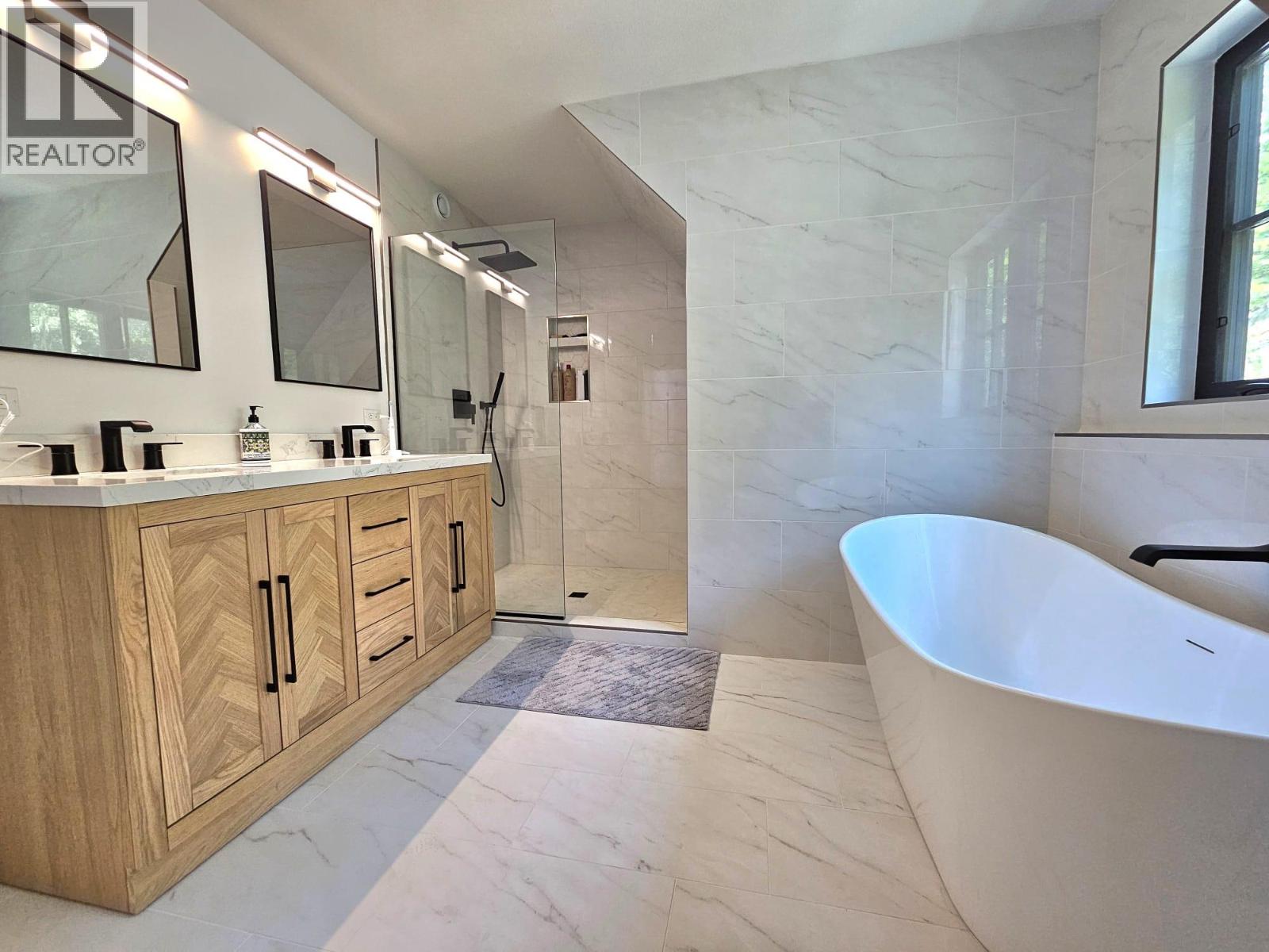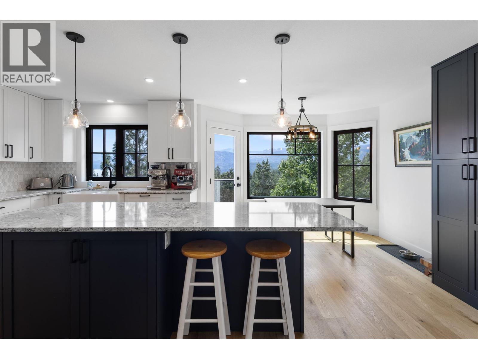 Lake Views, Privacy, and Beach Access with Boat Launch - welcome to your Okanagan retreat! This 0.39 acre corner lot is perched above the trees with a stunning west facing view overlooking Okanagan Lake and 360 degrees of surrounding natural landscape, offering a unique private setting that provides the perfect quiet get away for taking in lake views and sunsets. The turn key, newly fully renovated 5 bedroom home comes with high end finishings and upgrades: all new stainless steel appliances, new washer and dryer, new custom built gourmet kitchen complete with new cabinets, massive island, granite counters, new tile backsplash, new hardwood flooring, new doors, all new windows and light fixtures throughout the home, open concept living space, gorgeous new master bathroom, new tile fireplace, freshly painted walls, doors and trim throughout, and so much more! Enjoy spa amenities with the hot yoga room, sauna, and outdoor hot tub! Lots of room for all the toys - boat, RV, and ample parking. RV hook up available complete with 30 amps and water. New roof in 2019. Mature landscaping with low maintenance yard. Access to the Canadian Lakeview Estates private beach (500 feet of lakefront) is available, with boat launch, 2 wharfs, picnic area, and restrooms ($100 per year amenity fee). Welcome home to your perfect Okanagan retreat where you will feel on vacation all year round. (id:2469)
