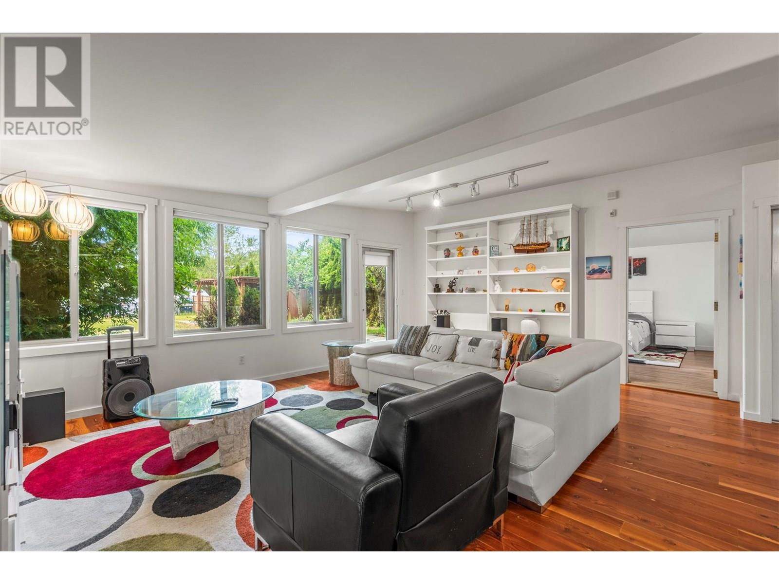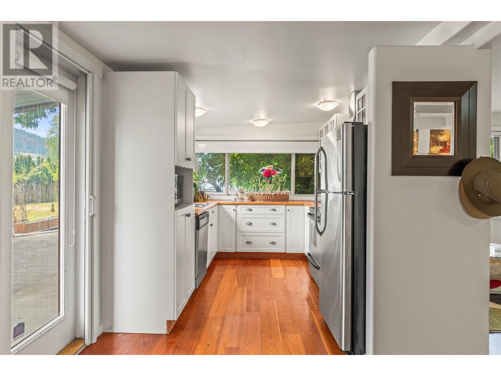 Discover exceptional waterfront living in the desirable area of Okanagan Landing, this rare double lot boasts 100 feet of pristine Okanagan Lake frontage on a spacious 0.36-acre landscape. Featuring a newly built dock, detached double garage, and ample space for redevelopment, the potential-filled property could serve as a serene retreat or future investment. Enjoy breathtaking lake and mountain views from your private yard, complete with a working hot tub for year-round relaxation.The charming 3-bedroom, 2-bathroom rancher has been updated with fresh paint, new flooring, and a hot water heater, combining vintage appeal with modern comfort. Inside, you’ll find a bright, functional layout, baseboard heating, and essential appliances included. Whether you're boating off your new dock, relaxing in the fenced yard, or exploring redevelopment opportunities, this lakefront gem offers it all. With municipal water, irrigation, RV parking, and immediate possession available, your Okanagan dream lifestyle starts here. (id:2469)