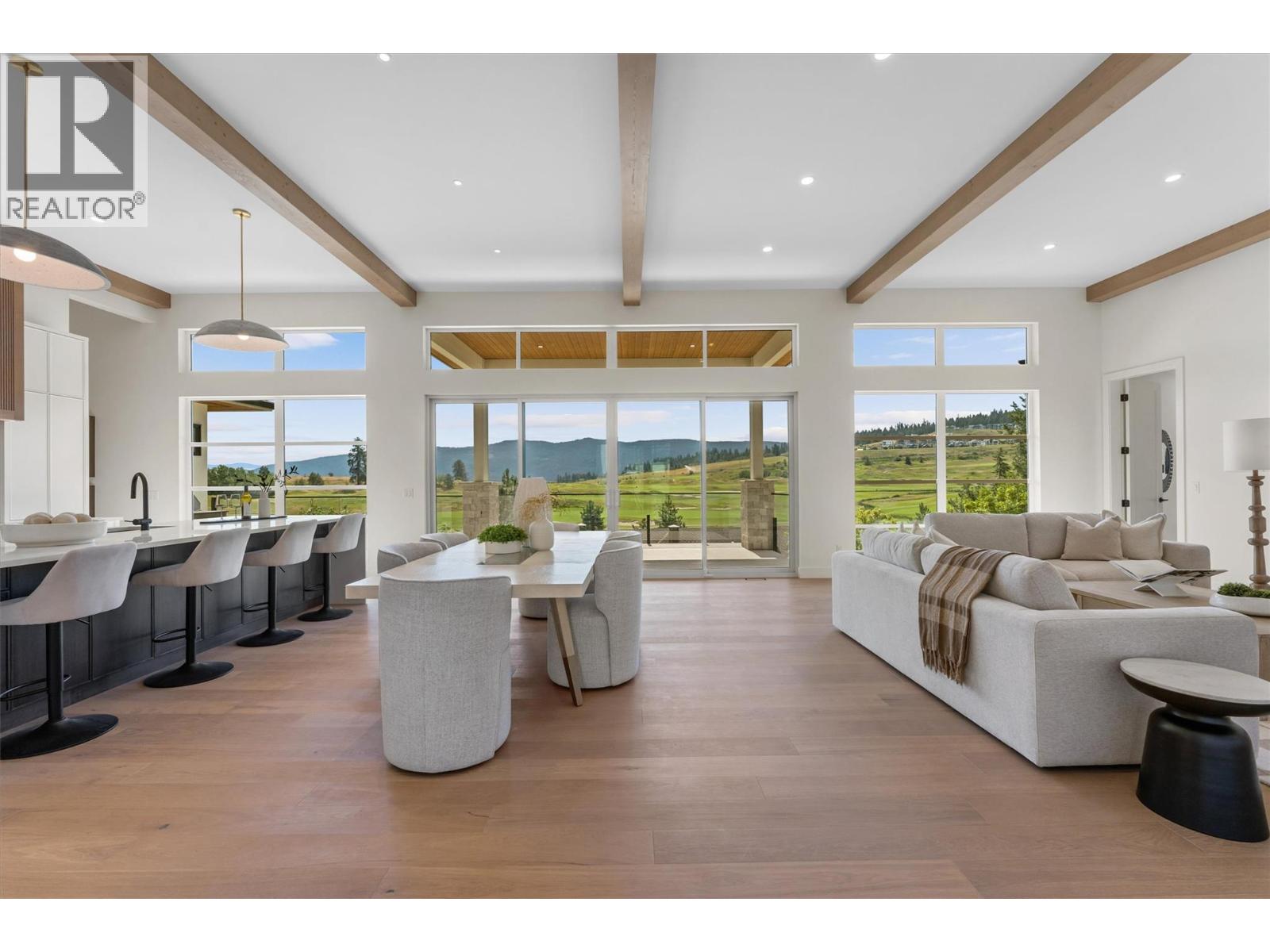 NO SPEC/VACANCY TAX. Modern luxury meets resort-style living in this brand-new residence at Predator Ridge’s prestigious Falcon Point. With over 4,000 sq. ft. of refined design, this 5 bed, 4 bath home is perfectly positioned to capture golf course and mountain views. Expansive windows and 12 ft. ceilings with exposed beams set the tone in the main living space, where a sleek fireplace and engineered hardwood floors create an elegant yet inviting atmosphere. The chef’s kitchen is a true centerpiece, featuring a Fisher & Paykel appliance package, entertainment-sized waterfall island, and seamless access to a covered patio complete with an outdoor kitchen. The main floor offers a serene primary retreat with spa-inspired 5-piece ensuite and a second bedroom or use as an office. The lower level is designed for entertaining with a spacious rec room, wet bar, and patio ready for a hot tub. A secondary primary suite with ensuite and walk-in closet, plus two additional bedrooms and a den/gym, provide excellent space for family and guests. An amazing 4-car garage, fully landscaped grounds, and thoughtful finishes throughout reflect exceptional attention to detail. Enjoy the unparalleled lifestyle of Predator Ridge, Canada’s premier four-season resort community, offering 36 holes of championship golf, a racquet club, miles of trails, Sparkling Hill Resort nearby, and world-class wineries just minutes away. GST applicable. (id:2469)