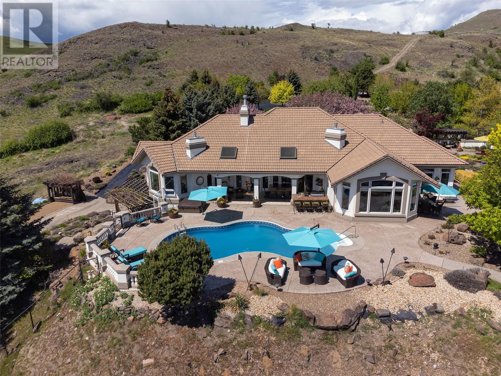 From the moment you arrive, breathtaking lake views and surroundings. A park like setting offering luxury and privacy with 180 degree unobstructed views of Kal Lake. Find yourself relaxing in many of the patio areas overlooking the lake. Sprawling 4 bed. 4 bath Rancher with views and patio doors in every bedroom. Tuscan inspired design with timeless elegance. Indoor/Outdoor living with outdoor kitchen, pool, hot tub, fireplace, bocce court, fire pit, garden pond and more. Chef's kitchen with high end appliances and granite countertops, formal dining, elaborate living and family room with crown mouldings, fireplaces, recessed ceiling lighting, patio doors, large oversized windows. Spacious primary bedroom with cozy fireplace, relax in the bathtub with unobstructed lake views. Triple car garage and lots of parking with tree lined driveway entering over 20 acres of Gardens and natural landscapes. Measurements are taken from I- Guide. Please verify if important. First time on the market. Close to rail trail, boat launch, Predator Ridge, Sparkling hill and 20 mins to Airport. Call today to book your tour of this masterpiece. (id:2469)