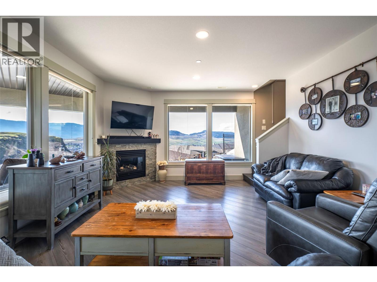 Welcome to desirable Turtle Mountain! Enjoy breathtaking, unobstructed valley and lake views from this custom built 4 bedroom, 3 bathroom home with a fully self contained in law suite, perfectly situated on a low maintenance lot. The main floor showcases a spacious kitchen featuring a gas range, Corian countertops, a 9 ft eating bar, and striking zebra wood veneer cabinetry. Adjacent to the kitchen is a bright eating nook with direct access to a covered patio and stamped concrete deck ideal for entertaining or relaxing while taking in the views. The living room impresses with a tray ceiling, hardwood floors, and a dramatic floor to ceiling stone gas fireplace. The primary bedroom offers private access to the covered deck, a full 5 piece ensuite, and a walk-in closet. A second bedroom or den, full bathroom, and convenient laundry complete the main level. Downstairs, you’ll find a spacious 2 bedroom, 1 bath in law suite with a separate entrance and private patio perfect for extended family or added flexibility. Additional features include an oversized 22' x 26' double garage, central A/C, gas furnace, new gas hot water tank, water softener, and charming timber frame accents. Located close to shopping, city services, and miles of walking and biking trails, this home is ideal for young families, multi generational living, or urban professionals seeking comfort, style, and views. (id:2469)