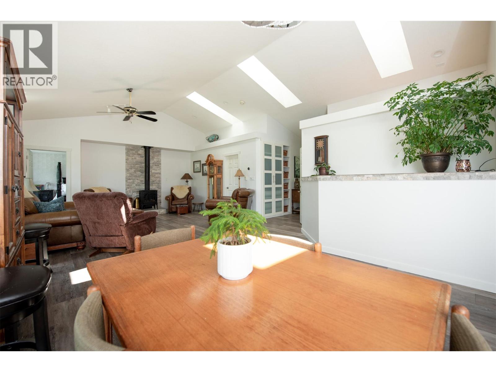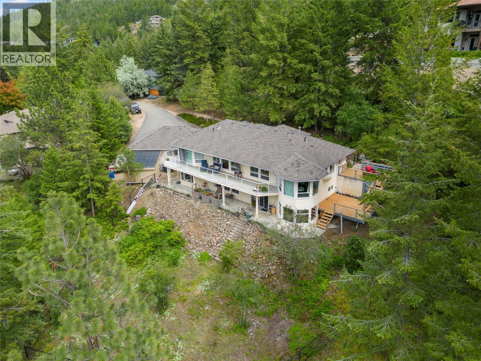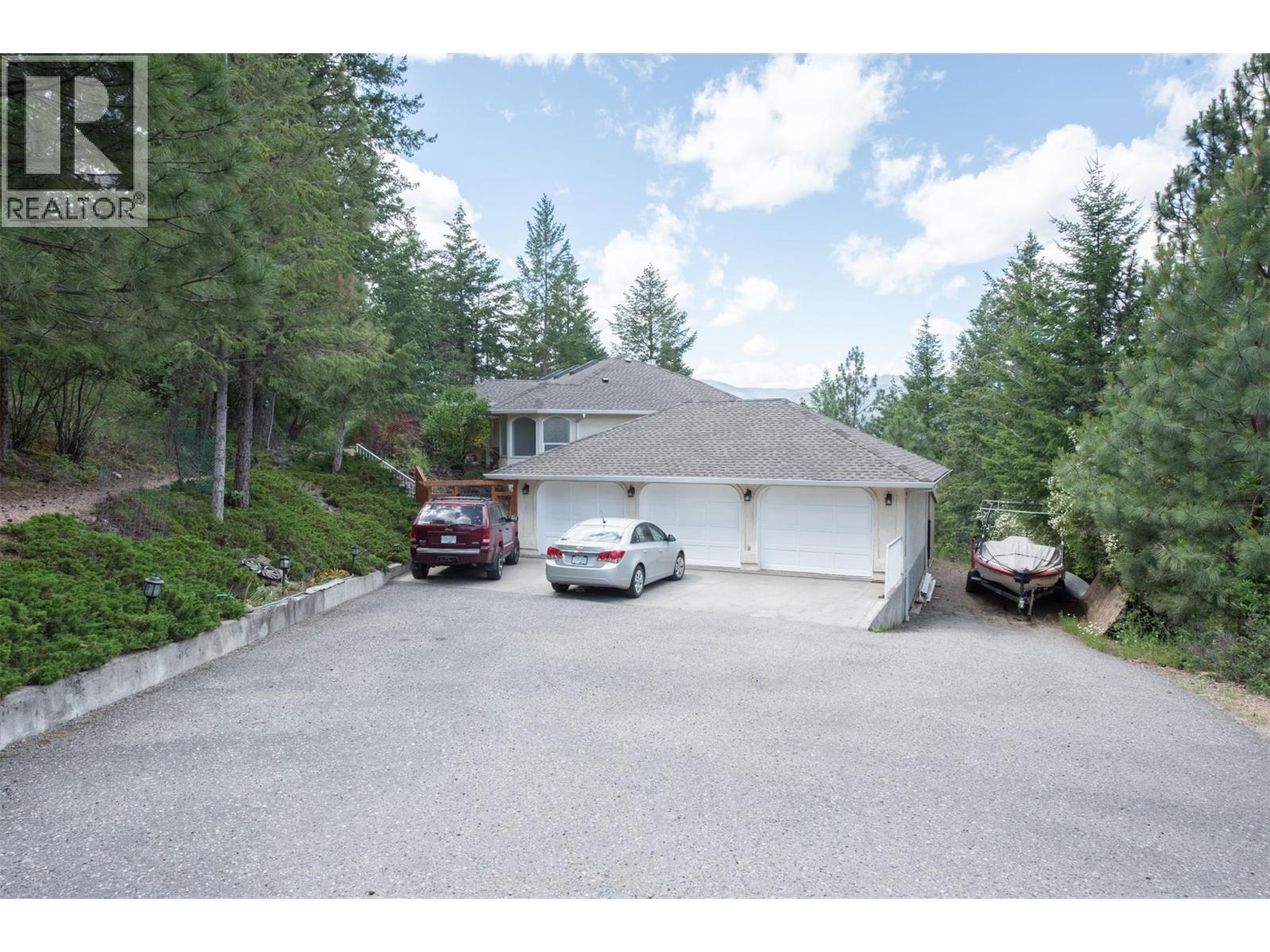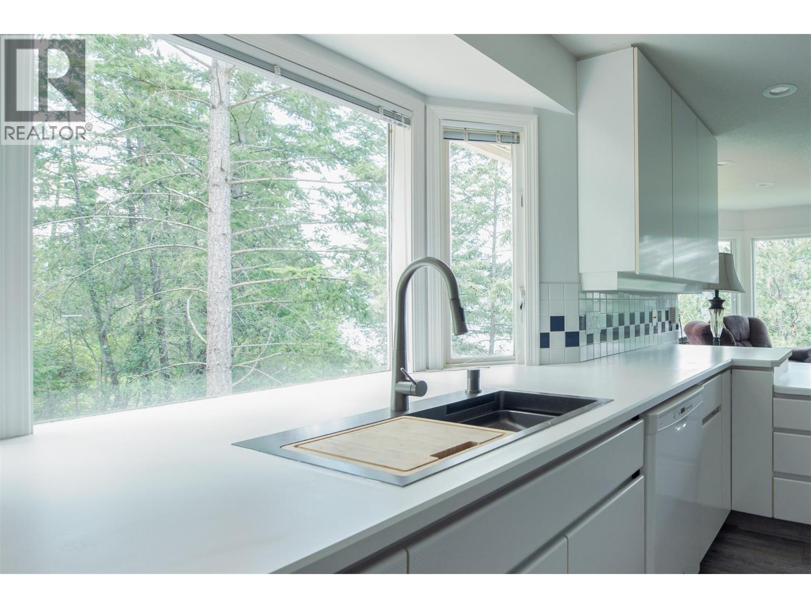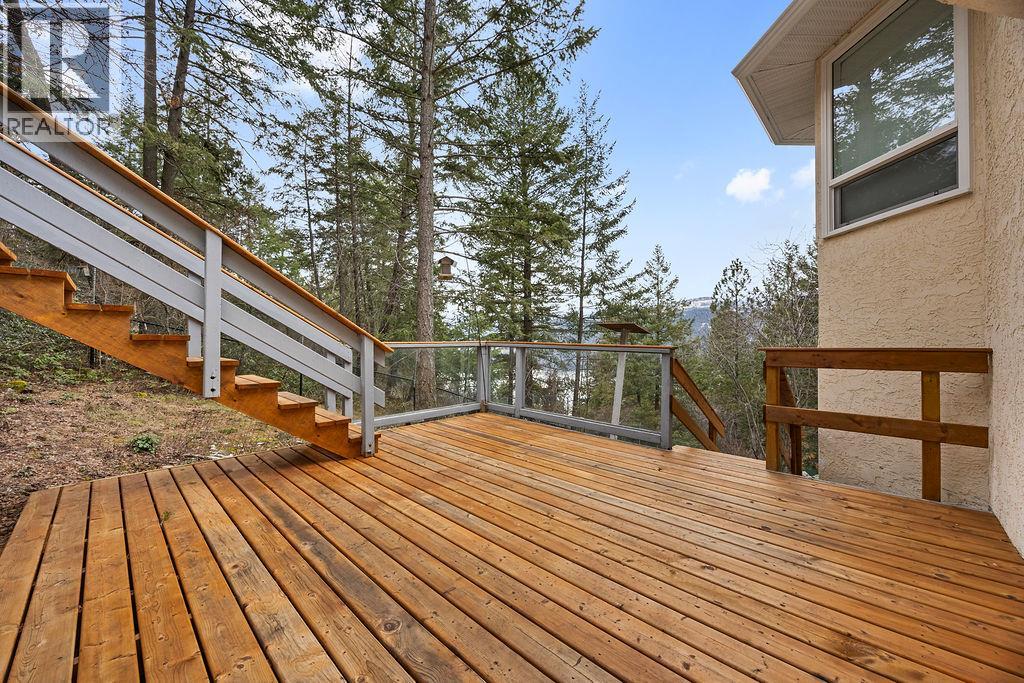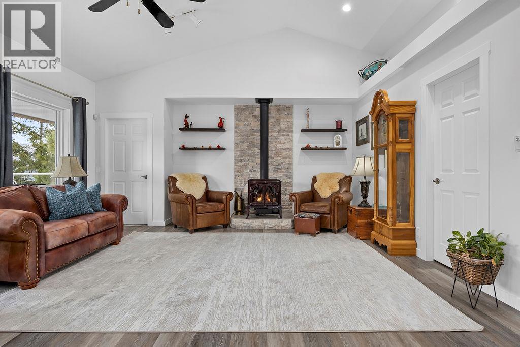 Discover your dream retreat on a private and quiet .63-acre lake view lot. New roof (2023), 10 new windows on main floor, flooring, and self-contained two-bedroom walkout suite! (Over $100,000 spent on renos in the last three years). This home offers lake views and natural light through vaulted ceilings and skylights. Custom kitchen with walk-in pantry and breakfast nook. Great room features Jotul gas fireplace, new hearth, dining area, and living room. Master suite with deck access, walk-in closet, and ensuite bathroom with Neptune tub and double sinks. Second bedroom ideal as den or guest room with Murphy bed. Daylight suite offers modern amenities and lake views. Features include: Jotul gas fireplace, Sound-deadening insulation - New heat pump - Updated appliances - Refinished deck and stairs - Insulated garage doors - Fire-smart clearing -Heated/cooled triple garage with workshop, RV & boat parking. Fenced yard with room for additional shop, plus private beach and boat launch access! (id:2469)