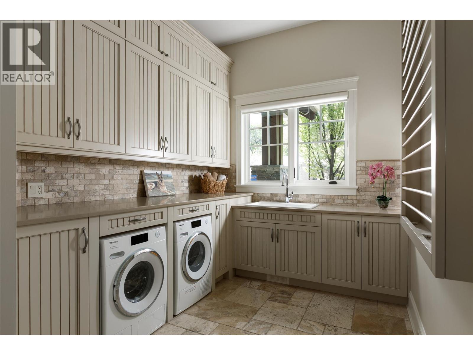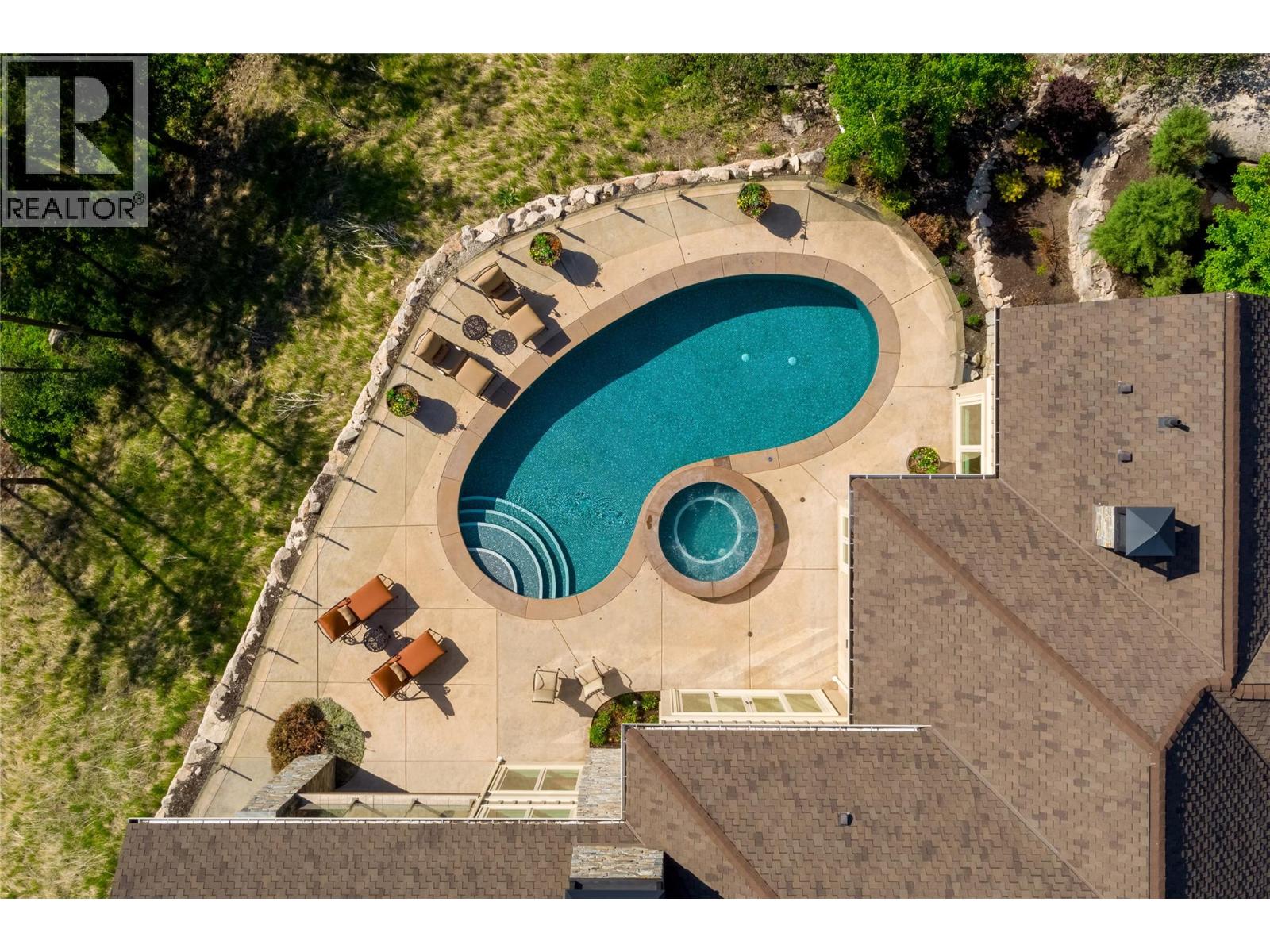 Your lifestyle needs that perfect home in a perfect setting! The Predator Ridge Community offers two world class championship golf courses, state-of-the-art fitness centre, tennis & pickleball courts, a vibrant village center and an endless trail system! This exceptional estate home sits at the end of a private cul-de-sac, offering expansive mountain and golf course views with breathtaking sunrises! Built by Heartwood Homes, it showcases exquisite craftsmanship with Calacatta marble, split-faced travertine, fir timber beams, hickory engineered hardwood, and intricate door and window details. The chef-inspired kitchen, featuring Miele, Wolf, and Sub-Zero appliances, flows into a sunlit great room with vaulted ceilings and a grand piano niche. The serene primary suite includes a see-through fireplace, marble slab shower with stone walls, and a custom walnut walk-in closet. The in-floor heated lower walk-out level is designed for entertainment, featuring a state-of-the-art theatre, games area, wet bar, and wine room. Outdoors, a Fujiwa porcelain-tiled saltwater pool, 10-foot hot tub, and multiple sitting areas with two exterior kitchens embrace the Okanagan lifestyle, while a cascading waterfall adds to the tranquility. A heated three-car garage completes this remarkable property. (id:2469)